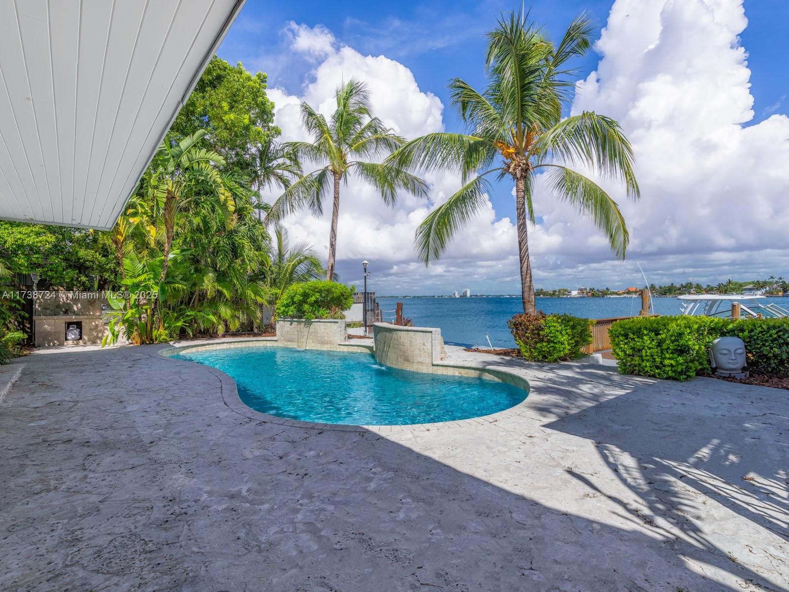 Presenting a rare opportunity to own one of the best placed, open bay, waterfront homes in Miami Beach's prestigious Biscayne Point gated community. Offering a large entertaining space, 4 bedrooms and 3 bathrooms, approximately 3,441 SF, the single-story home offers some of the best views. It features a renovated kitchen with top of the line appliances and a spectacular outdoor space with a swimming pool. 75 feet of open bay water frontage with a private dock. Also included with the sale are plans envisioned by world-renowned Yodezeen Architects. You have the opportunity to build a true masterpiece. The lot is 11,250 Square Feet with 75 feet of water frontage. The included plans provide to build a spectacular and unique 5,700 SF (approx.) home.