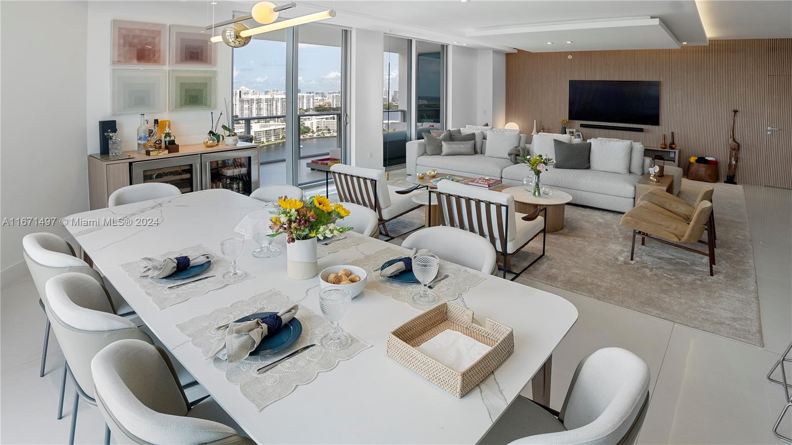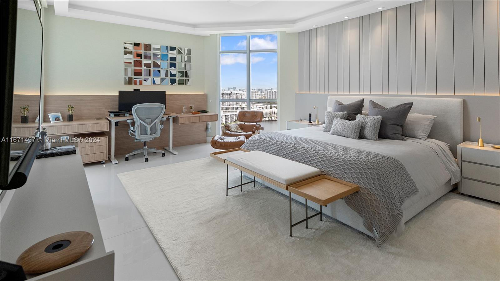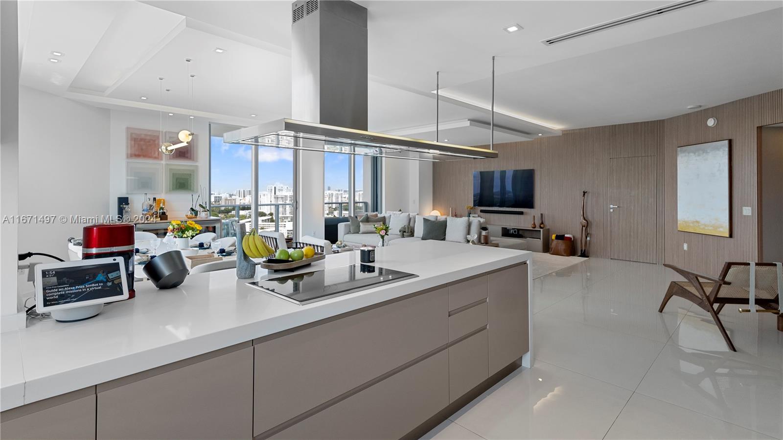 This immaculate luxury unit with 2 Bedrooms, a Den converted to a 3rd Bedroom, and 2.5 Bathrooms was professionally designed and decorated with imported Brazilian woodwork finishes. This Smart home greets you with minimalist doors and full automation ? Audio, video, shades, lighting, and thermostat ? via Control4. Offers high-end Sub-Zero/Wolf appliances ? Refrigerator, Oven, Microwave, Coffee System, Beverage Center, and Wine Cooler (42 bottles dual-zone). This home was renovated for comfort, offering an upgraded laundry area with a utility sink and LG Smart Wash Tower, and two office setups with standing desks built in.