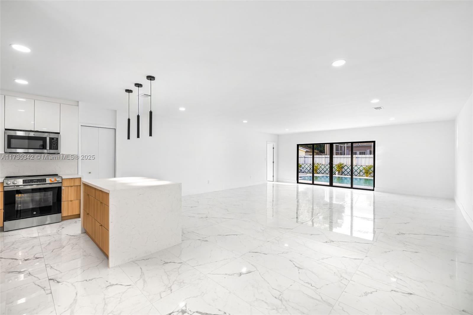House for sale completely remodeled with extra income: This modern 4 bedroom, 3 bathroom property has been completely remodeled, offering contemporary design and high quality finishes. The modern kitchen features a stunning waterfall island, perfect for enjoying family gatherings or casual dinners. Every detail of the house has been carefully designed to offer you an experience of comfort and elegance. The property includes an open pool area, ideal for relaxing and enjoying sunny days, and a separate efficiency with a bathroom, which will allow you to generate extra income or use it as an office or space for guests. With parking for 2 vehicles, this house is equipped to satisfy all your needs. An opportunity you can't miss!