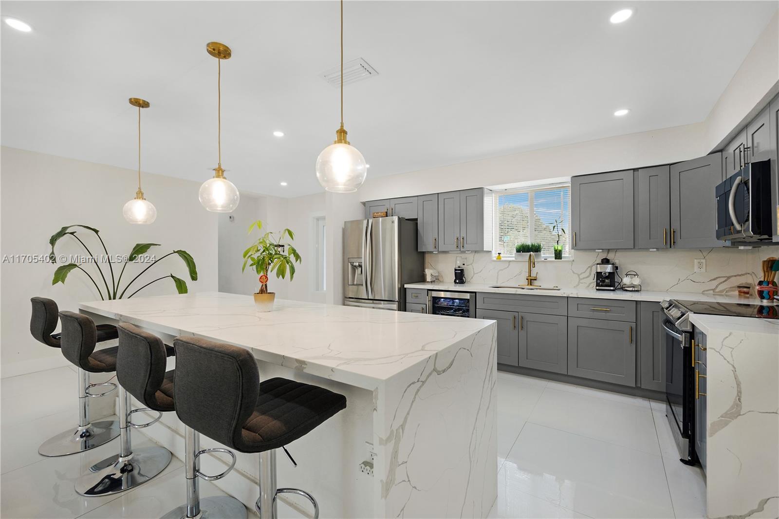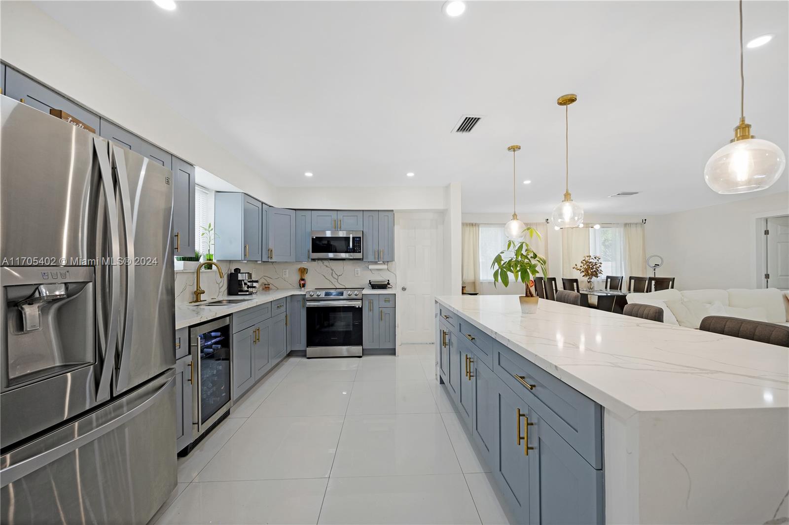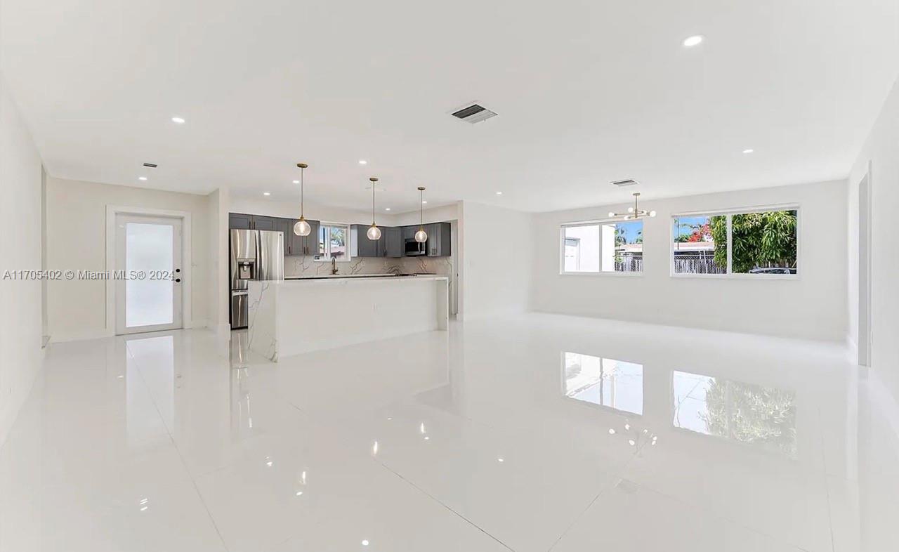 Ready to move in 4-Beds 2- Bath with over 1900 square feet of living area. Completely remodeled including a brand new roof 2023, impact windows and door throughout, porcelain floors , kitchen with quartz countertop, high end stainless steel appliances and wine cellar. Washer & Dryer in laundry room. Great corner lot with over 9,300 sqft access from both sides. Prime Location within minutes from the beach, schools, park and highway.