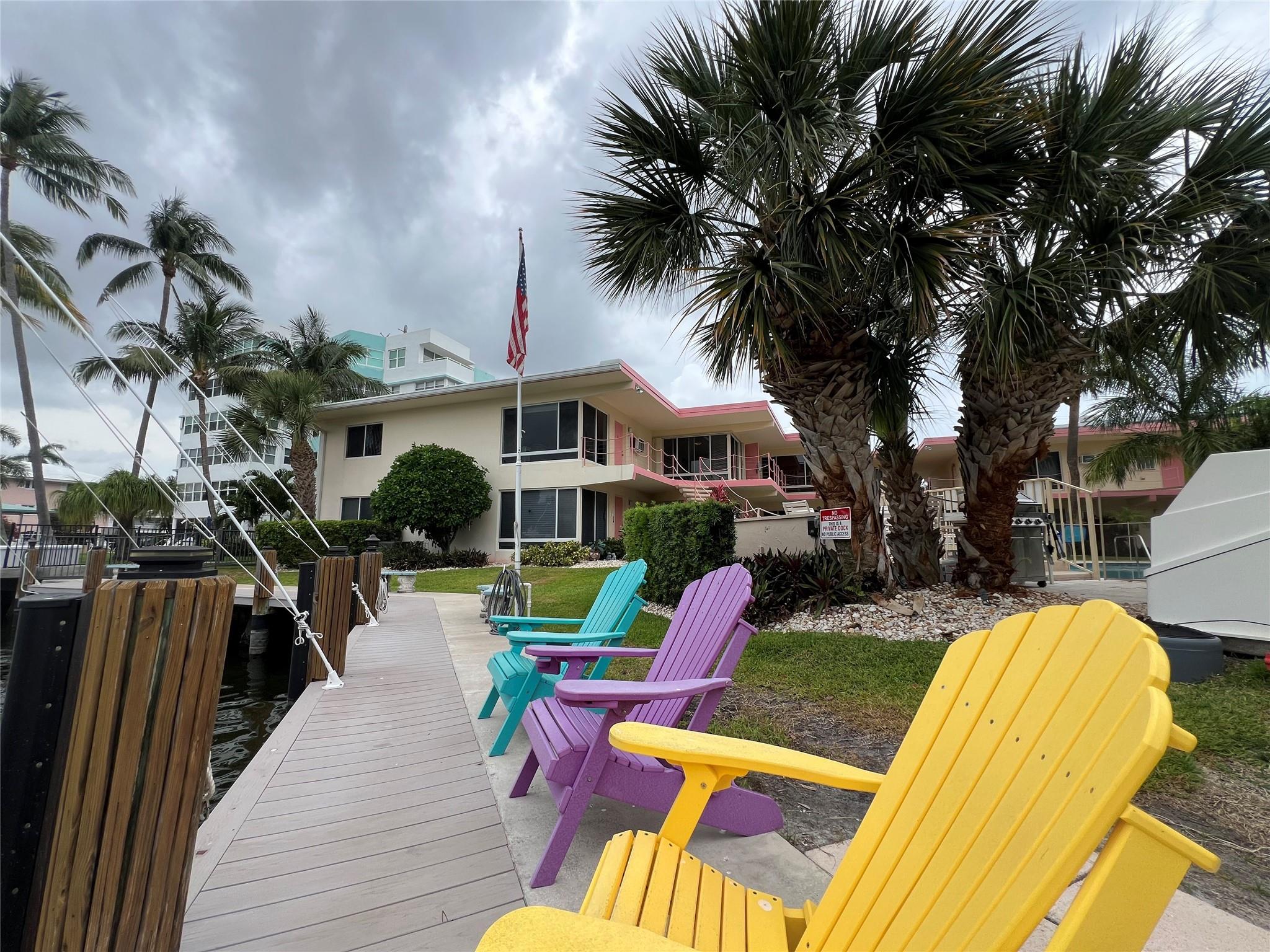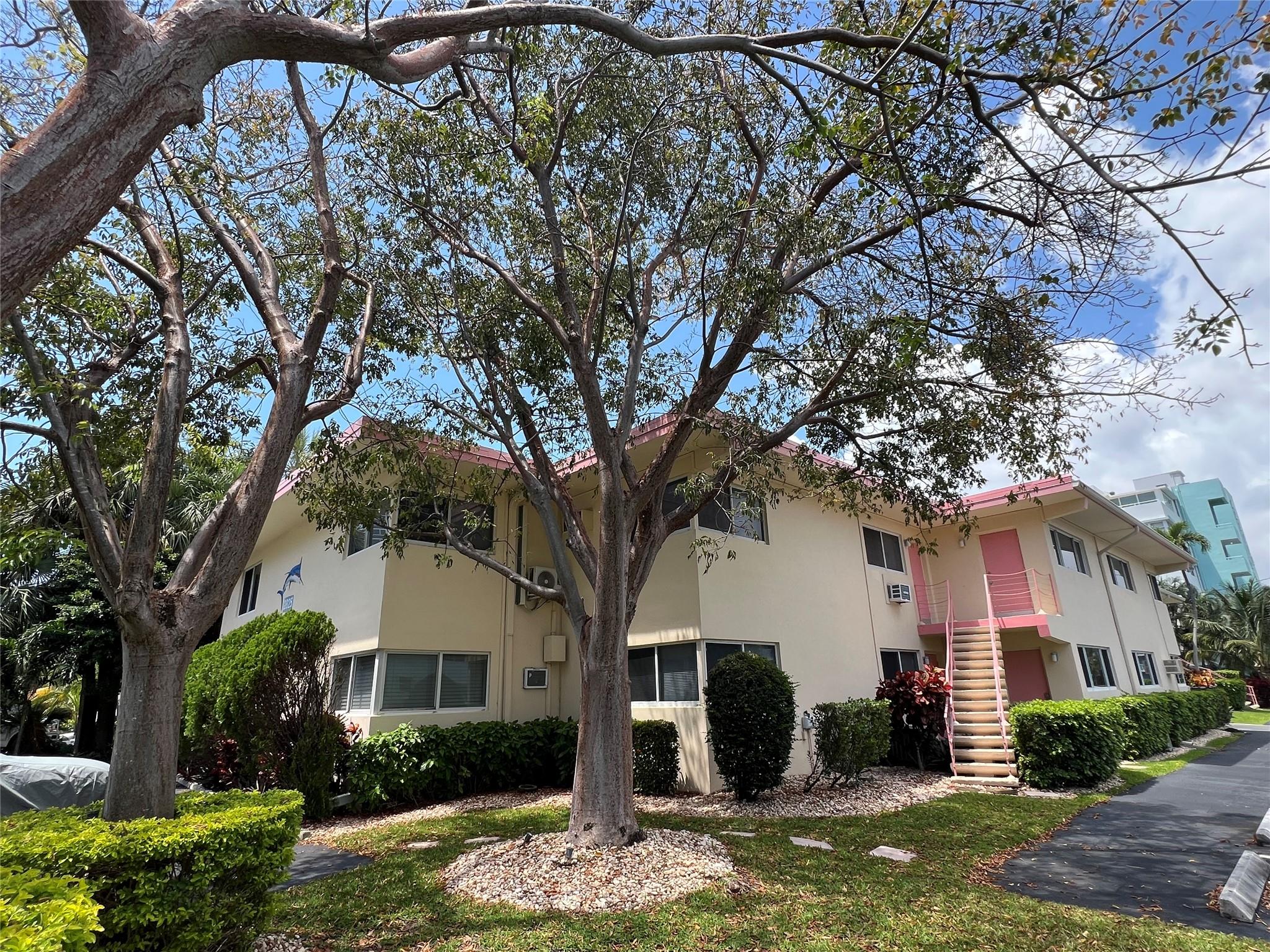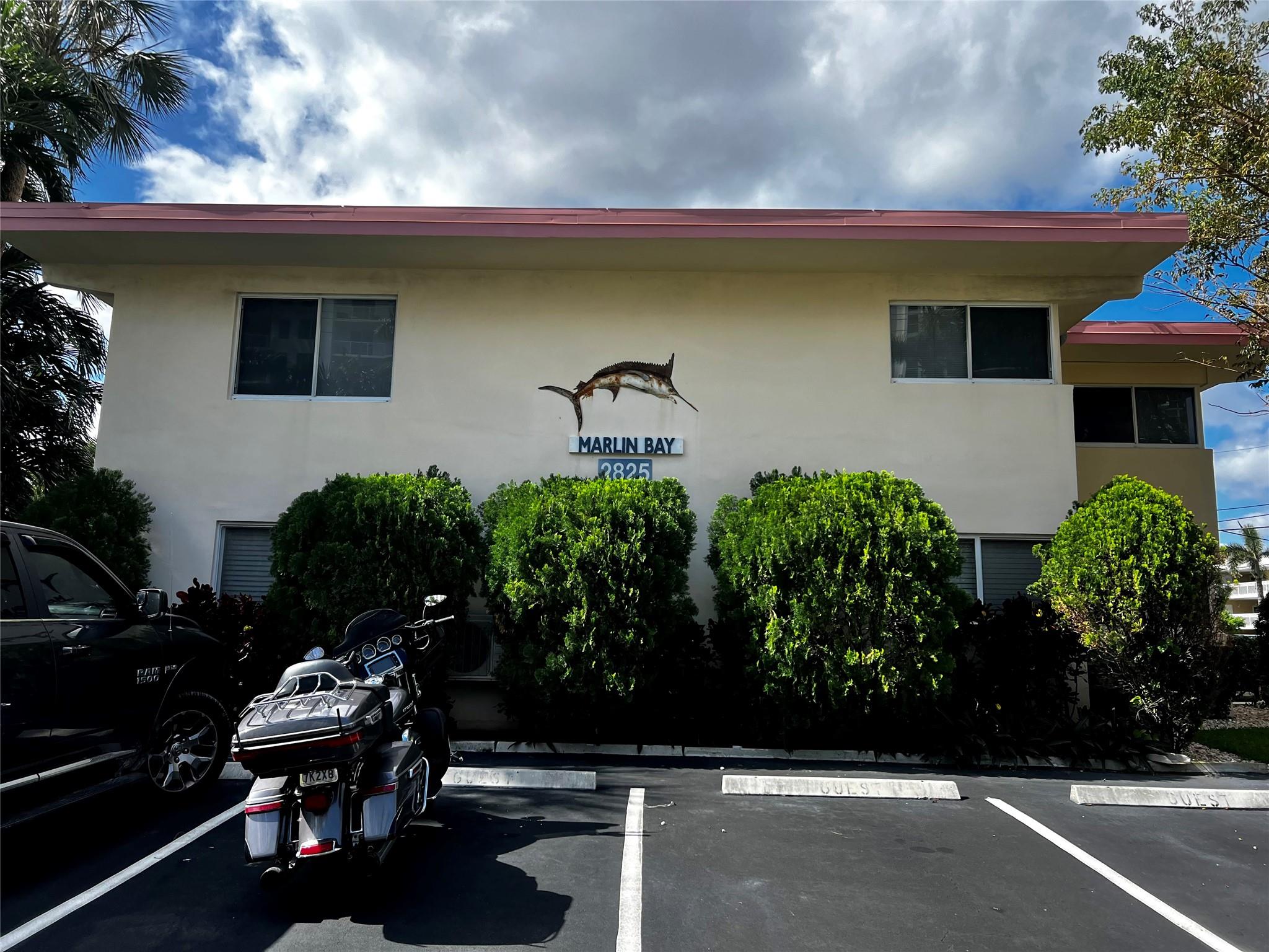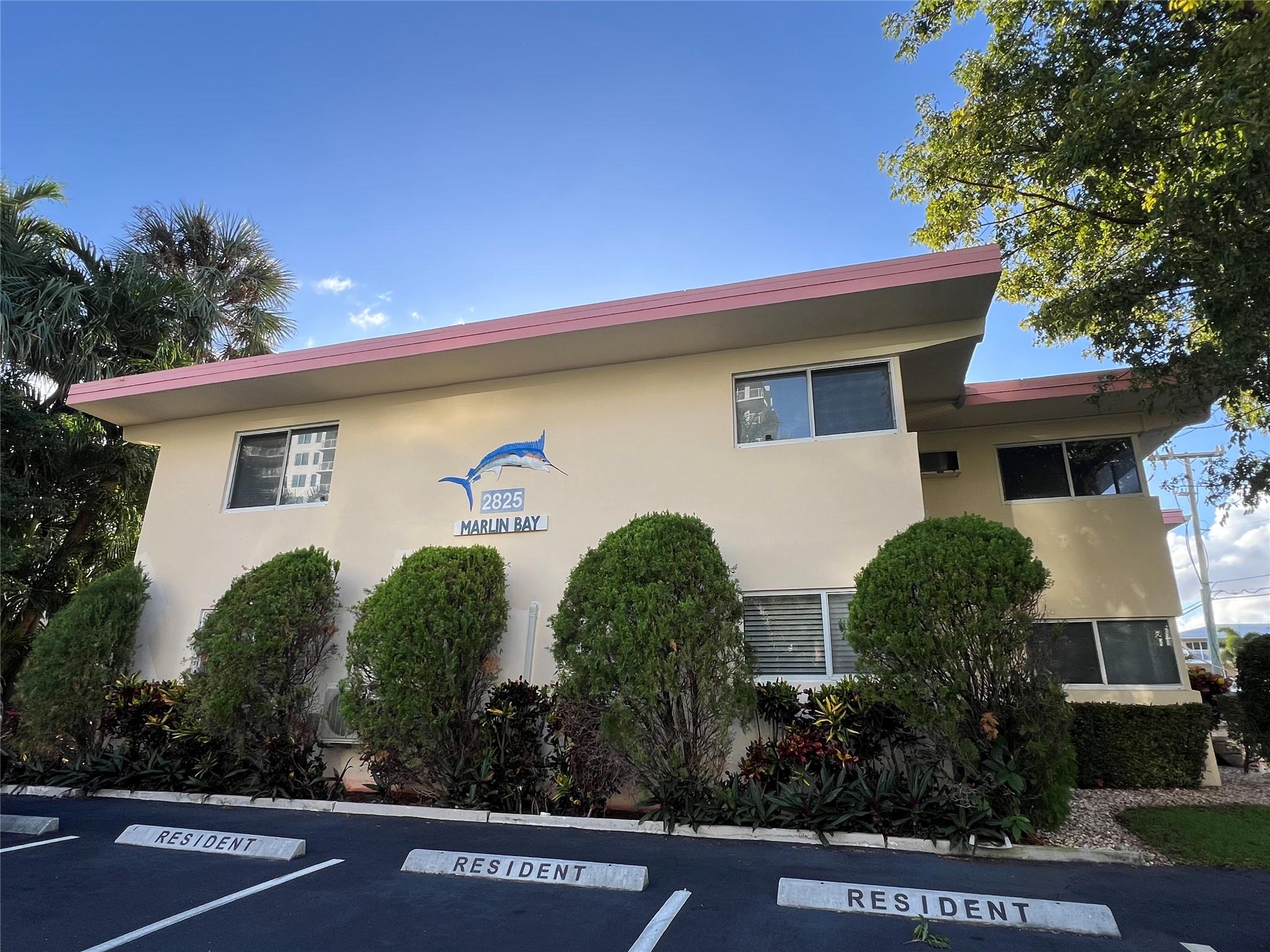 MUST SELL! Waterfront New Price! Relax...the beach is STEPS AWAY! Welcome to Marlin Bay, a mid-century 2nd floor corner unit. This beach area 1 bedroom home is just a couple of streets over from the beach and around the corner from the brand-new PUBLIX! No car needed. This boutique community has newer seawall and big beautiful, heated pool and dock area. Chill out on the dock and enjoy the water view & S. FLorida life here in this cozy 16-community with dock when avail. Unit has full size washer & dryer and assigned parking. Please call for all showings. Total Monthly Assoc. fee $623/monthly includes land lease w/ 31 years remaining. Renting ok >1 year ok, 90 day min 1x/year. Please: NO TRESPASSING, showings by appt. only. Vacant & ready for the next transplant to enjoy. Quick closing ok!