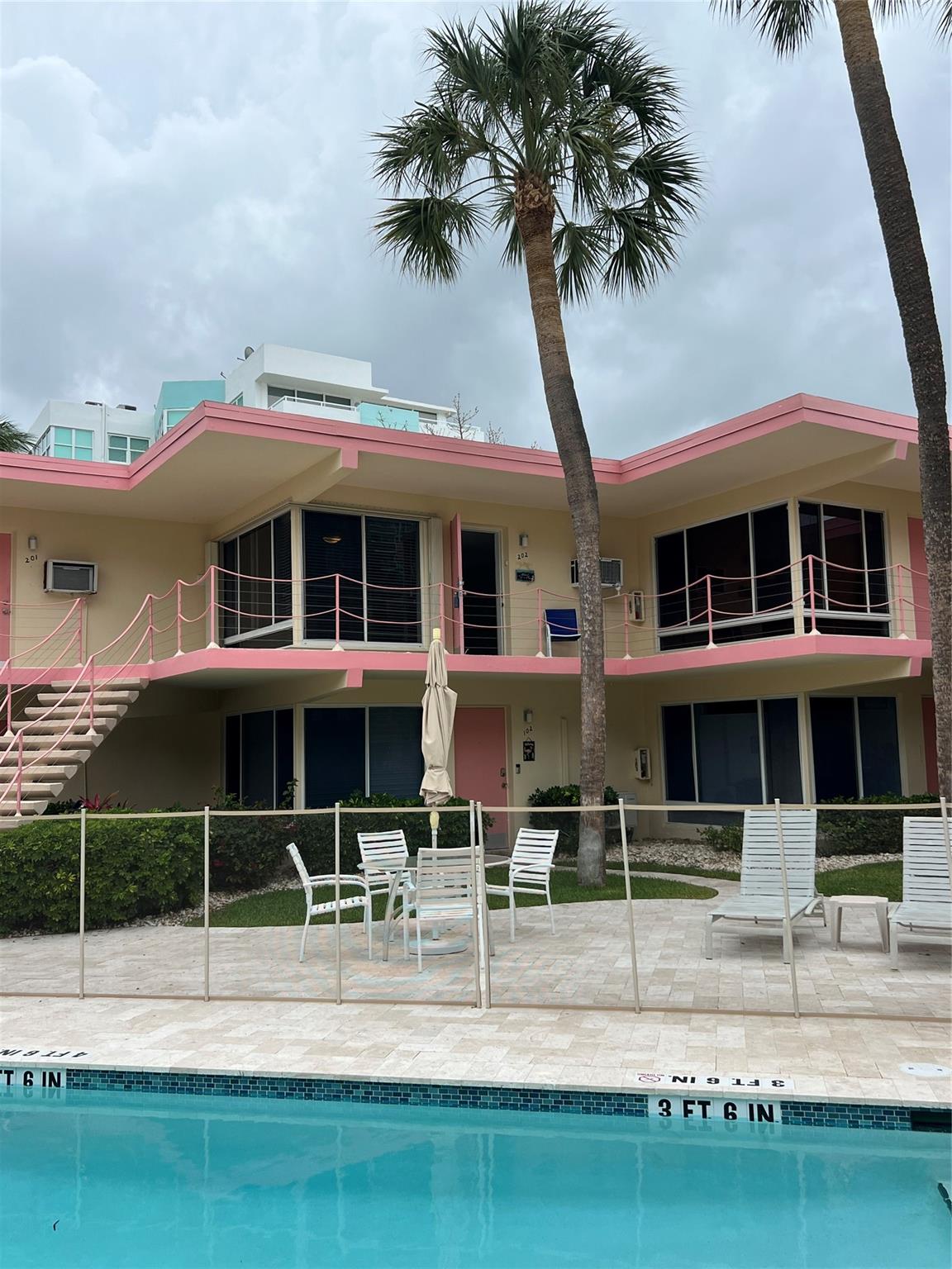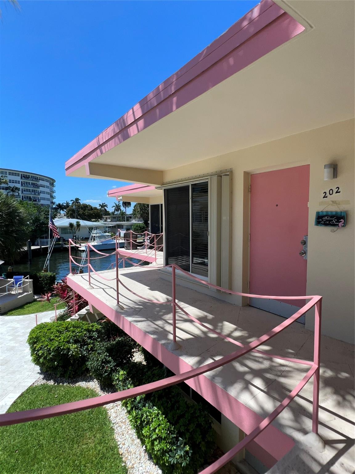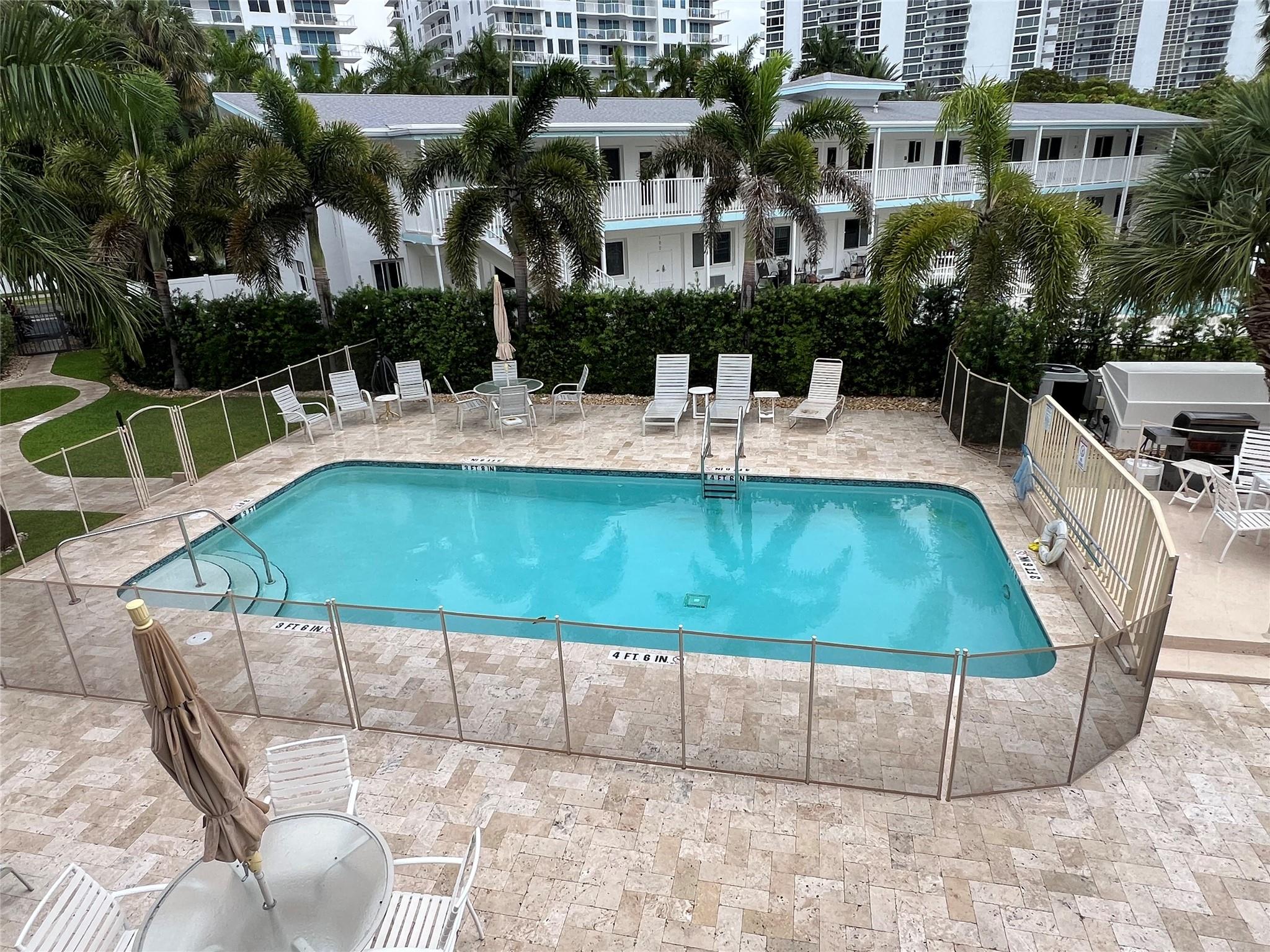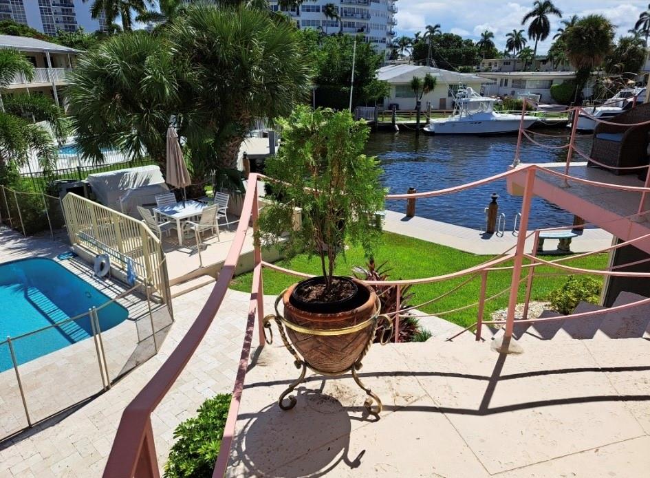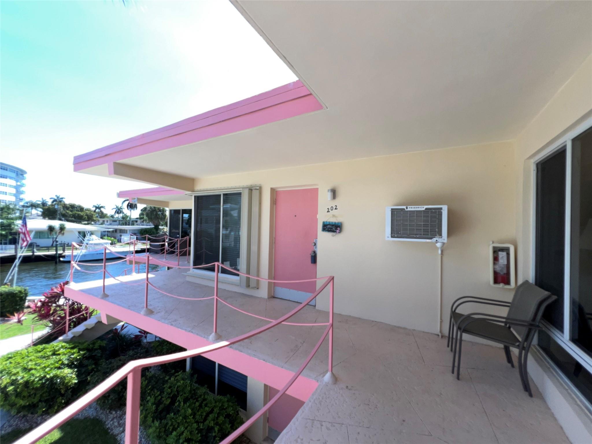 MUST SELL! Waterfront New Price! Relax...the beach is STEPS AWAY! Welcome to Marlin Bay, a mid-century 2nd floor corner unit. This beach area 1 bedroom home is just a couple of streets over from the beach and around the corner from the brand-new PUBLIX! No car needed. This boutique community has newer seawall and big beautiful, heated pool and dock area. Chill out on the dock and enjoy the water view & S. FLorida life here in this cozy 16-community with dock when avail. Unit has full size washer & dryer and assigned parking. Please call for all showings. Total Monthly Assoc. fee $623/monthly includes land lease w/ 31 years remaining. Renting ok >1 year ok, 90 day min 1x/year. Please: NO TRESPASSING, showings by appt. only. Vacant & ready for the next transplant to enjoy. Quick closing ok!