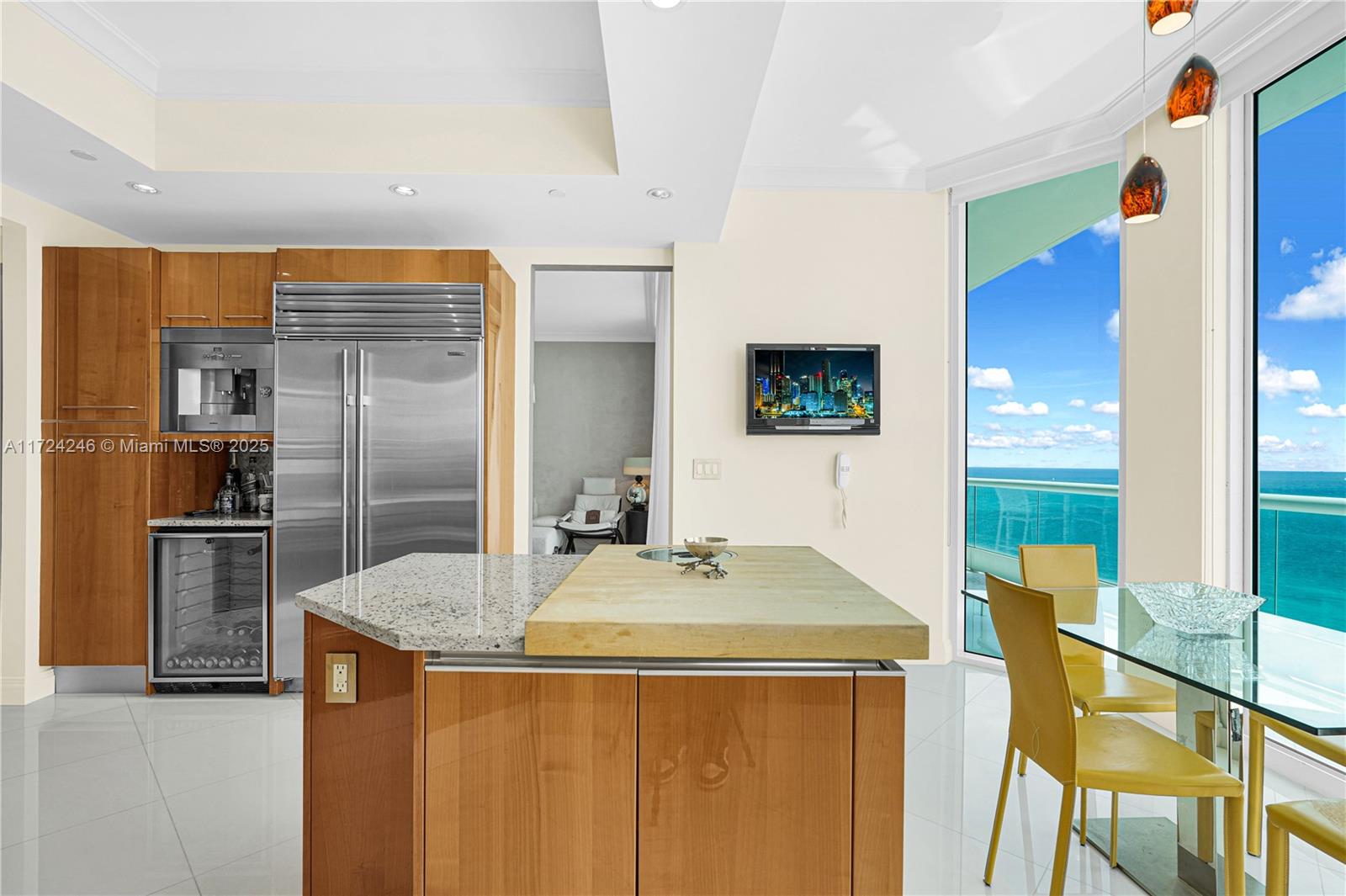 Turnberry Ocean Colony presents an exceptional residence with breathtaking, unobstructed direct ocean views. This stunning property features 2 bedrooms, 2.5 bathrooms, and 2,245 square feet of luxurious living space. The interior boasts marble floors throughout, custom doors, and numerous upgrades, 11 feet ceiling. The kitchen is a chef's dream, equipped with custom Snaidero cabinetry and premium Sub-Zero and Gaggenau appliances. Turnberry Ocean Colony offers unparalleled resort-style amenities, including two heated pools, a private spa, beach services, a state-of-the-art fitness center, a children's club, a hair salon, exceptional dining options with room service, concierge services, and valet parking. Experience the epitome of luxury living.