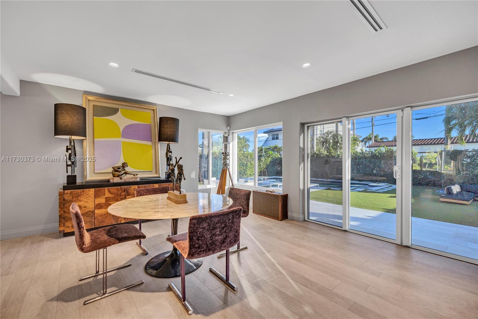 Experience luxury living in this stunning modern contemporary home, perfectly situated on a coveted corner double lot just minutes from Hollywood Beach. This 4-bedroom, 3-full bathroom split floor plan masterpiece features top-of-the-line finishes throughout, offering the perfect blend of style and sophistication. Open-concept featuring Sub-Zero refrigeration, a gas Thermador stove, oven, and hood, along with Bosch dishwasher, all set within a sleek, designer kitchen. Spacious living area is centered around a gas fireplace. Outside, indulge in your walk-in heated pool, offering modern elegance and unbeatable convenience in one of the most desirable locations. Unique opportunity to own a true gem just steps from the beach on iconic Harrison street.
