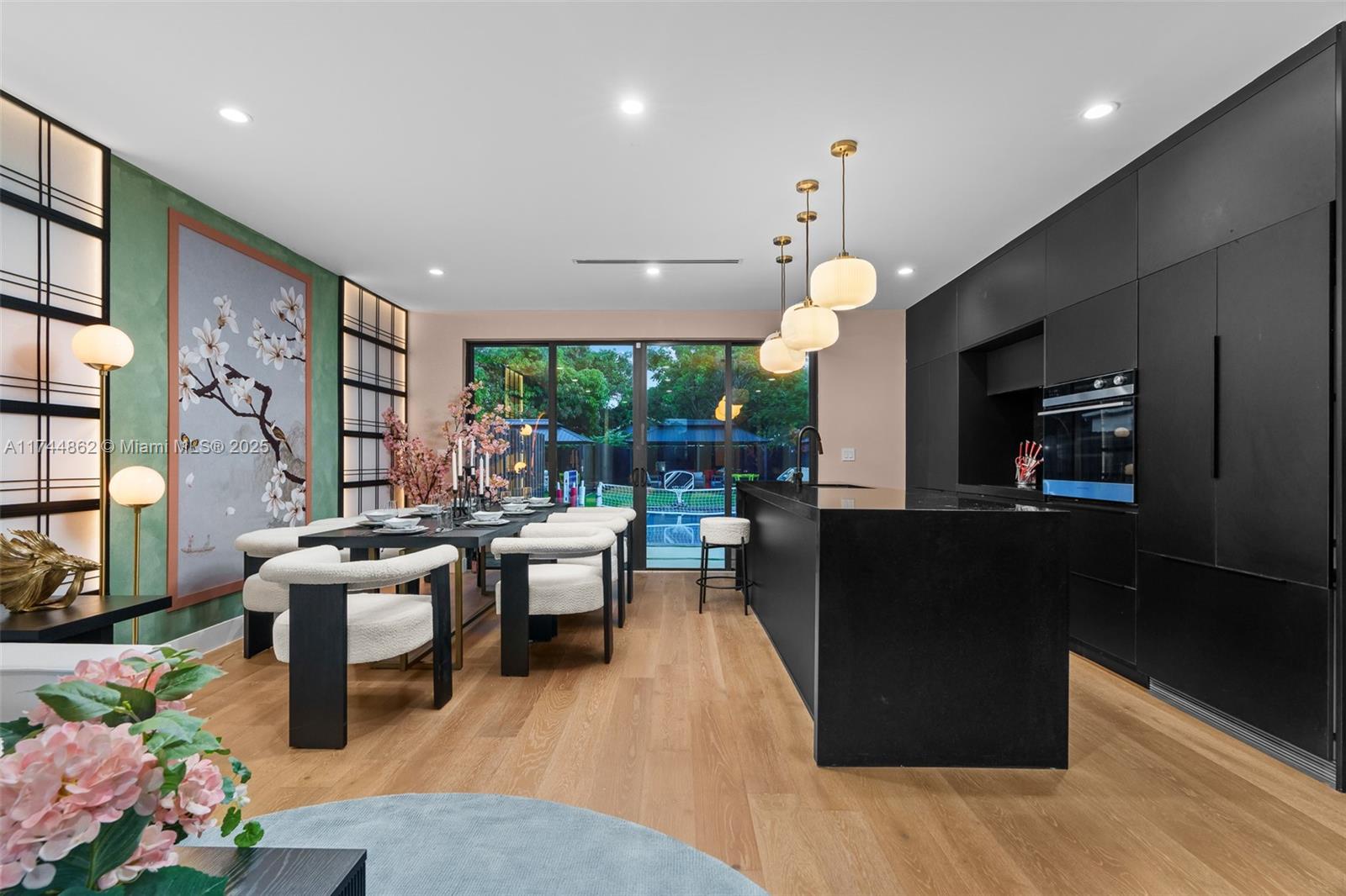 A rare fusion of modern luxury and Zen tranquility--schedule your tour today! Thoughtfully designed with a minimalist aesthetic, this home blends warm wood tones, sleek black finishes, and Zen-like interiors, creating a tranquil yet luxurious retreat. ? Open-Concept Living -- Modern black kitchen, ambient lighting, and an elegant dining space with a custom Japanese cherry blossom mural. ? Private Outdoor Sanctuary -- A peaceful backyard oasis with a pool, lush landscaping, and a seamless indoor-outdoor flow. ? Move-In Ready -- Comes fully furnished with curated, high-end pieces. ? Prime Location -- Moments from the Design District, Wynwood, and Midtown, making it a perfect investment or secondary home.