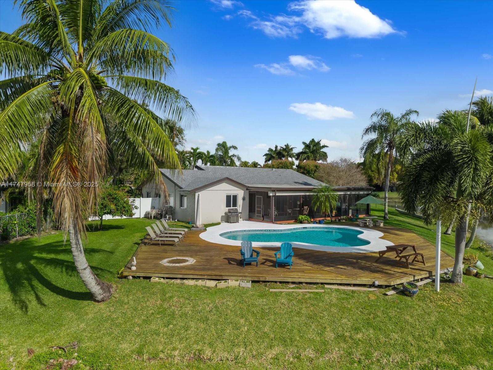 Discover this beautifully renovated 4 bed, 2 bath home perfectly situated on an oversized 16,100 SF lot, on a quiet cul-de-sac, in the sought-after Rock Creek community of Cooper City. Enjoy serene lake views from your private backyard oasis, complete w/ a sparkling pool and covered screened-in patio. Step inside to find high vaulted ceilings & abundant natural light throughout the open-concept living space. The spacious primary suite boasts a walk-in closet w/ access to the patio & a spa inspired bathroom. Additional highlights include a dedicated laundry room, a 2-car garage, & plenty of storage. Located in an A-rated school district makes it an excellent choice for families. A rare opportunity to own a move-in-ready gem in Cooper City?schedule your showing today!