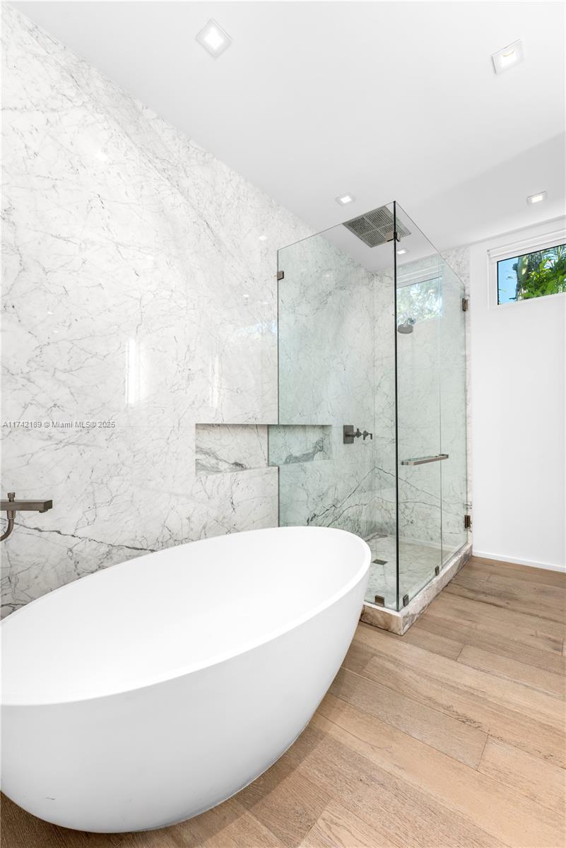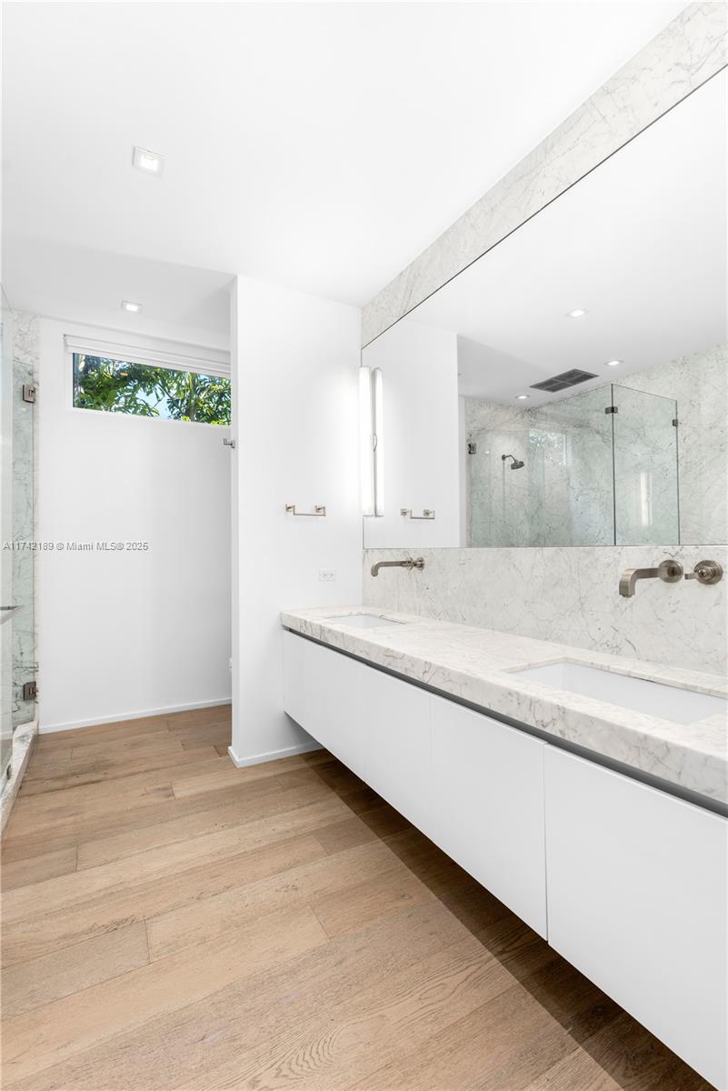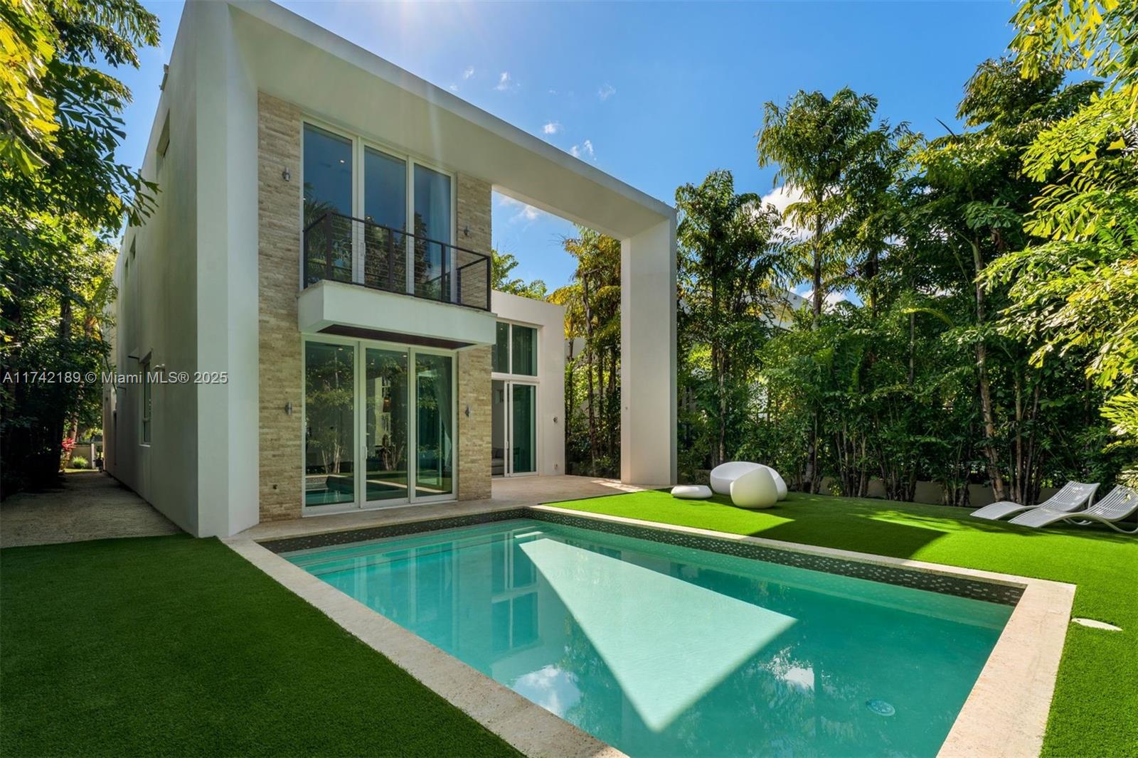 This exceptional two-story modern home offers 4 spacious bedrooms, 4.5 luxurious bathrooms, and 3,280 SQFT of meticulously designed living space on a generous 7,500 SQFT lot. Located in the heart of Miami Beach, this gated residence ensures ultimate privacy and tranquility. The home features a heated pool, a marble-clad master bath with a freestanding tub, and soaring double-height ceilings. Additional highlights include 2 laundry rooms, ensuring convenience and ease. Ideally situated on a quiet side street with limited traffic, the home offers the perfect blend of peaceful living and proximity to all the best that Miami Beach has to offer. Built by Todd Michael Glaser, this turn-key property exemplifies luxury, style, and sophistication.