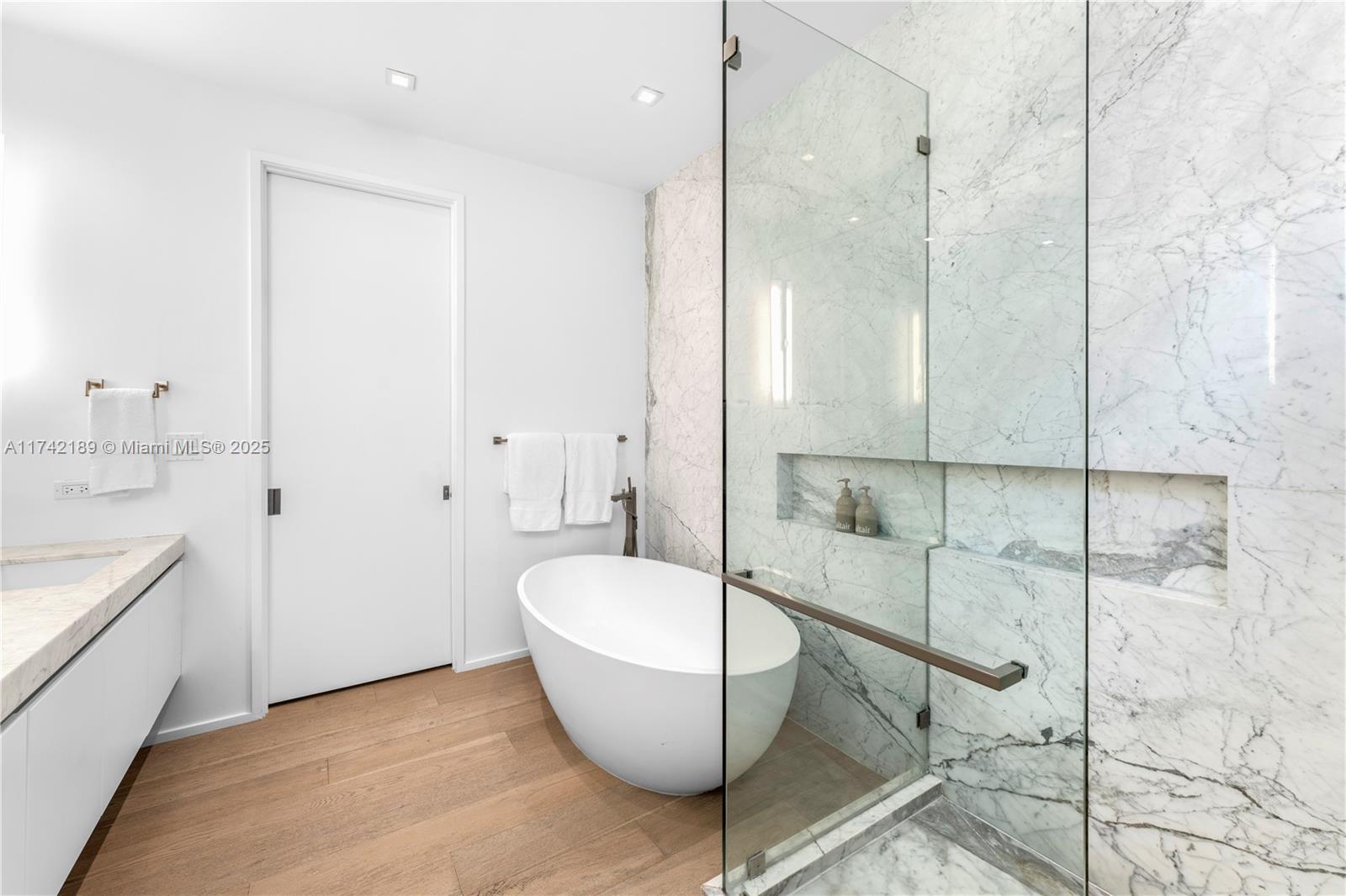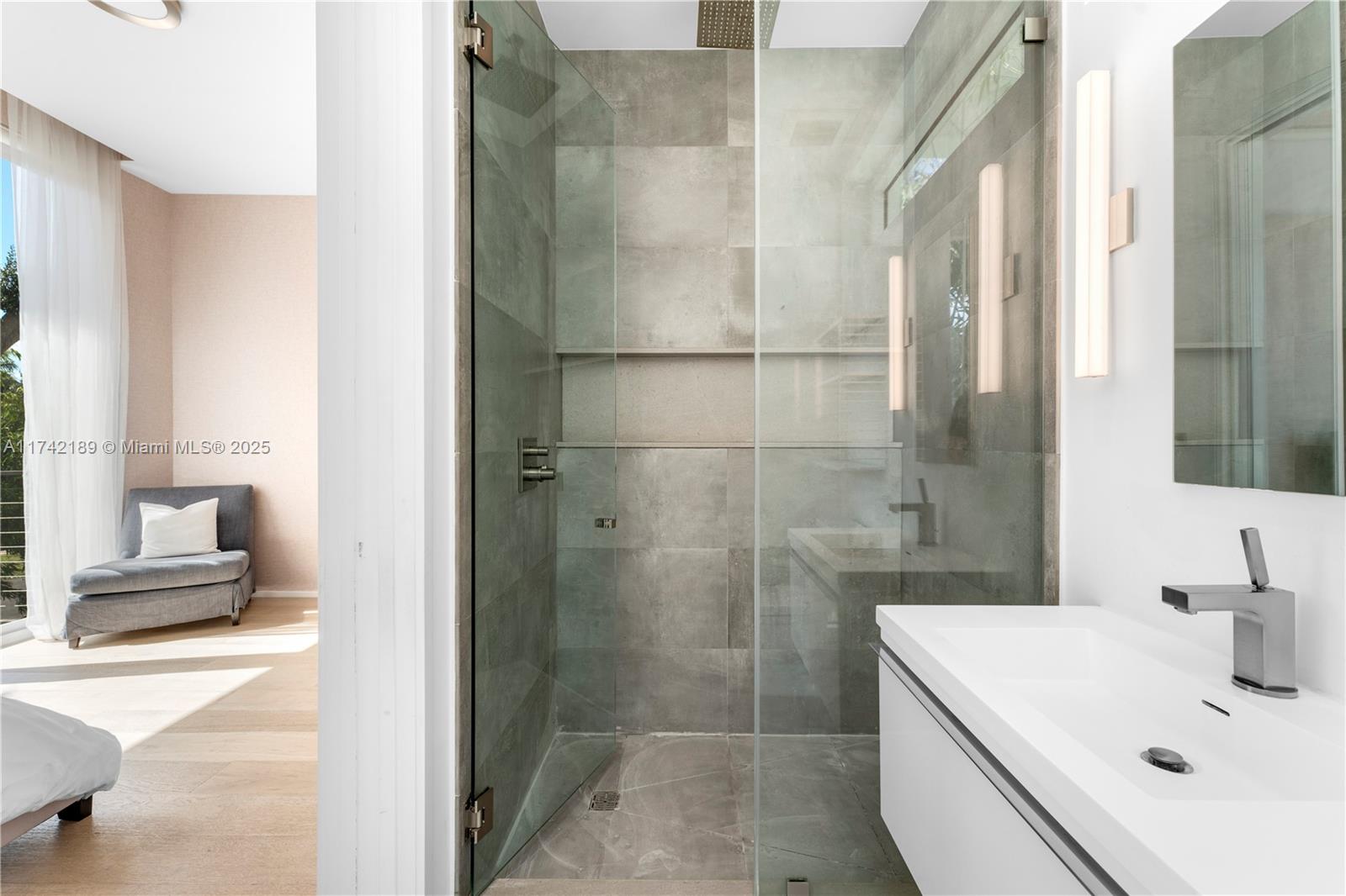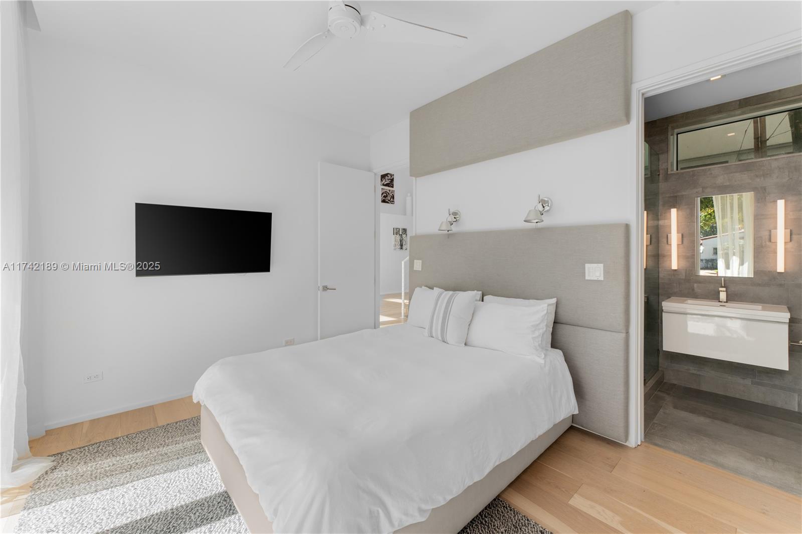 This exceptional two-story modern home offers 4 spacious bedrooms, 4.5 luxurious bathrooms, and 3,280 SQFT of meticulously designed living space on a generous 7,500 SQFT lot. Located in the heart of Miami Beach, this gated residence ensures ultimate privacy and tranquility. The home features a heated pool, a marble-clad master bath with a freestanding tub, and soaring double-height ceilings. Additional highlights include 2 laundry rooms, ensuring convenience and ease. Ideally situated on a quiet side street with limited traffic, the home offers the perfect blend of peaceful living and proximity to all the best that Miami Beach has to offer. Built by Todd Michael Glaser, this turn-key property exemplifies luxury, style, and sophistication.
