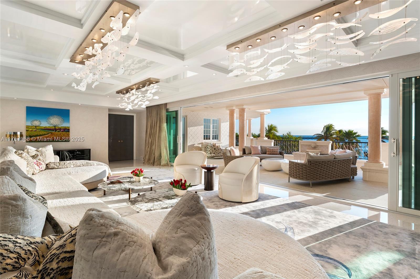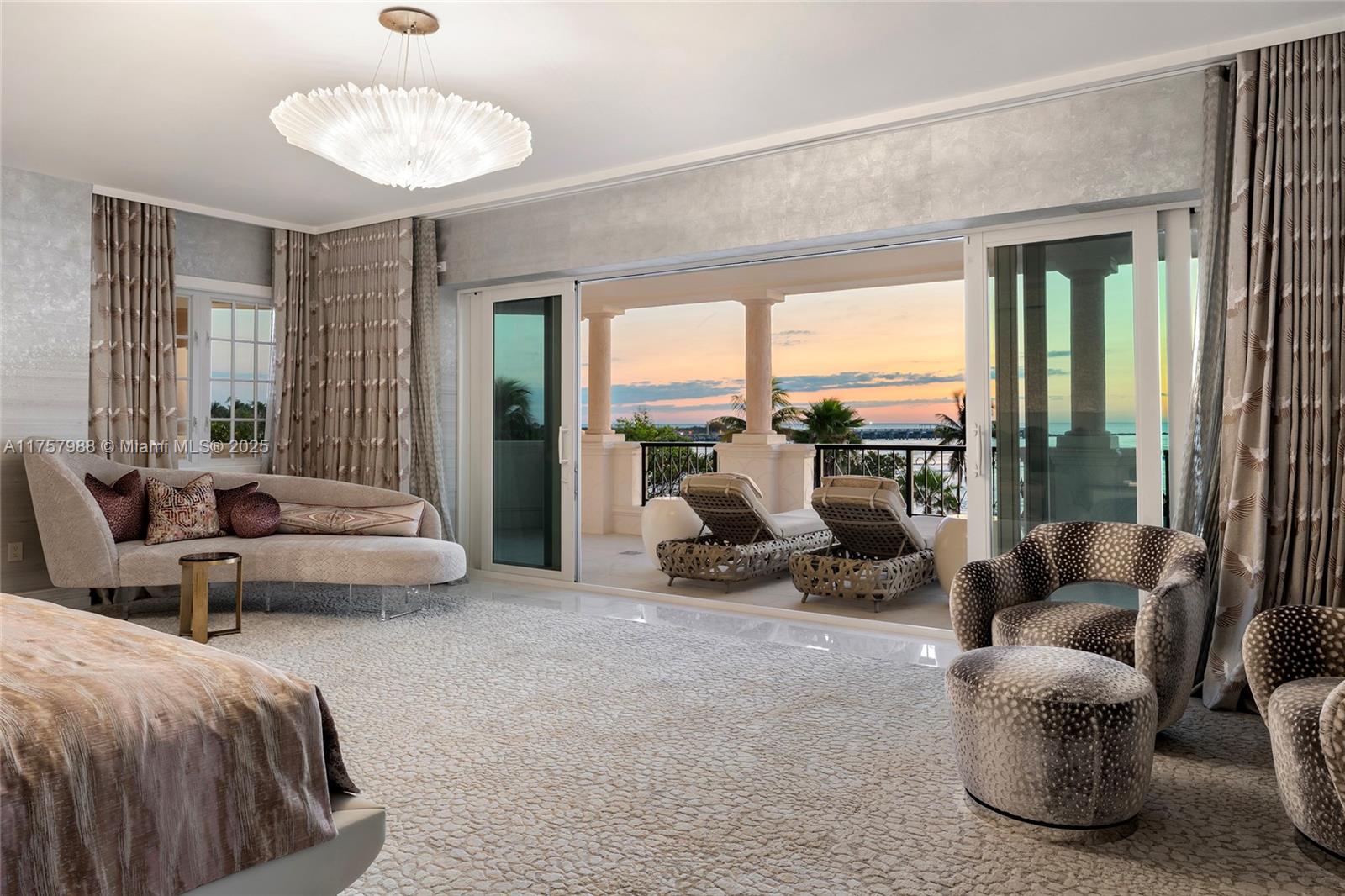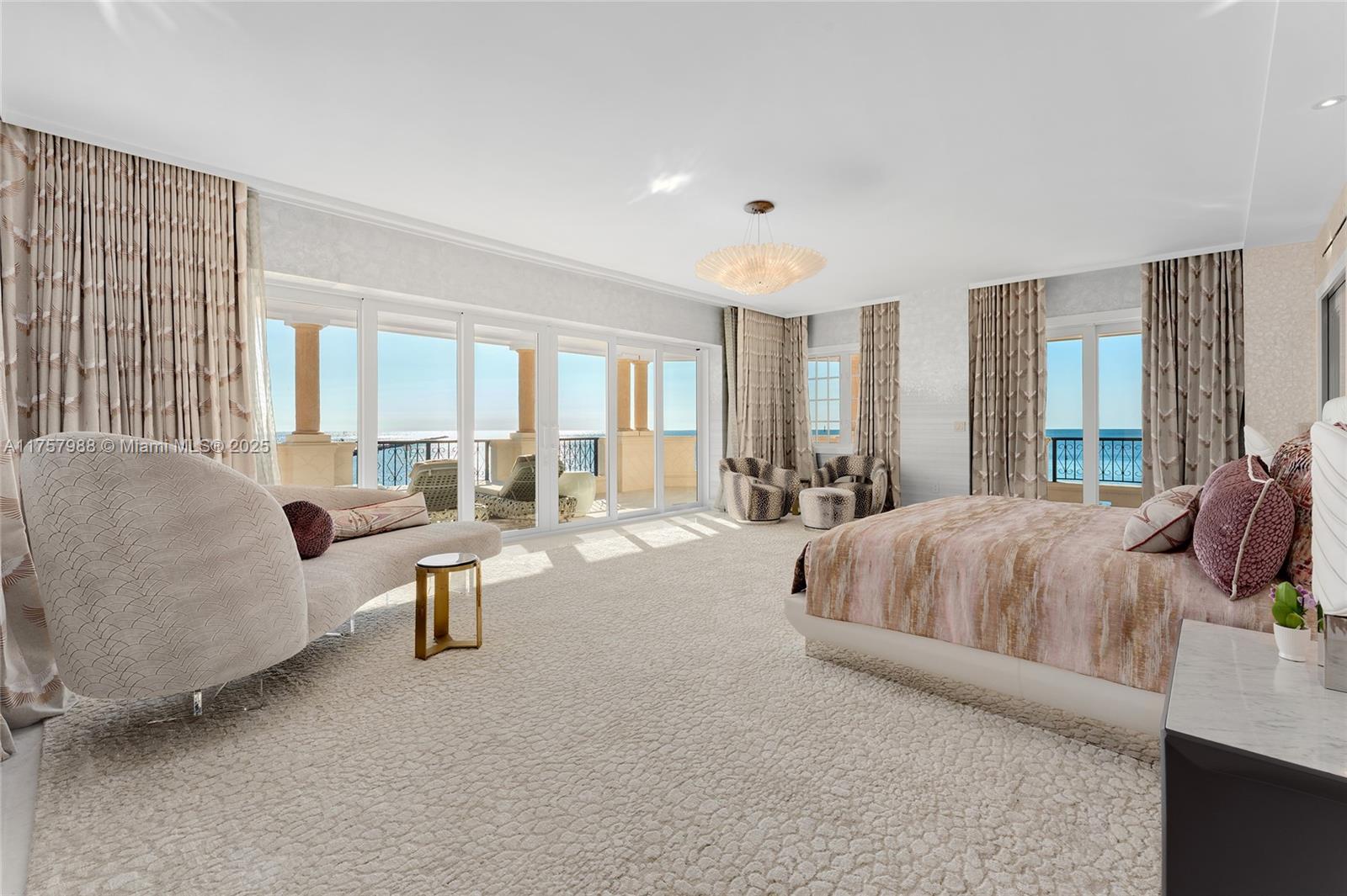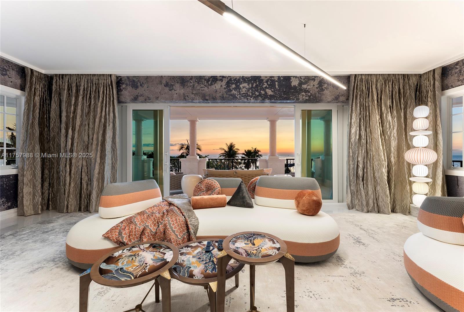 Located on the coveted Oceanfront tip of Fisher Island, this newly renovated, one-of-a-kind corner residence has been masterfully designed - every room an experience in luxury. Spanning over 6,800SF, custom wall treatments, exquisite stone floors and curated lighting adorn this 5-bedroom, 6.5-bathroom home. Expansive 1,952SF wraparound terrace offers multiple seating areas, alfresco dining, & panoramic sunrise views over Government Cut, & the Atlantic Ocean. Luxurious living room, gourmet chef's kitchen with top-tier appliances, & a private family room -- all w/amazing ocean views. A sumptuous oceanside principal suite includes an office space, custom sauna & stunning dual spa-inspired bathrooms w/lux walk-in closets. Four other bedrooms each uniquely designed w/beautiful ensuite baths.