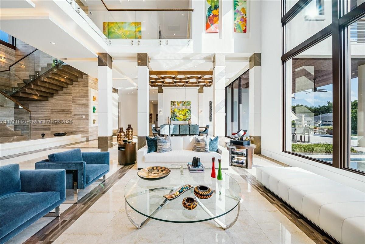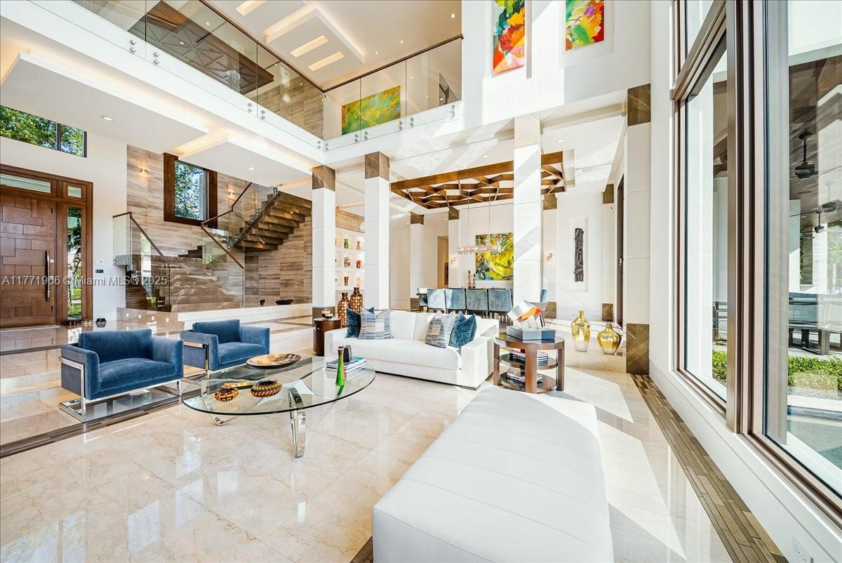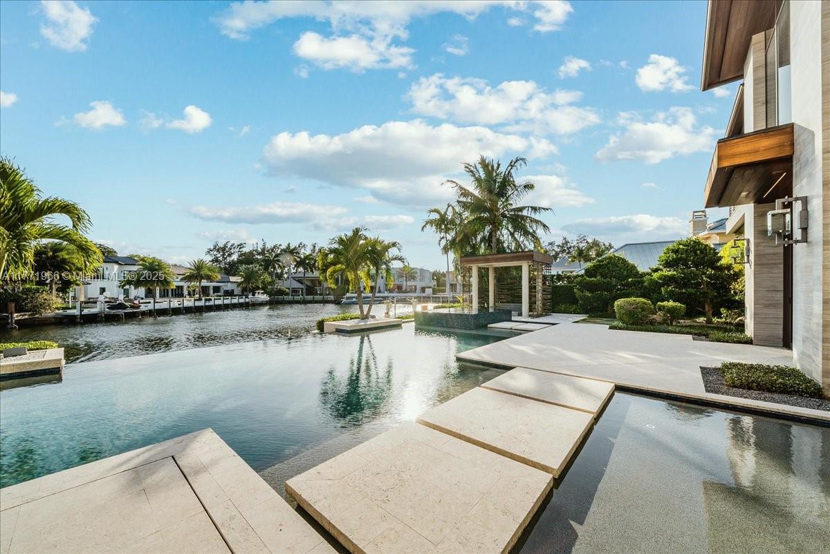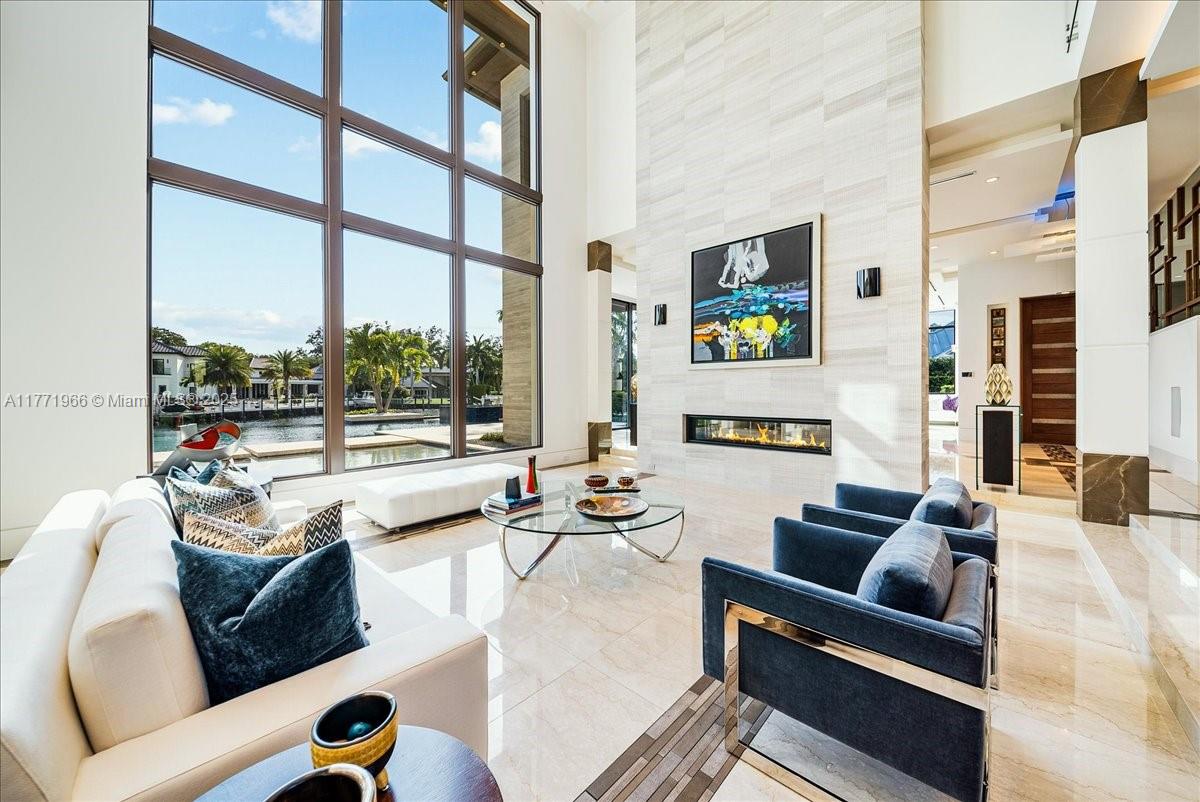 WATERFRONT MANSION- BAY COLONY- PRICED TO SELL ! This one of a kind home was designed by Stofft Architects & built by Cudmore Builders on 21,000sf of Prime Land. The property is a high security community with a guard gate with roaming + stationary guards. The property features 6 Bedrooms, 8 Baths, 4 Car Garage ( could add lifts ) , EV Charger , Walnut Wooden Doors, Imported Stone Walls, Two Level Great Room, Fitness Center, Cinema, Club Room, Staff Quarters w/ Kitchenette, Smart Home Technology, Chef Inspired Kitchen, office & Fireplace. The Primary Bedroom is an oversized wing- w/ soaking tub, rainfall shower , dual sinks and walk in closet. The backyard is resort style w/ an infinity edge pool, Cabana bath, outdoor kitchen, fire pit , boat/ jetski lift, 160ft of waterfront & generator