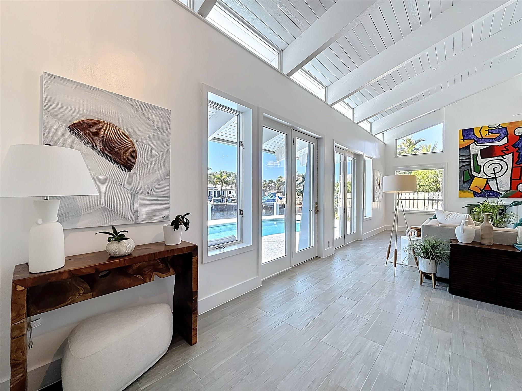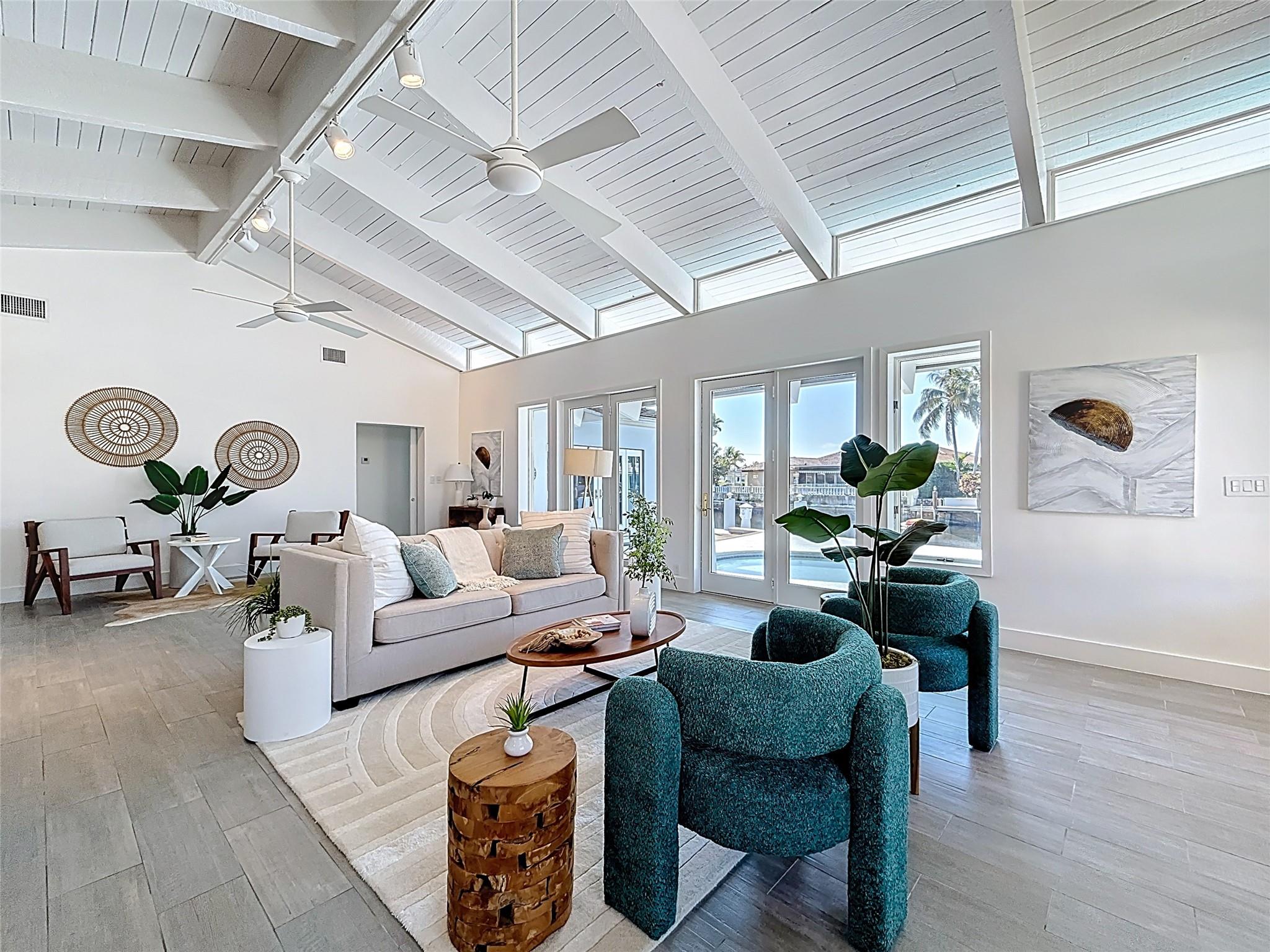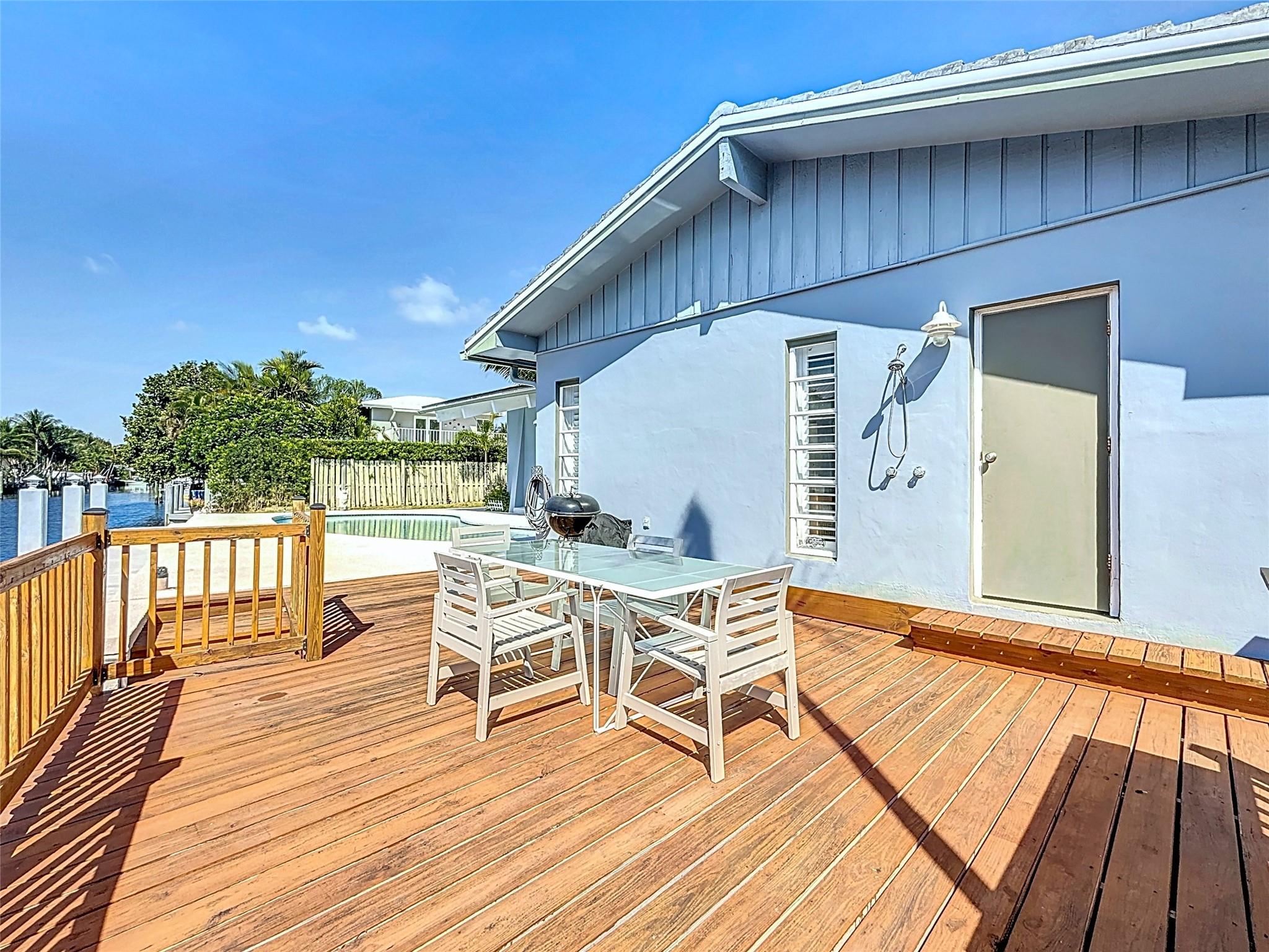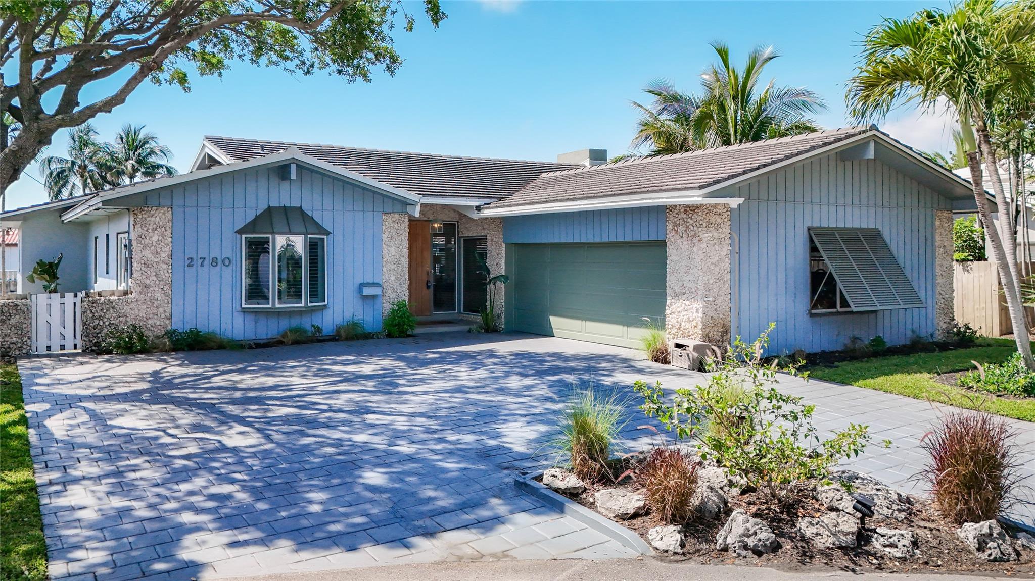 Discover your dream oasis in the heart of the prestigious Lake Estates neighborhood. This captivating waterfront property is a true gem, offering an unparalleled lifestyle for the discerning buyer. Bask in the Florida sunshine all day long as the inviting pool has southern exposure, enjoy a BBQ on the wood dock whilst the coconut trees and landscaping create a private paradise. Step inside and be instantly enchanted by the spacious open floor plan, where vaulted ceilings and an abundance of natural light create an atmosphere of grandeur and serenity. The large open plan living area making this an entertainer's dream come true. Situated on a wide canal, with a high bridge allowing 11.5 feet of clearance and secured by a recently completed impressive 90-foot concrete dock.