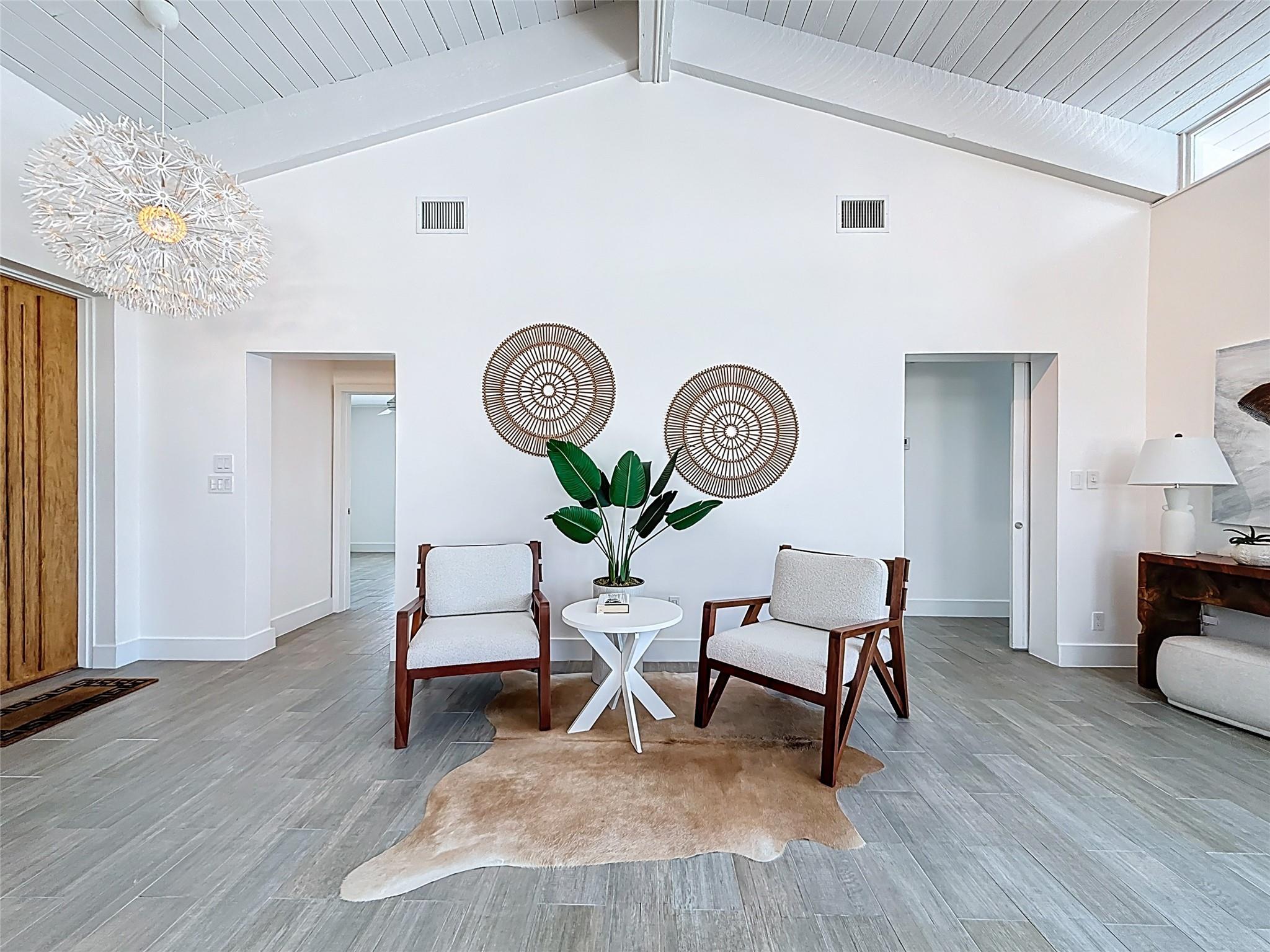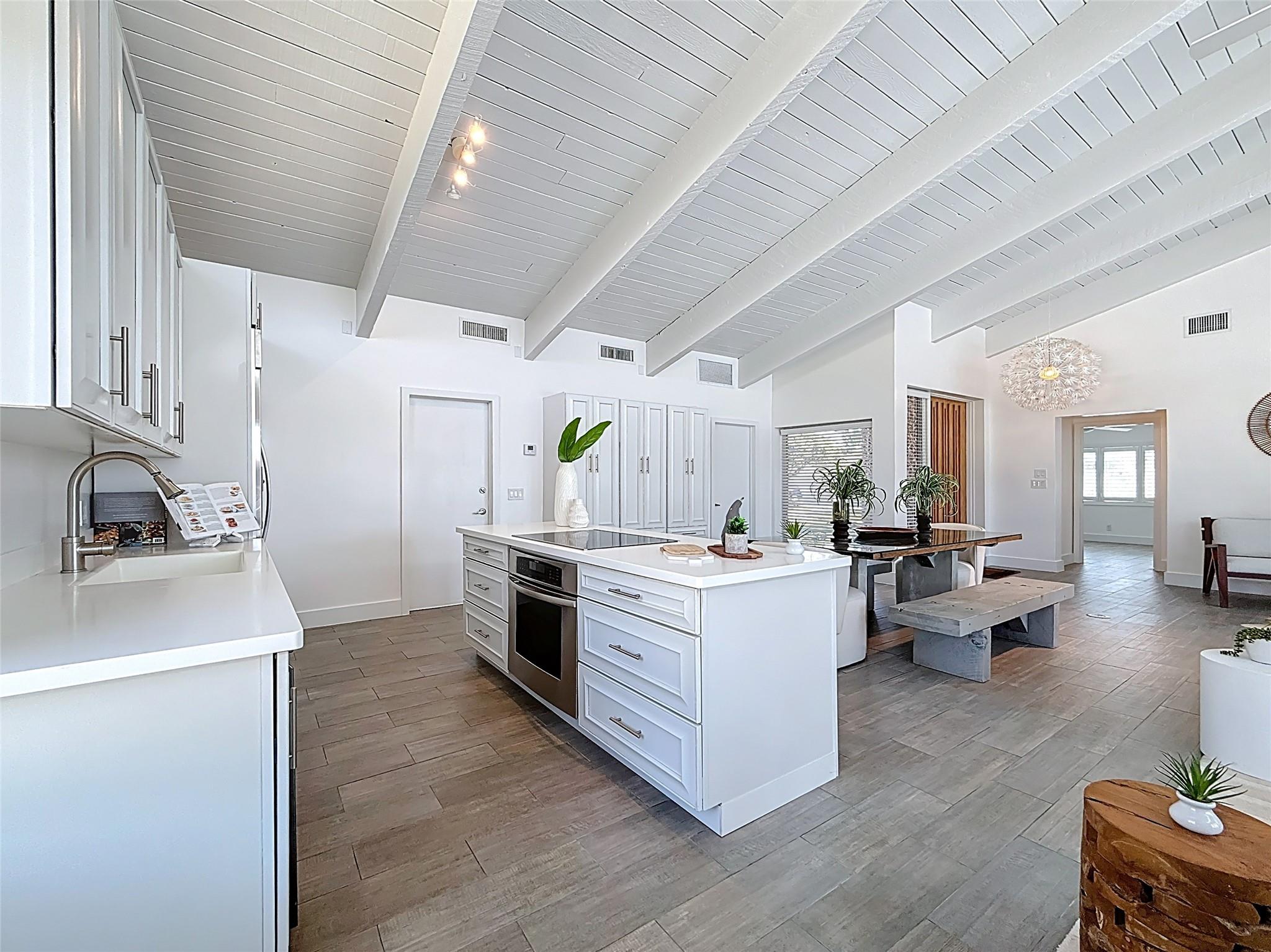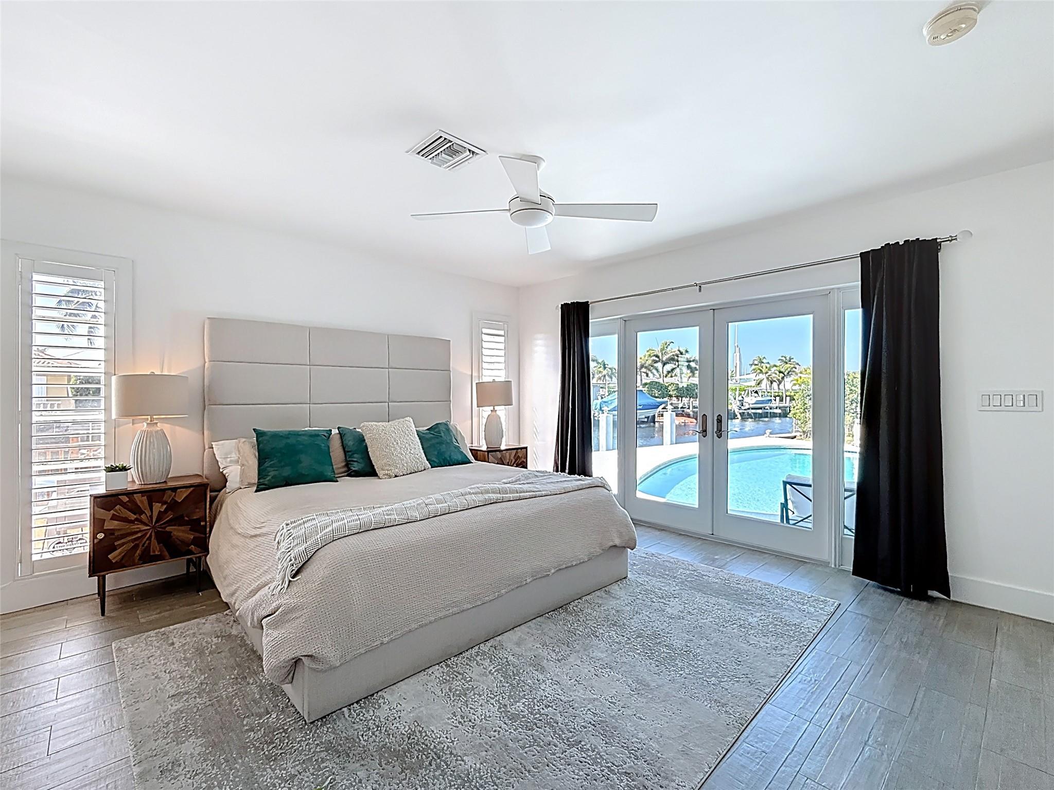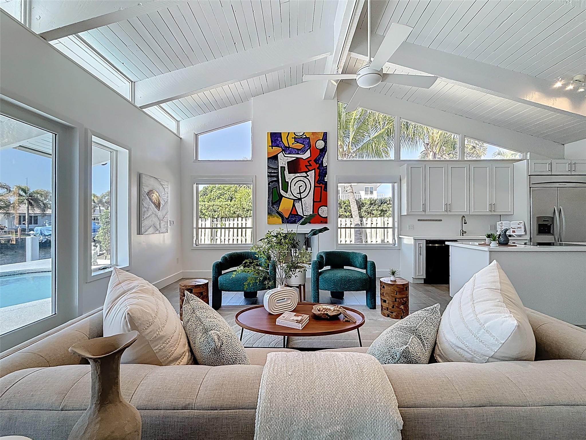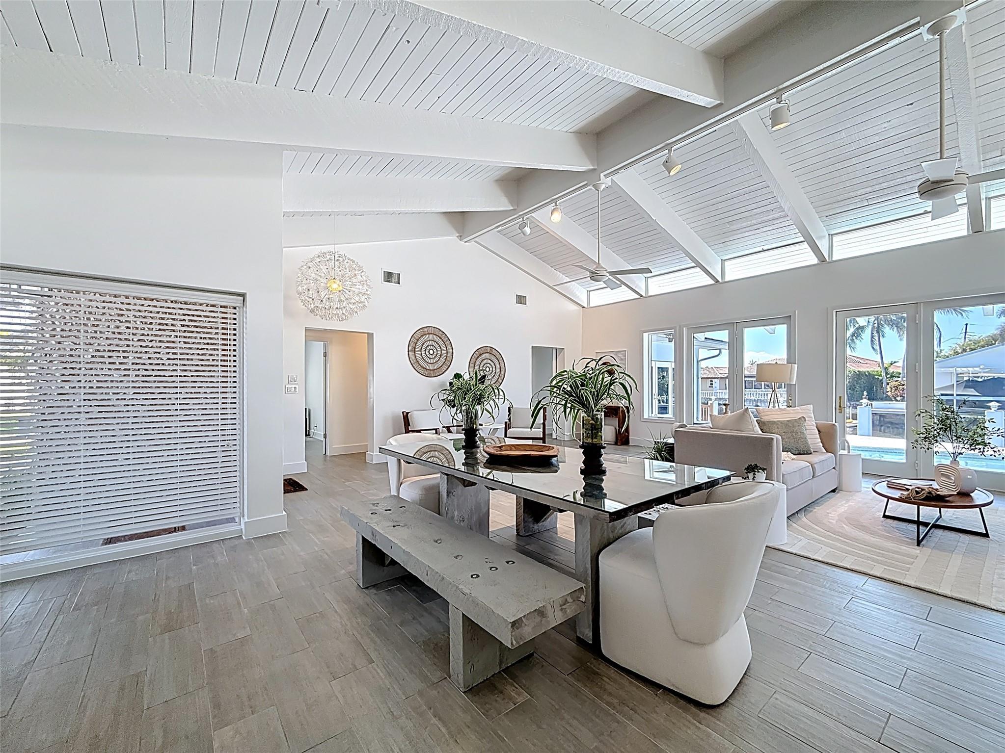 Discover your dream oasis in the heart of the prestigious Lake Estates neighborhood. This captivating waterfront property is a true gem, offering an unparalleled lifestyle for the discerning buyer. Bask in the Florida sunshine all day long as the inviting pool has southern exposure, enjoy a BBQ on the wood dock whilst the coconut trees and landscaping create a private paradise. Step inside and be instantly enchanted by the spacious open floor plan, where vaulted ceilings and an abundance of natural light create an atmosphere of grandeur and serenity. The large open plan living area making this an entertainer's dream come true. Situated on a wide canal, with a high bridge allowing 11.5 feet of clearance and secured by a recently completed impressive 90-foot concrete dock.