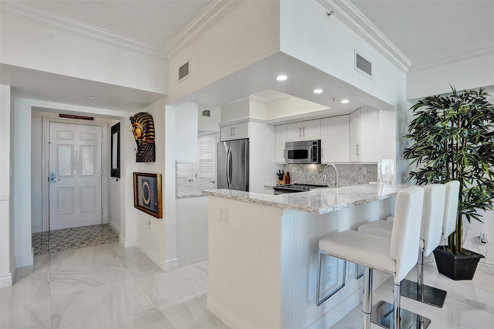 Blue Water, Cool Breezes, and a Warm Welcome are awaiting you in this EXQUISITELY designed LUXURY condo by the SEA! This STUNNING CORNER unit overlooks both the SPARKLING WATERS of the Intracoastal Waterway AND the beautiful SUNRISES over the OCEAN! The VIEWS are picture perfect so, YES, you CAN have it ALL! IMPECCABLY redesigned with FLOOR TO CEILING DETAILS including CUSTOM CABINETRY and MOLDINGS, CHEF'S KITCHEN w/QUARTZ countertops, SS appliances, NEW A/C, GORGEOUS PORCELAIN floors inside and out, Inlayed Mosaic Foyer, CUSTOM BUILT-INS, all NEW fixtures, doors, and hardware! LUXURY is REDEFINED in this 3 bed/2bath SEASIDE home! Experience the life you have always dreamed of in a home that truly rises to the occasion! Just steps to the BEACH, GOLF COURSE, WATER TAXI AND GREAT RESTAURANTS
