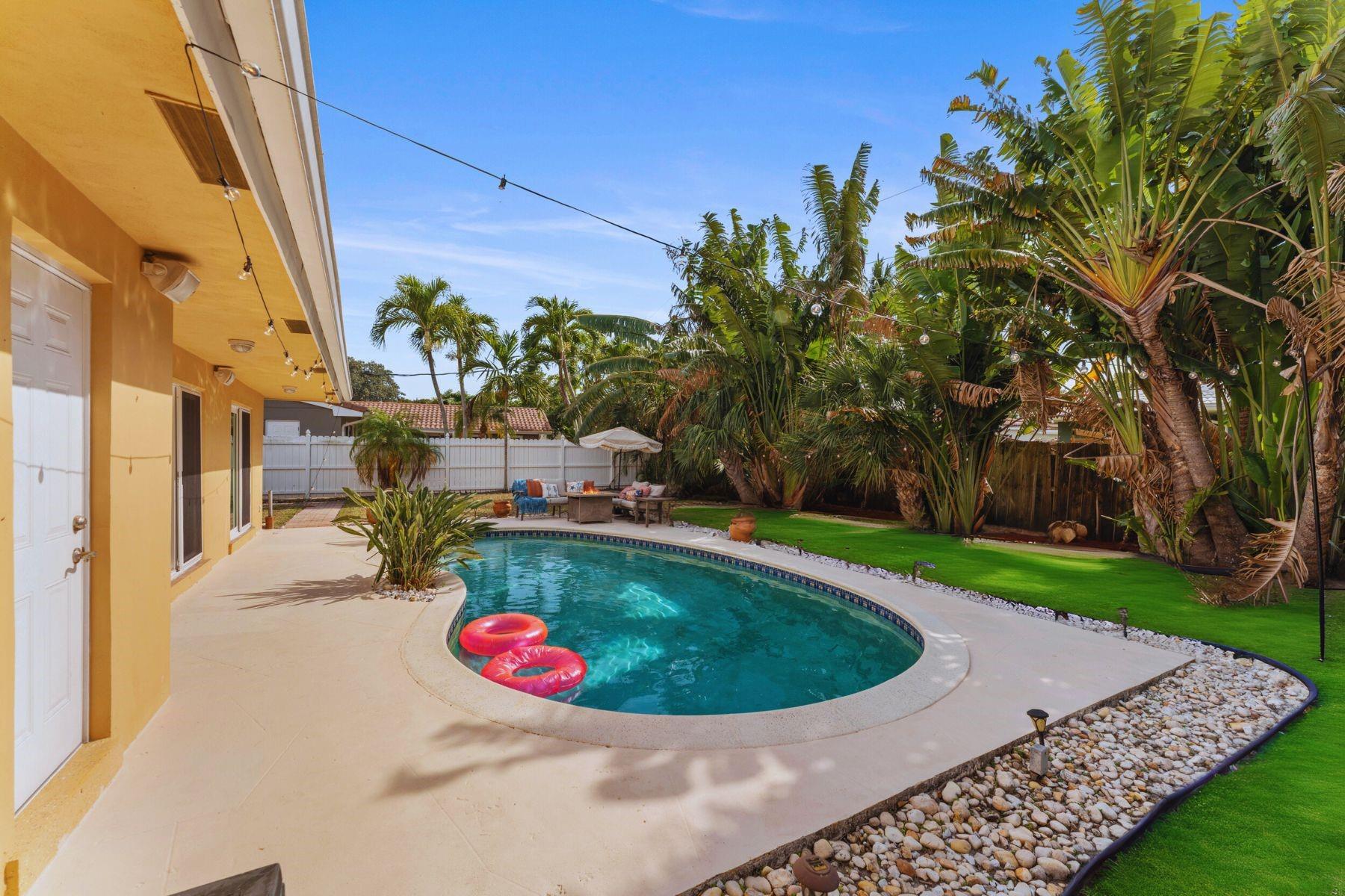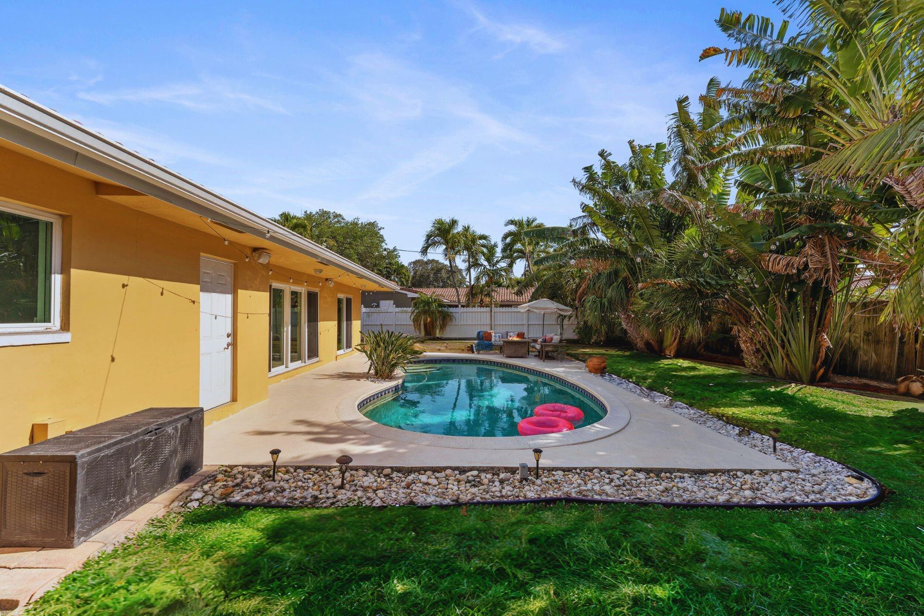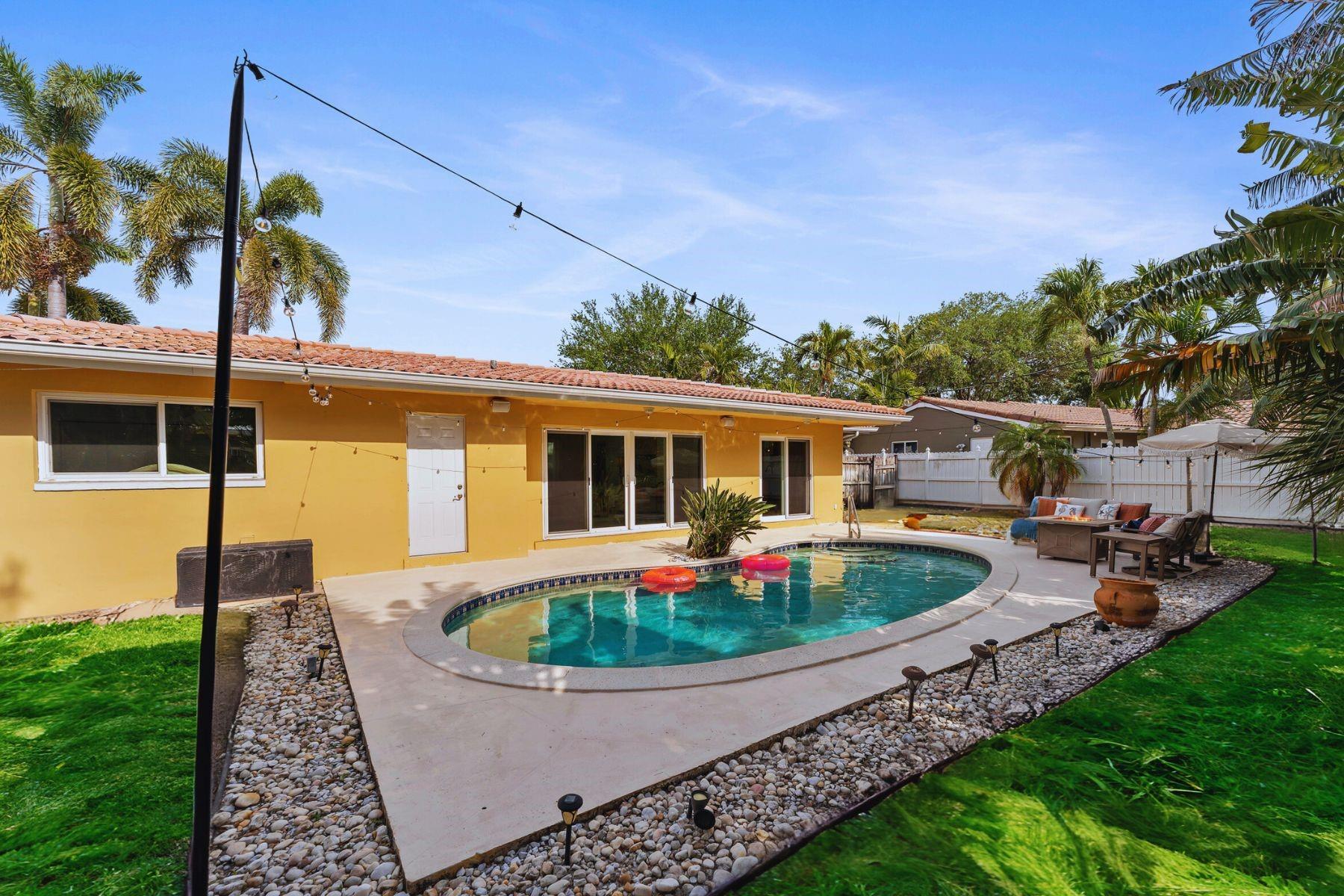 Welcome to the Golden Palms Retreat — a beautifully upgraded 2 bed, 2 bath pool home in the prestigious Imperial Point, only a bike ride to the beach. This move-in ready gem features a walk-in laundry room, oversized windows, upgraded tile showers with 2025 LED anti-fog mirrors, and new kitchen hardware, faucet, lighting, and smart lock. The layout offers a bonus walk-in closet for storage plus outdoor storage in the carport, which can easily be enclosed for a third room or flex space. Enjoy the Florida lifestyle with a freshly painted pool deck, IMPACT windows and doors, and a 2021 HVAC. Nestled on a quiet street in one of Fort Lauderdale’s most sought-after neighborhoods, this home blends comfort, style, and location.