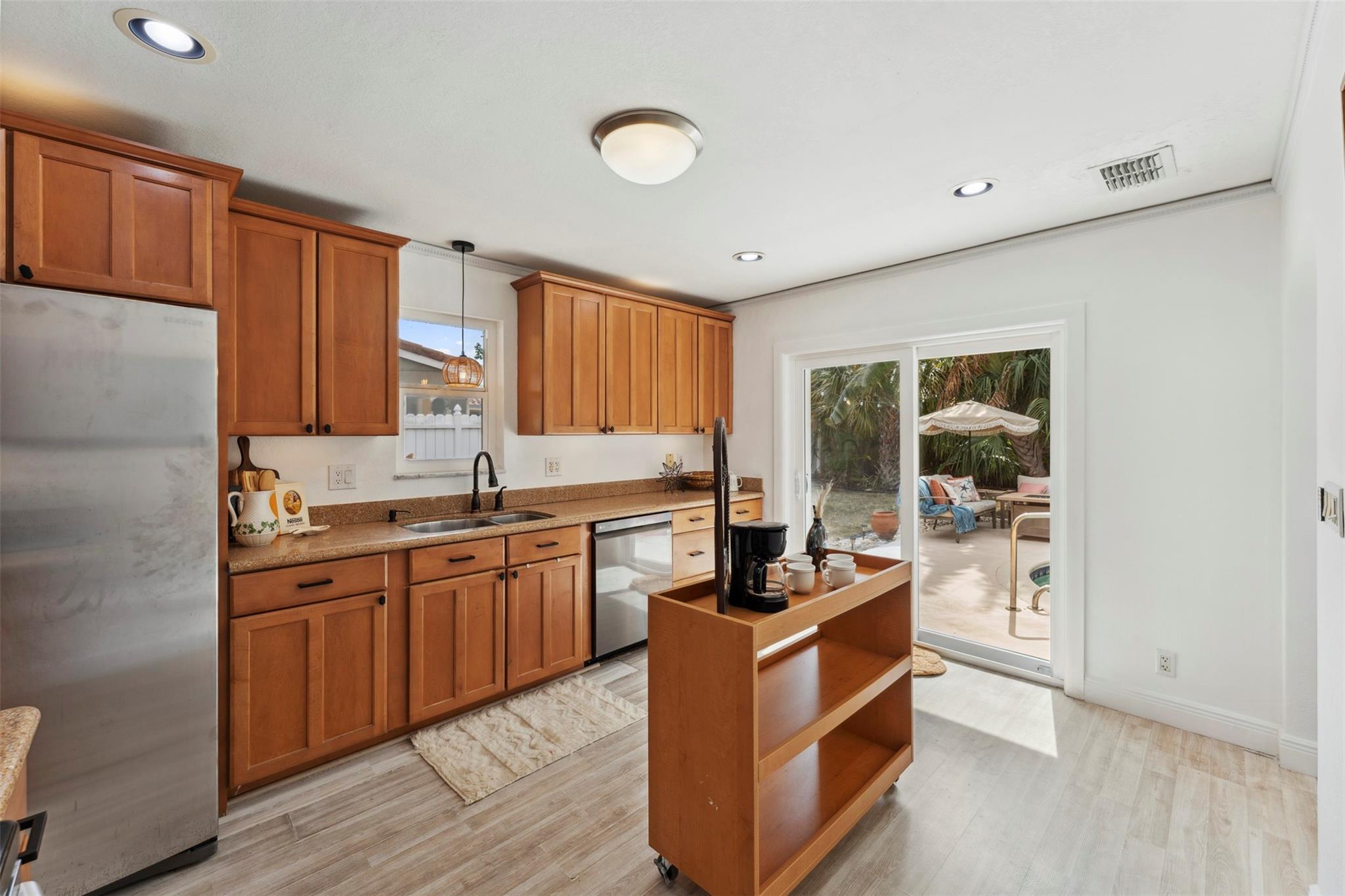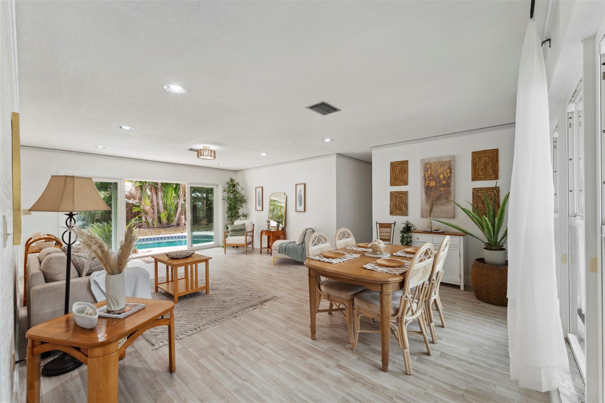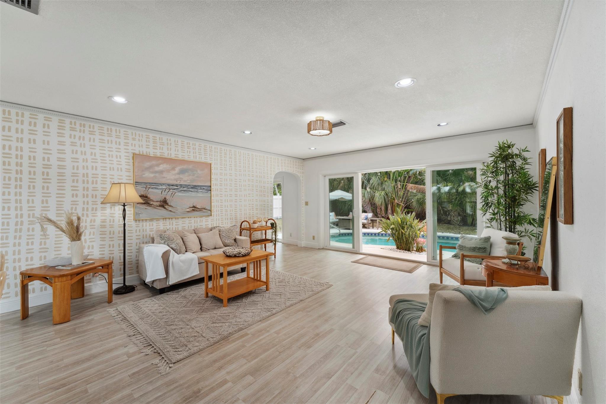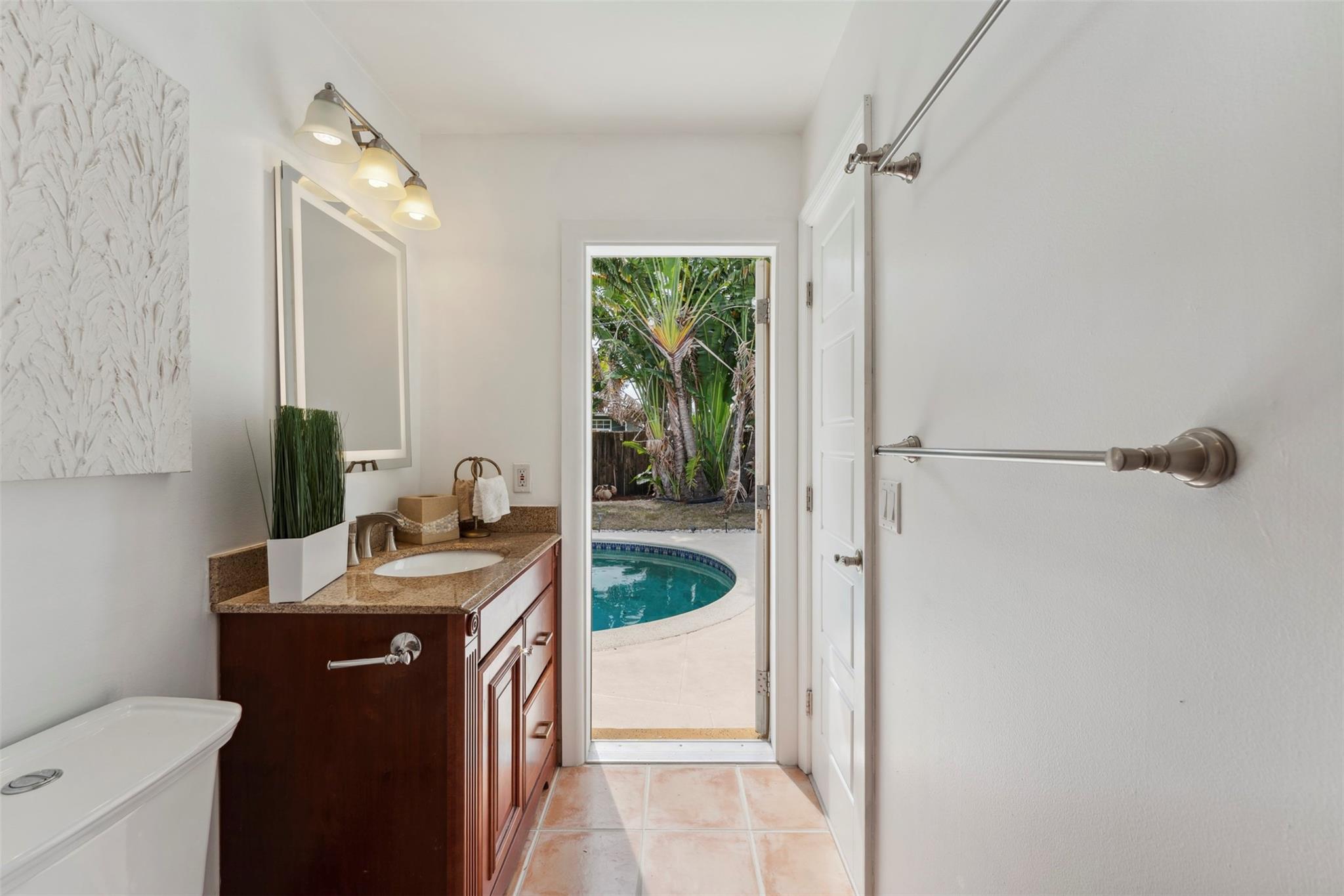 Welcome to the Golden Palms Retreat — a beautifully upgraded 2 bed, 2 bath pool home in the prestigious Imperial Point, only a bike ride to the beach. This move-in ready gem features a walk-in laundry room, oversized windows, upgraded tile showers with 2025 LED anti-fog mirrors, and new kitchen hardware, faucet, lighting, and smart lock. The layout offers a bonus walk-in closet for storage plus outdoor storage in the carport, which can easily be enclosed for a third room or flex space. Enjoy the Florida lifestyle with a freshly painted pool deck, IMPACT windows and doors, and a 2021 HVAC. Nestled on a quiet street in one of Fort Lauderdale’s most sought-after neighborhoods, this home blends comfort, style, and location.