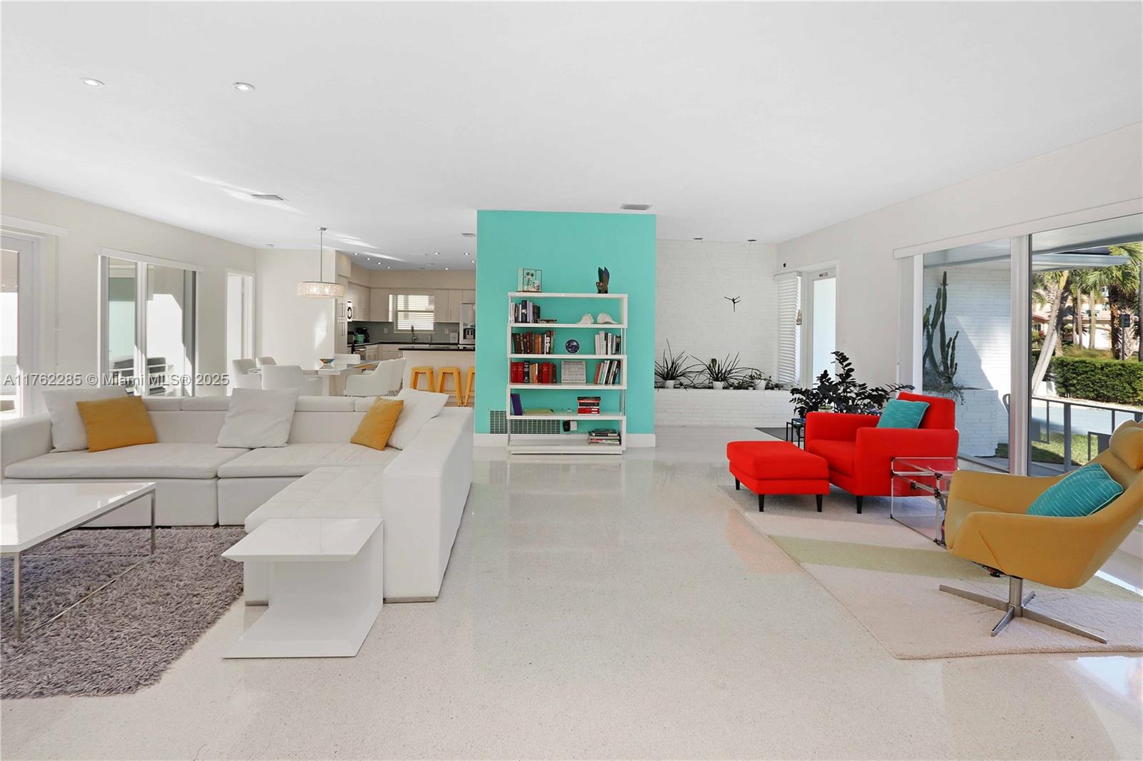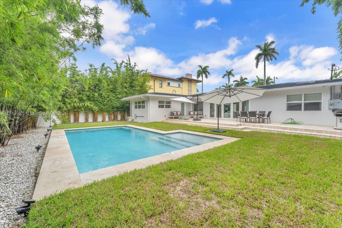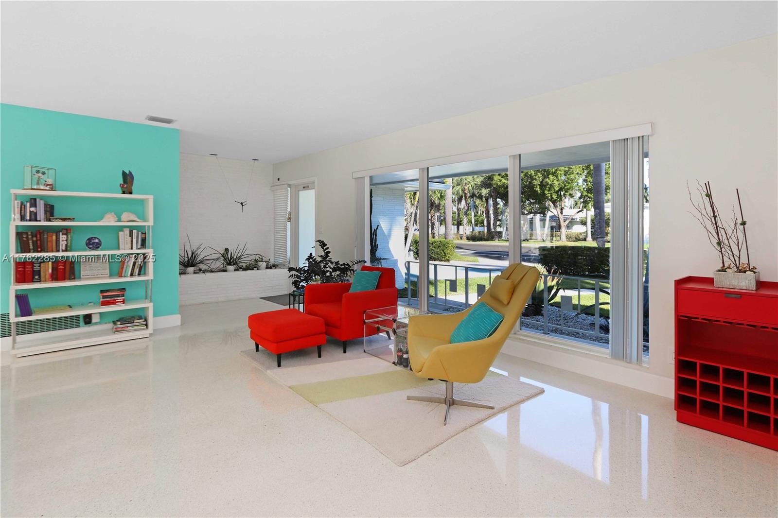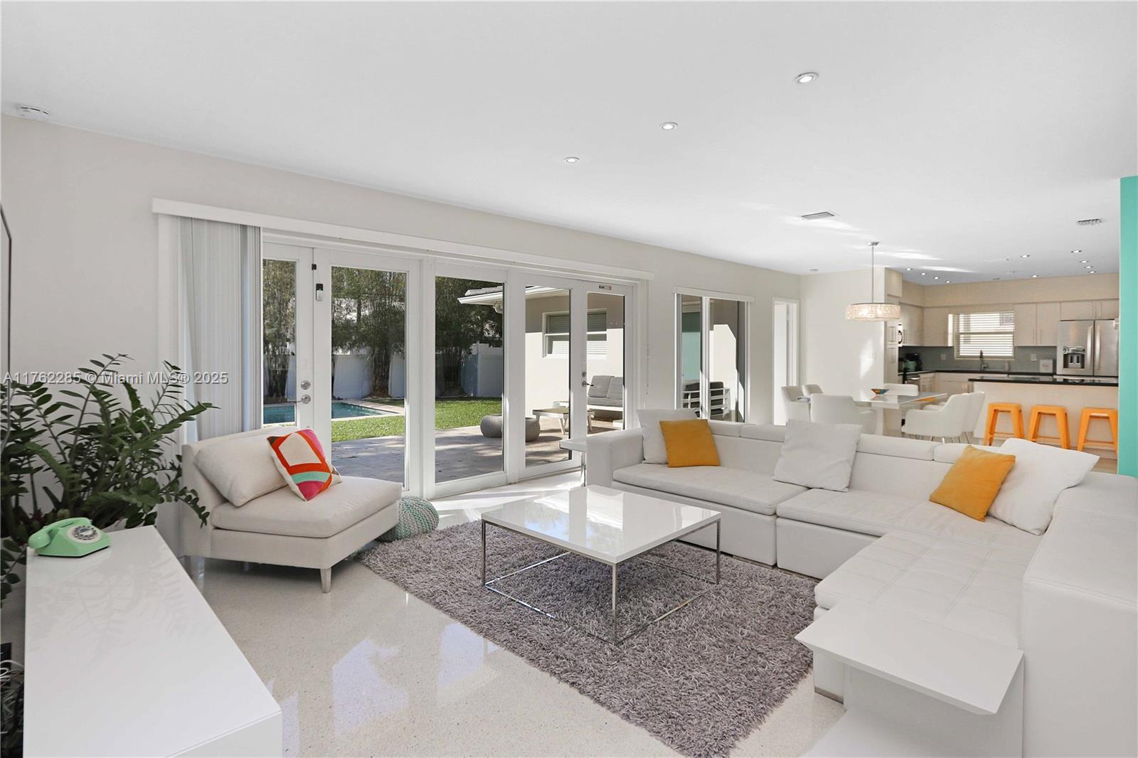This charming 3-bedroom, 2-bath Mid-Century Modern home is nestled in the highly sought-after Hollywood Lakes neighborhood. Step inside to an open, light filled layout with beautifully maintained terrazzo floors and a split-bedroom floorplan. The bright primary suite opens directly to a peaceful backyard featuring a heated pool, large paved patio, and fenced yard--perfect for relaxing or entertaining. With impact windows/doors, a new roof, and custom built-in closets, and a spacious 2 car garage, this home is move-in ready! Located just minutes from the beach, Hollywood Boardwalk, shopping, dining, and more.