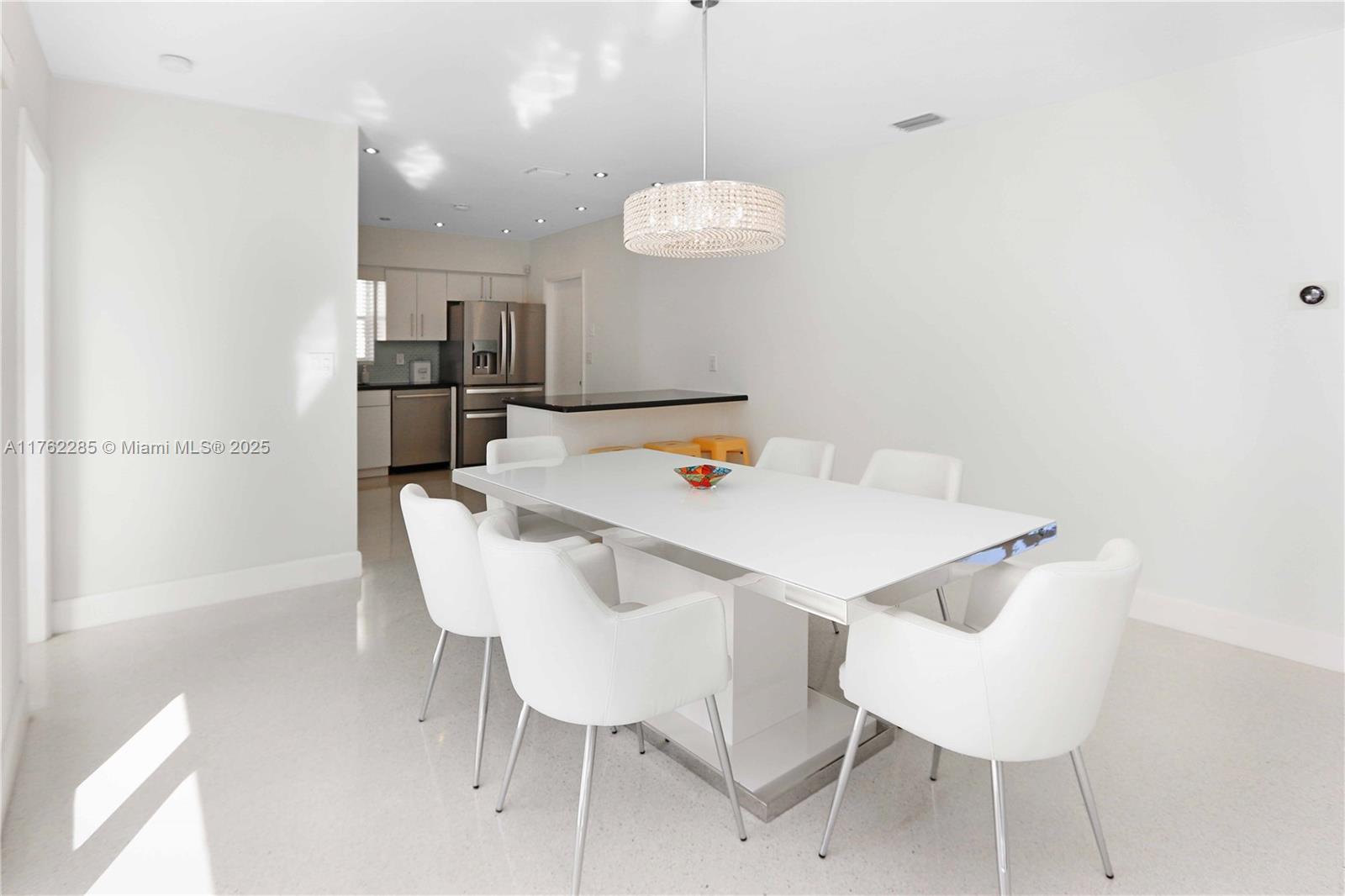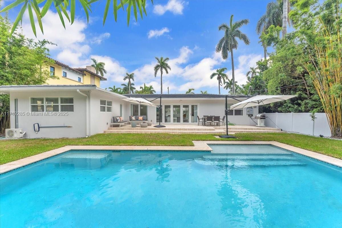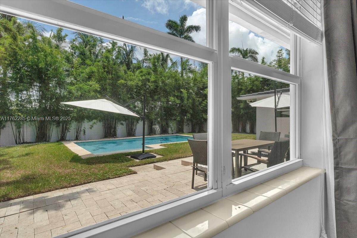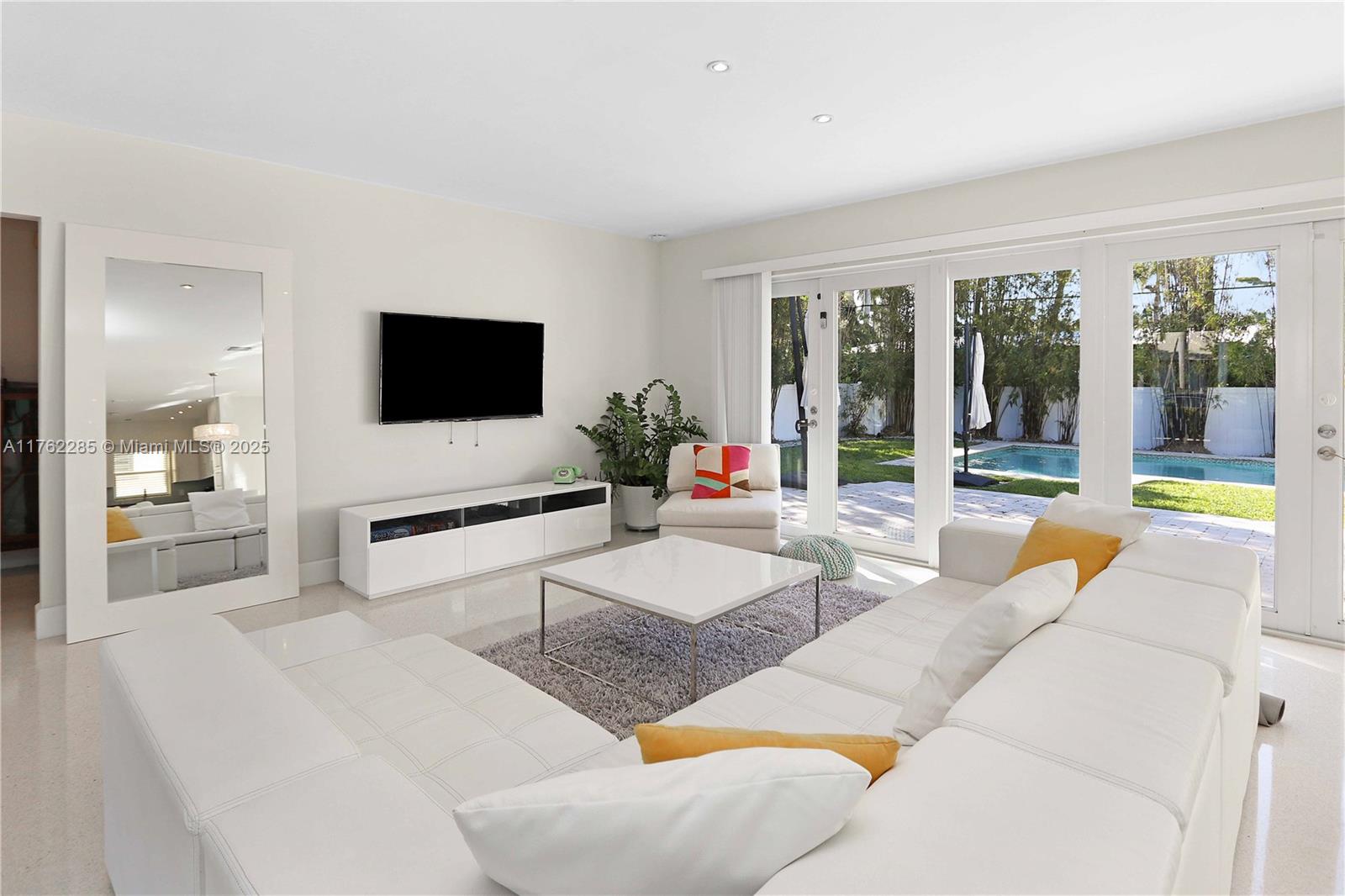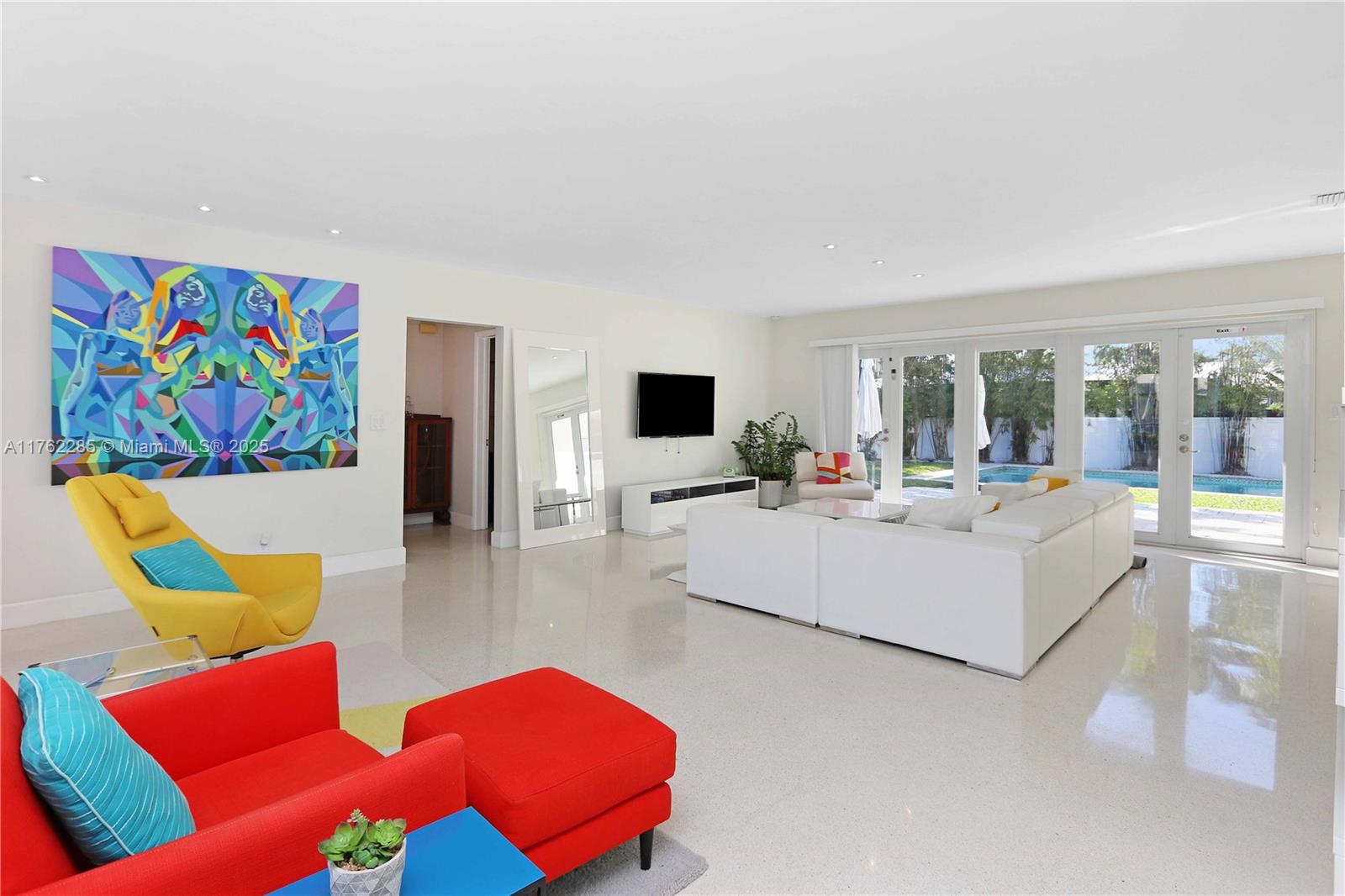 This charming 3-bedroom, 2-bath Mid-Century Modern home is nestled in the highly sought-after Hollywood Lakes neighborhood. Step inside to an open, light filled layout with beautifully maintained terrazzo floors and a split-bedroom floorplan. The bright primary suite opens directly to a peaceful backyard featuring a heated pool, large paved patio, and fenced yard--perfect for relaxing or entertaining. With impact windows/doors, a new roof, and custom built-in closets, and a spacious 2 car garage, this home is move-in ready! Located just minutes from the beach, Hollywood Boardwalk, shopping, dining, and more.