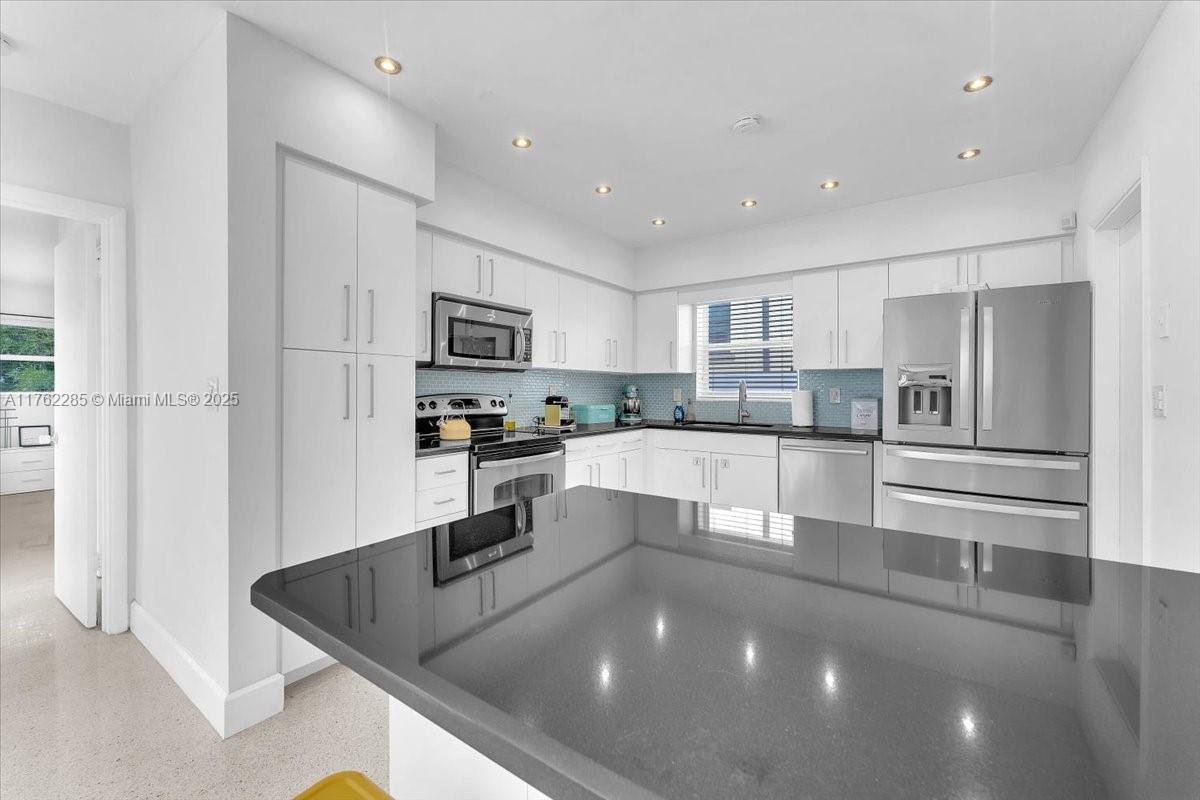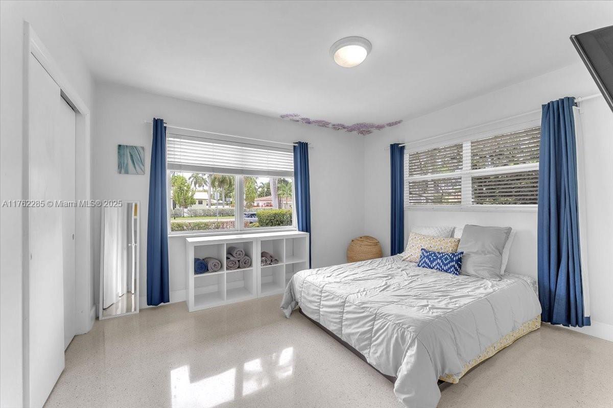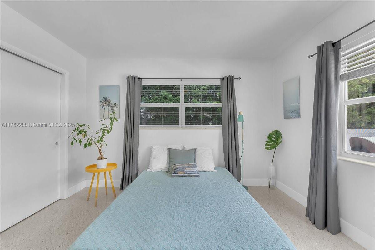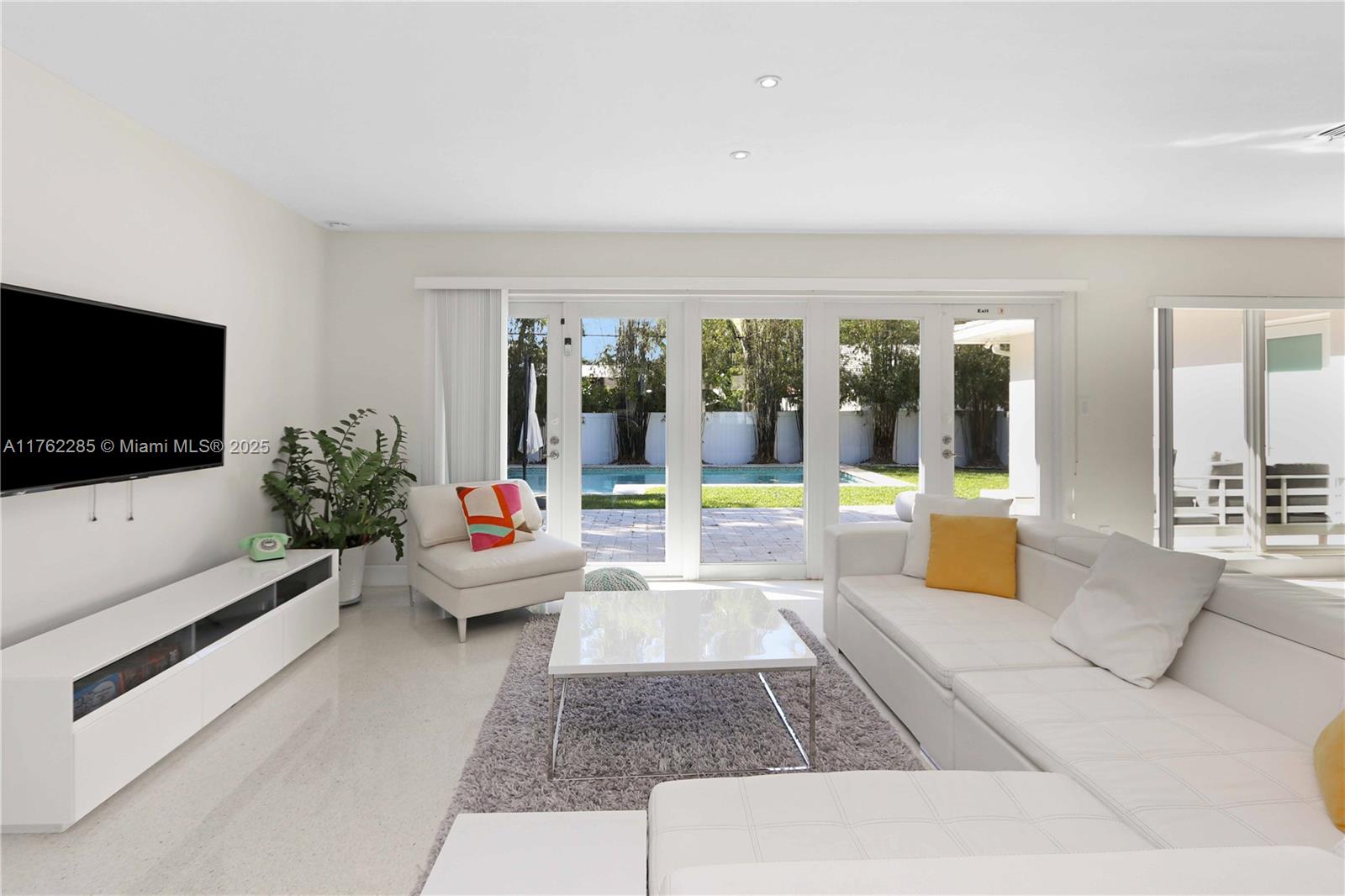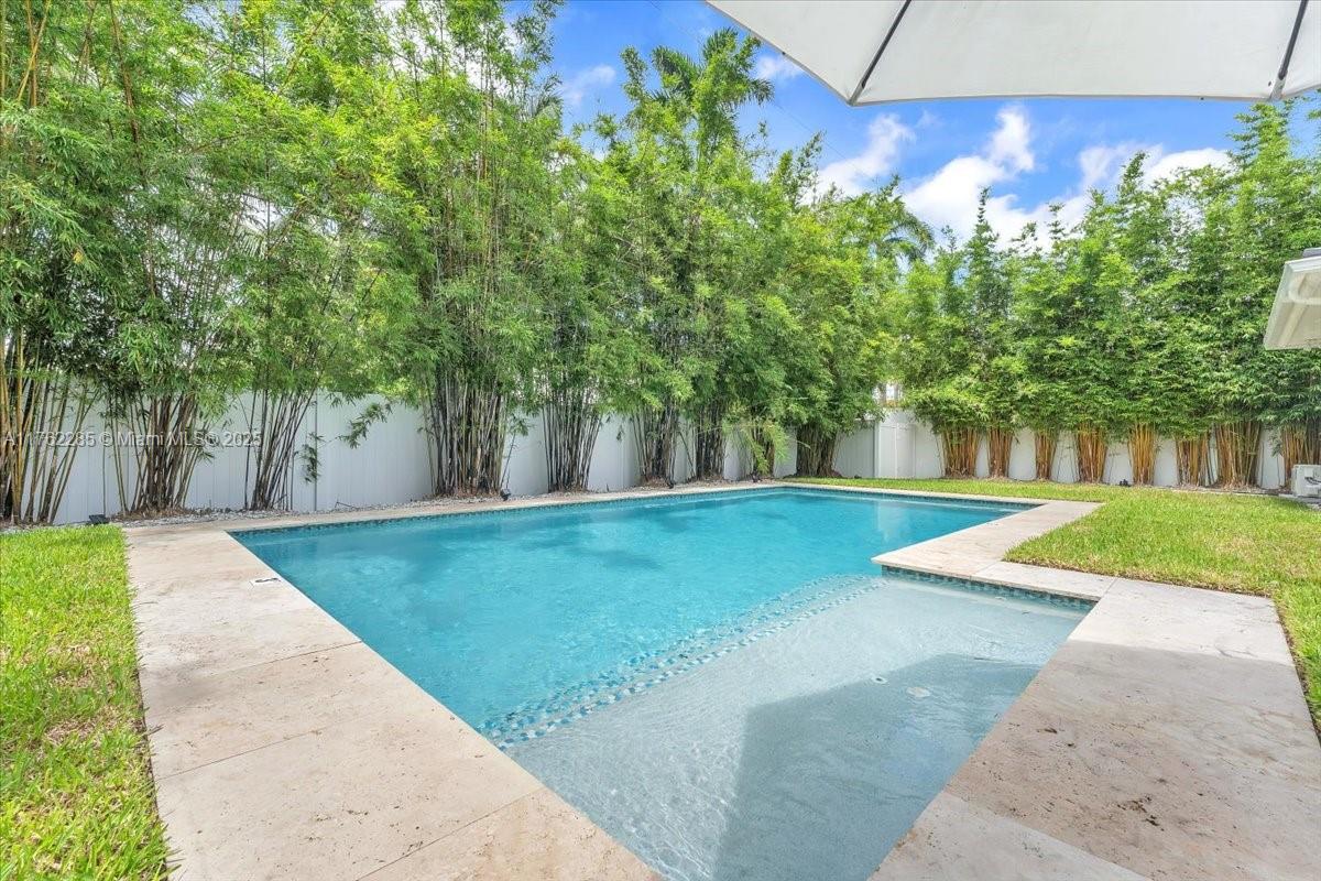This charming 3-bedroom, 2-bath Mid-Century Modern home is nestled in the highly sought-after Hollywood Lakes neighborhood. Step inside to an open, light filled layout with beautifully maintained terrazzo floors and a split-bedroom floorplan. The bright primary suite opens directly to a peaceful backyard featuring a heated pool, large paved patio, and fenced yard--perfect for relaxing or entertaining. With impact windows/doors, a new roof, and custom built-in closets, and a spacious 2 car garage, this home is move-in ready! Located just minutes from the beach, Hollywood Boardwalk, shopping, dining, and more.