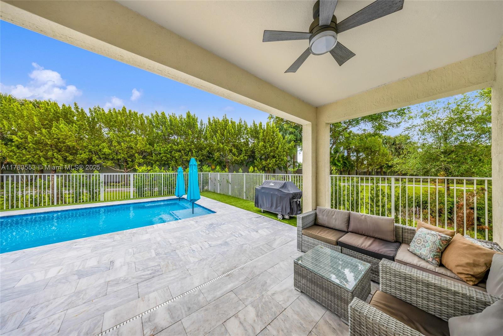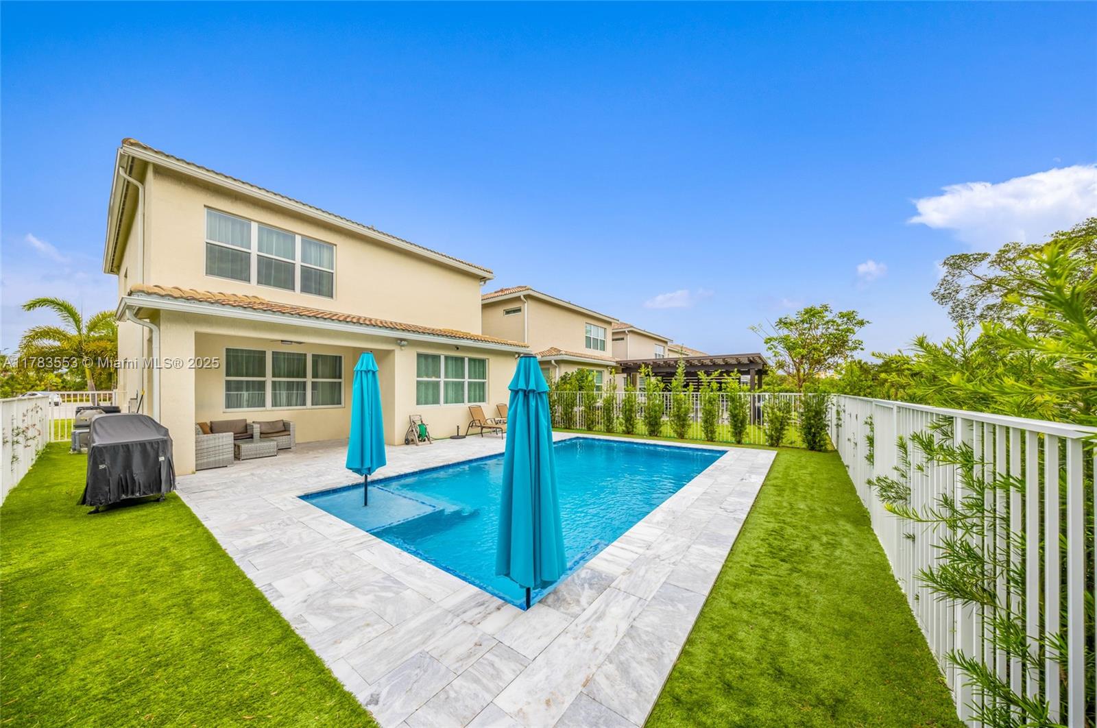 Beautiful 3-bedroom, 2.5-bath home with a first-floor den and upstairs loft, offering versatile living space. This spacious home features an upgraded kitchen with premium KitchenAid appliances and an Allini whole-house water filtration system. The backyard is a private retreat with a custom-built pool, lush turf, and privacy hedges - perfect for relaxing or entertaining. This property offers plenty of natural light throughout. Located in a resort-style community with top amenities including a pool, full gym, clubhouse, playground, tennis and pickleball courts, plus scenic 3-mile trails ideal for walking, biking, or rollerblading. Truly a home that combines comfort, style, and exceptional lifestyle.