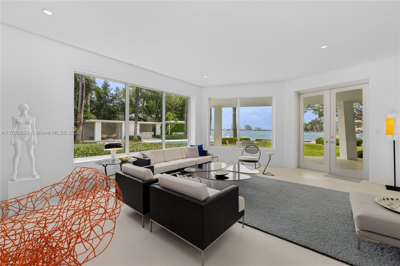Step into this breathtaking waterfront sanctuary on prestigious North Bay Road. This 4-bedroom, 4.5-bath mid-century estate sits on an oversized 27,013 SF lot w/ 113' of pristine bay frontage. A grand koi pond entrance leads to sunlit interiors, featuring L-shaped living room, bar, private office, media room, & formal dining area. The fully renovated Bulthaup kitchen combines style & function w/ high-end appliances & a second prep kitchen. The primary suite mesmerizes w/ sweeping water views, dual walk-in closets & a luxurious spa bath. Outdoors complete w/ lush landscaping designed by Raymond Jungles, heated pool, dining & seating pavilions, private dock & a Kalamazoo built-in summer kitchen w/ pizza oven. This home blends privacy & serenity, moments from Miami Beach's vibrant lifestyle.