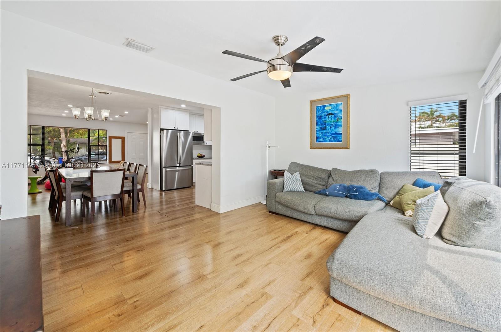 Sophisticated and breathtaking, this four-bedroom, two-bathroom home is a masterpiece of modern luxury. Every inch has been meticulously transformed with stunning upgrades, from high-end kitchen appliances to spacious, elegantly designed living areas. Designed for both style and peace of mind, it features hurricane shutters, underground electric lines, and an electric car charger. The expansive, fully fenced backyard boasts lush mango trees and a large patio--perfect for a pool or entertaining. Nestled in a secluded neighborhood, this rare gem won't last!