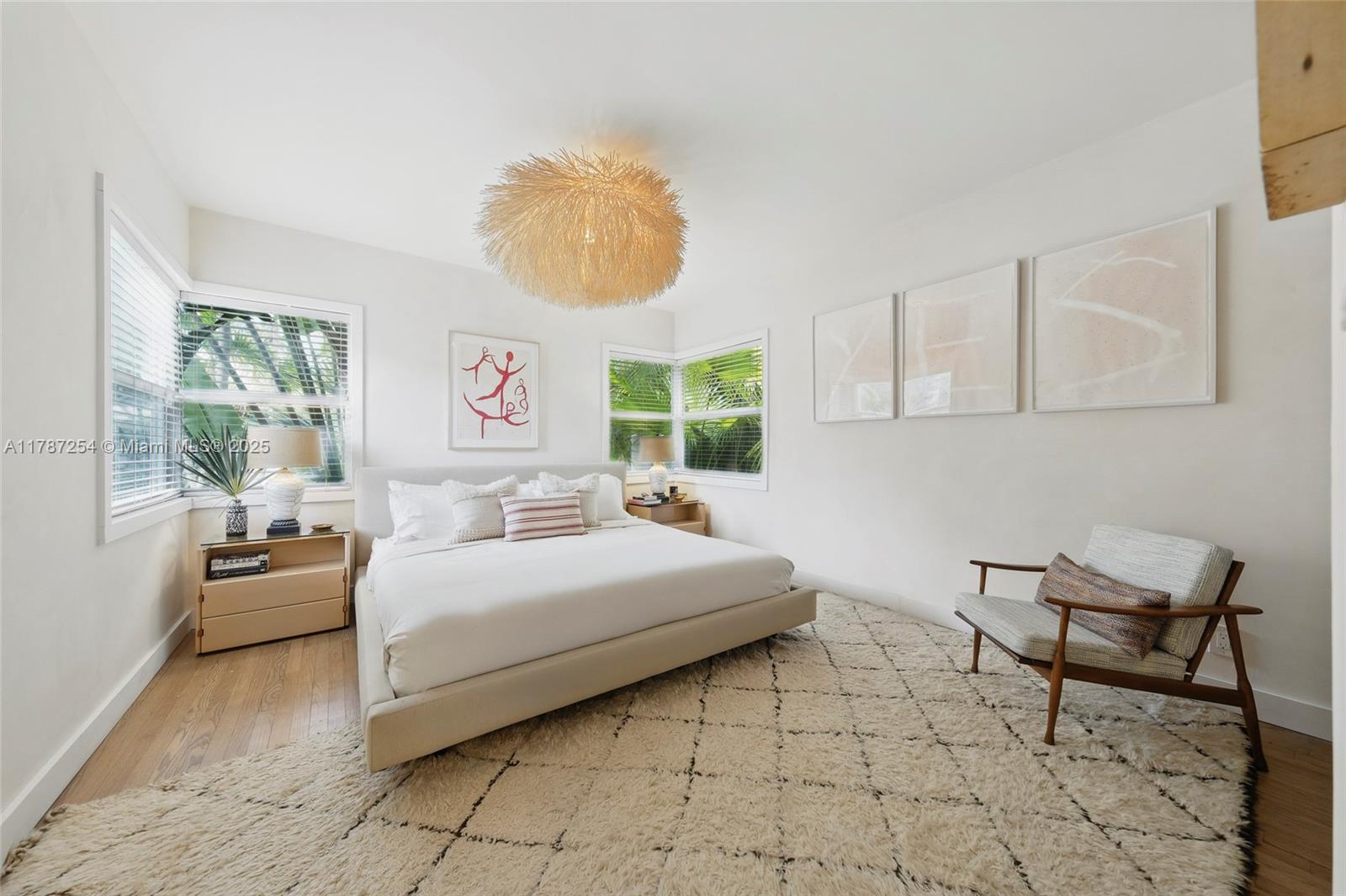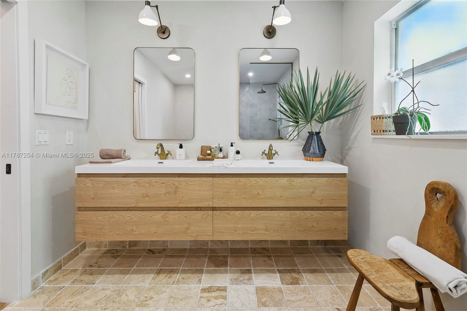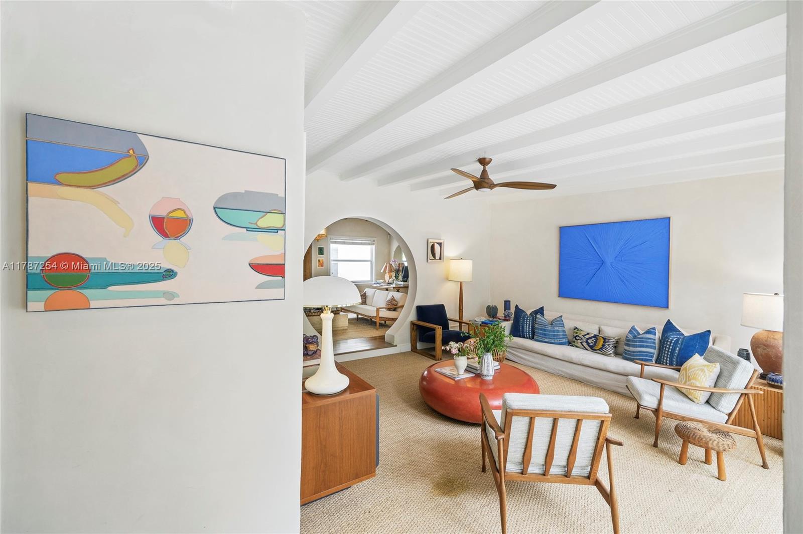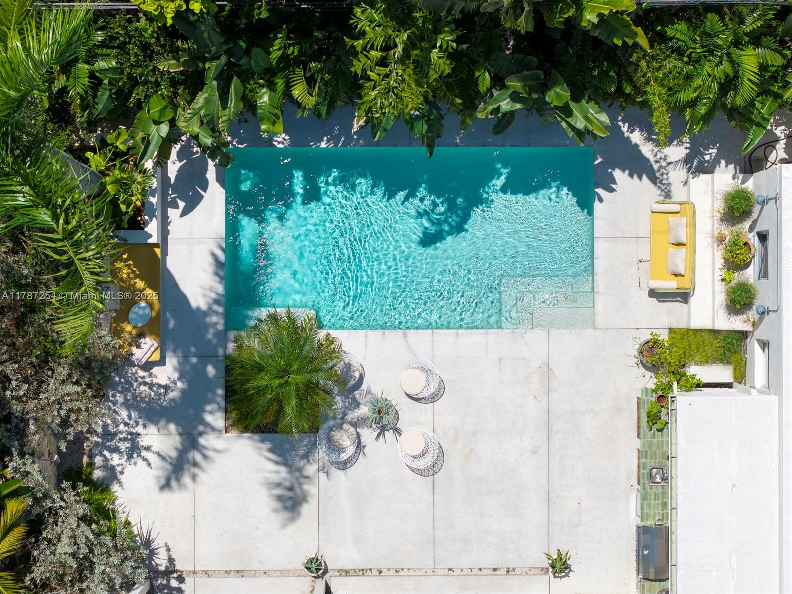 Effortless elegance in Belle Meade.This 4-bedroom pool home--plus garage--on a large lot has been meticulously renovated by Anastasia Koutsioukis, the co-founder and creative visionary behind Miami's beloved Mandolin Bistro. Interiors showcase impact windows, original wood floors and striking architectural details. Living area features a carved stone fireplace and vaulted ceiling. A keyhole-shaped archway frames a stunning view from the front door to the pool. Primary suite boasts corner windows, generous closets and ensuite bath with rainfall shower. Lush outdoor space with dining pergola and summer kitchen blends Miami tropical modern and Mediterranean chic. Belle Meade is a gated bayfront community known for quiet tree-lined streets. Create lasting memories in this extraordinary home!
