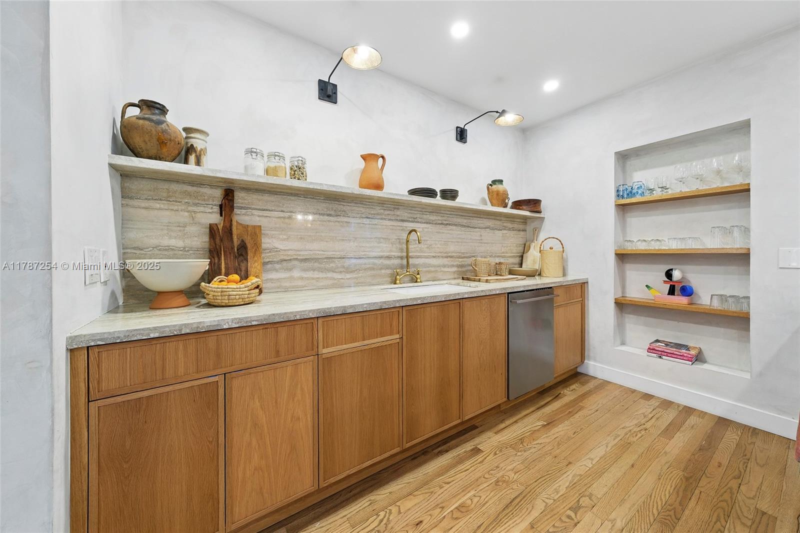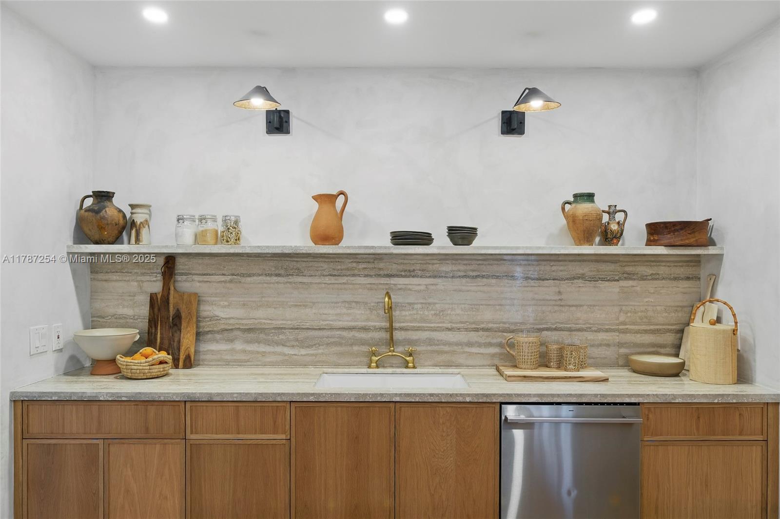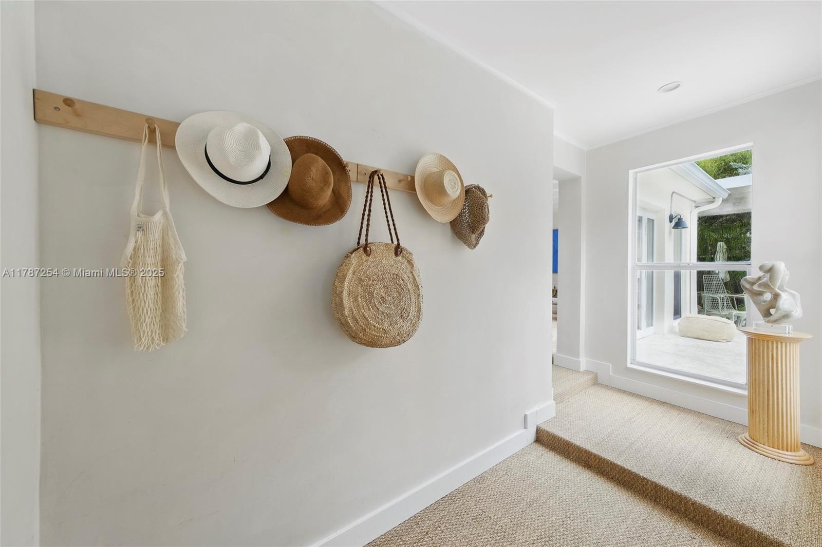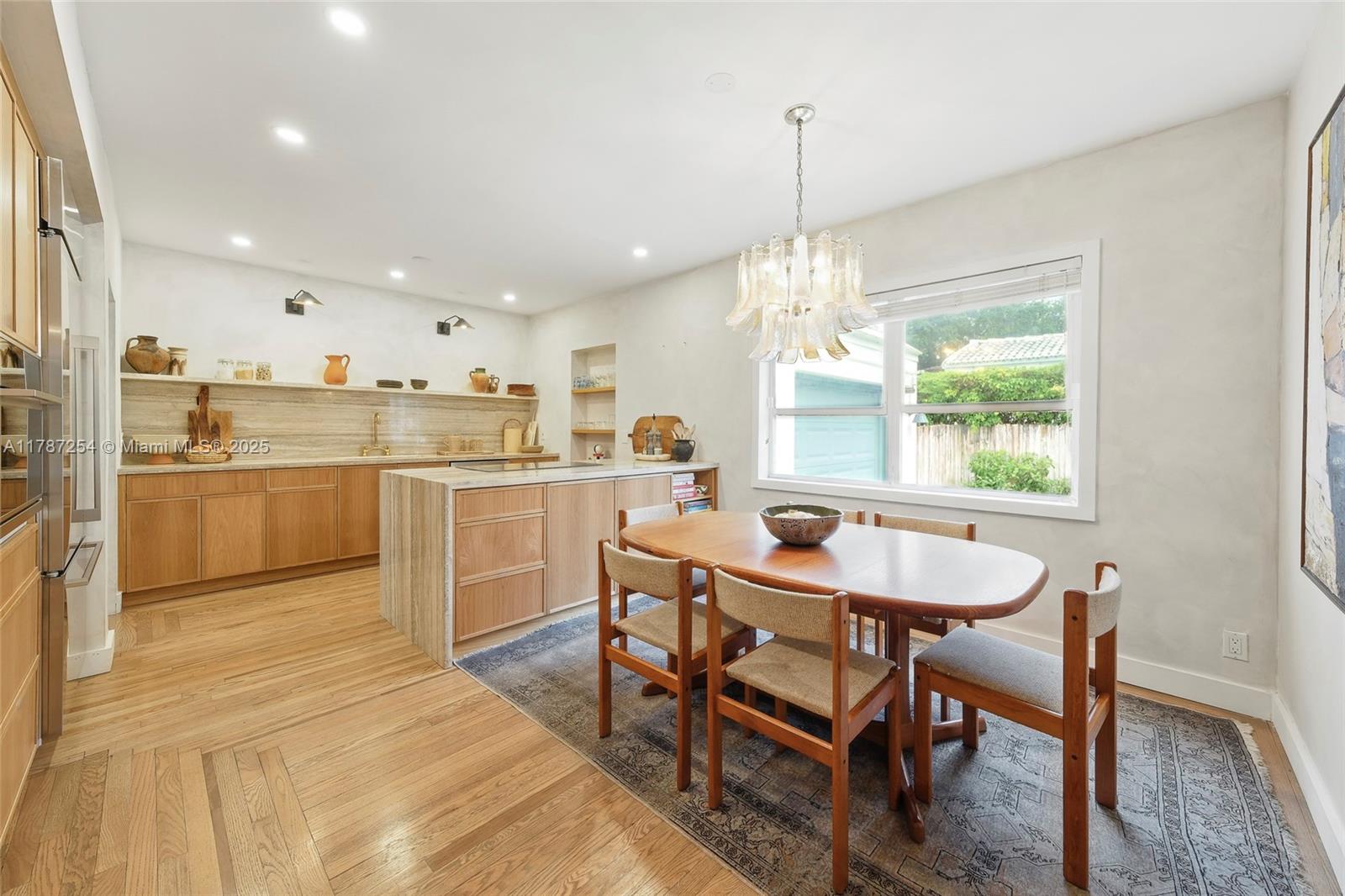 Effortless elegance in Belle Meade.This 4-bedroom pool home--plus garage--on a large lot has been meticulously renovated by Anastasia Koutsioukis, the co-founder and creative visionary behind Miami's beloved Mandolin Bistro. Interiors showcase impact windows, original wood floors and striking architectural details. Living area features a carved stone fireplace and vaulted ceiling. A keyhole-shaped archway frames a stunning view from the front door to the pool. Primary suite boasts corner windows, generous closets and ensuite bath with rainfall shower. Lush outdoor space with dining pergola and summer kitchen blends Miami tropical modern and Mediterranean chic. Belle Meade is a gated bayfront community known for quiet tree-lined streets. Create lasting memories in this extraordinary home!
