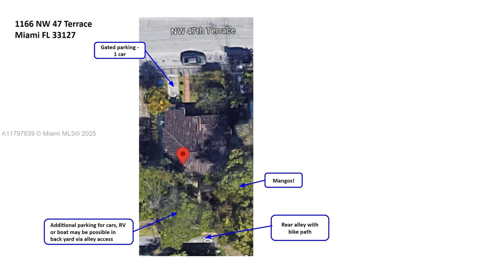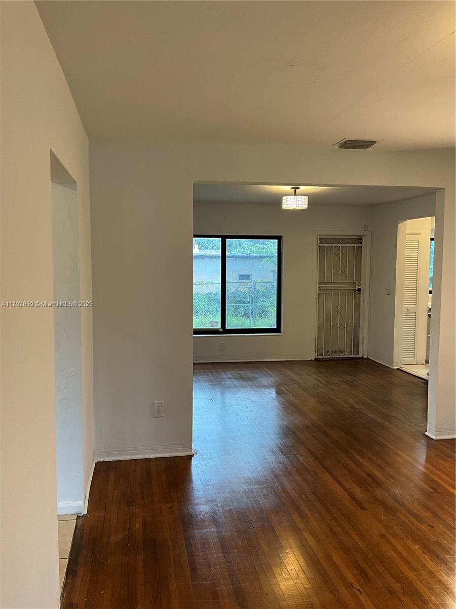 Large 1,632+ SF 4 bed 2 bath single family home. Vacant & available now. Please note that the pictures do not show the following upgrades to be completed in May 2025 - hardwood floors professionally refinished, new exterior paint (neutral light gray w/ medium gray trim), bathroom updates. Screened in porch, dining room & laundry room w/ storage. Central AC, wood & tile floors, ceiling fans & hurricane impact windows. Plenty of closet space! One bedroom has a separate entrance. Fenced lot w/ front & back yards, mango tree & gated driveway with parking for 1 car. Backyard has possible room for a deck, small pool, additional parking, RVs or a boat with alley access. Tented for termites in 2023. Elementary & middle schools are across the street. Property is in an Opportunity Zone.