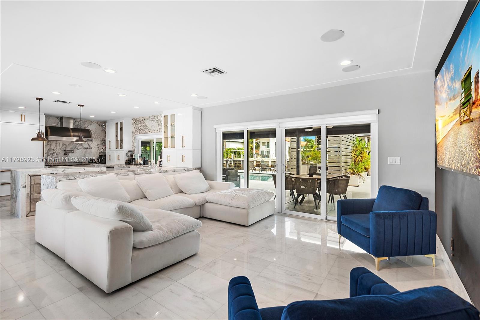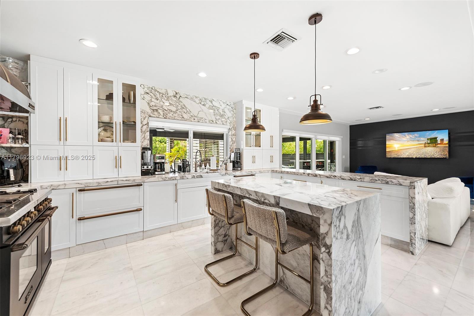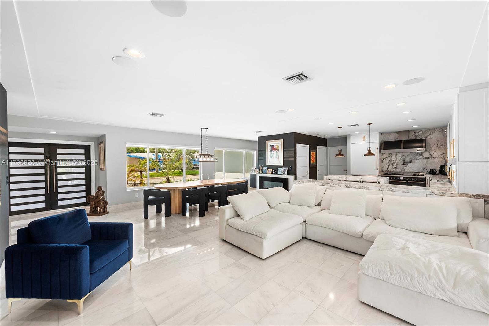 Major Price Reduction -- Move-In Ready Waterfront Gem! Experience luxury living in this fully renovated modern masterpiece with over $350,000 in upgrades. Located in the prestigious Eastern Shores community, this home features 60 feet of prime waterfront direct ocean access with no fixed bridges. Perfectly situated between Aventura, Sunny Isles, and Bal Harbour, this spacious 3-bedroom, 3-bathroom residence spans over 3,200 total square feet and is adorned with high-end designer finishes. The chef's kitchen is outfitted with top-of-the-line appliances and stunning Calacatta marble countertops. Enjoy unmatched living with floor-to-ceiling windows showcasing panoramic water views throughout and a custom summer kitchen, BBQ, wine fridge, and plenty of space to entertain by the water.