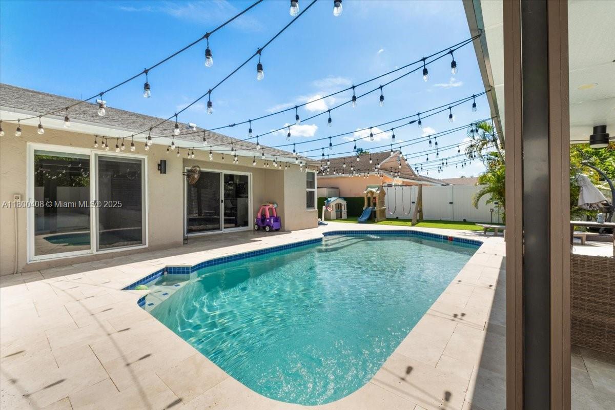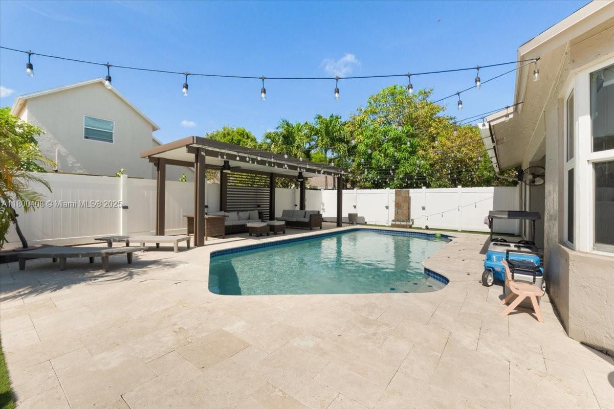MOVE IN READY! This beautifully updated home is located in one of the most desirable communities in Cooper City, known for its top-rated schools, strong sense of community, and peaceful, family-friendly atmosphere. The home features a modern, open layout with vaulted ceilings, impact windows, updated ceramic floors, and a sleek kitchen with SS appliances. A converted garage offers a versatile fourth bedroom or flex space, ideal for guests, a home office, or playroom. Private backyard, complete with a sparkling pool and covered gazebo perfect for entertaining, relaxing, or enjoying Florida sunshine. The Colony at Stirling, residents enjoy quiet tree-lined streets, proximity to parks, sports fields, walking trails, and easy access to shopping, dining, and major highways.