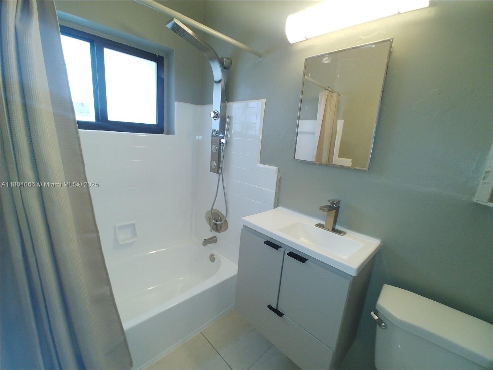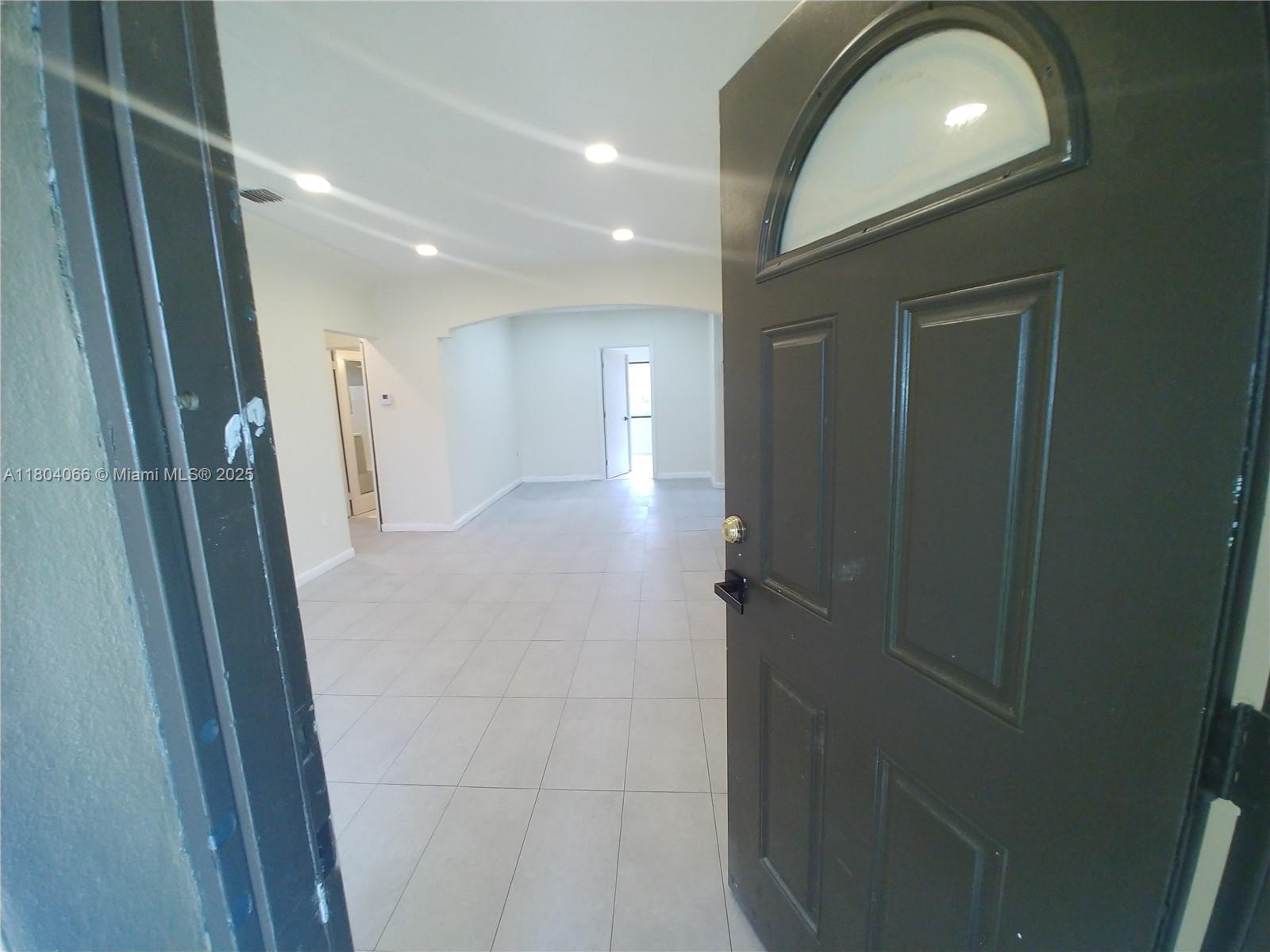 Renovated 3 bedroom 1 bath w/ rare attached garage! Tenant occupied at $3,231, but tenant is moving June 30, 2025. New hurricane windows, tile roof, flooring, custom kitchen w/ stainless appliances & quartz countertops, & under cabinet lighting. Updated bath w/ shower panel, large primary bedroom w/ windows on three sides & exit to backyard. Recessed lights & ceiling fans. Garage includes a laundry area, room for Tesla charger, 1 car + extra storage. Additional parking for 1 car in the driveway. Backyard is fenced & has room for more parking, deck, pool, or addition. Opportunity Zone property.