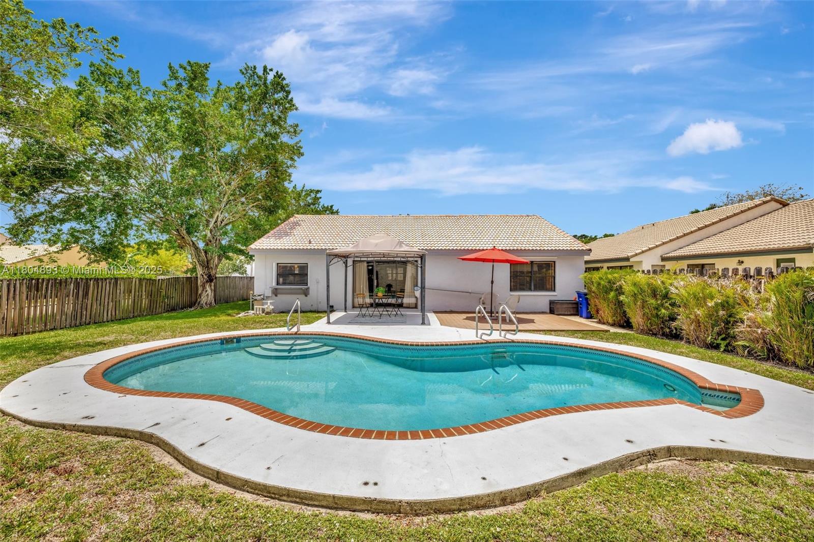 Your future home awaits! Welcome to this charming corner lot home in the highly sought-after Rock Creek community in Cooper City; known for its fantastic schools. This home features a beautifully renovated kitchen with granite countertops, pantry, tile backsplash & kitchen window overlooking the pool & patio. Enjoy high ceilings & a spacious living & dining areas, along with a renovated 2nd bath. Flooring includes terracotta brick & laminate throughout. Step outside to a private pool & great backyard with a covered space, perfect for relaxing & entertaining. Additional features include new washer, paver driveway, Ring camera, hurricane panels, impact front door & new impact garage doors, cement slab perfect for a shed. Seller to give concession for paint. A place to truly feel at home!