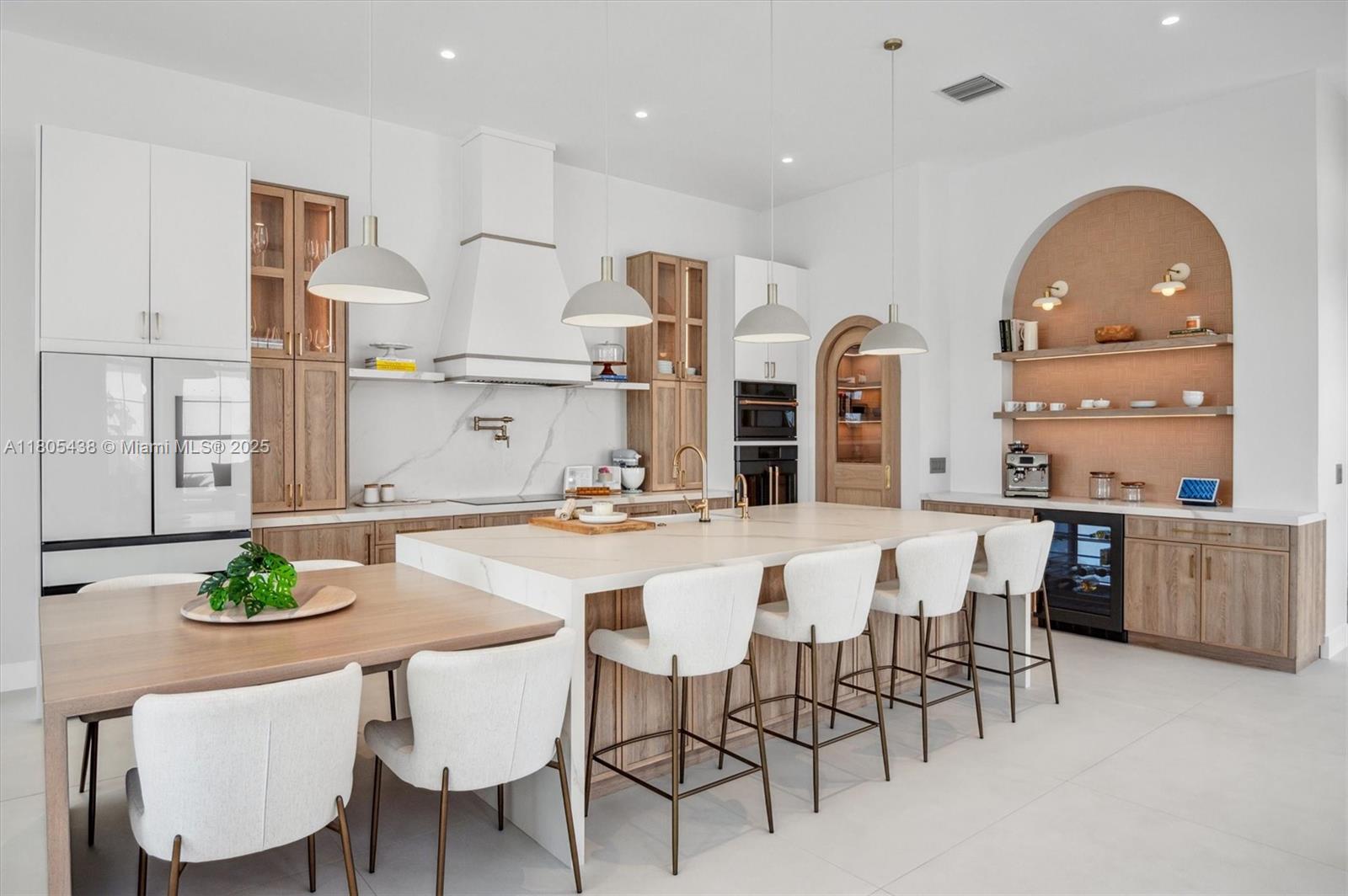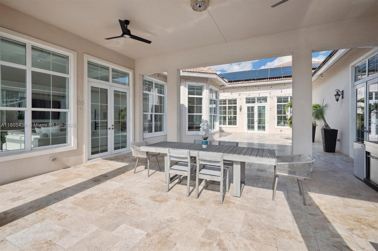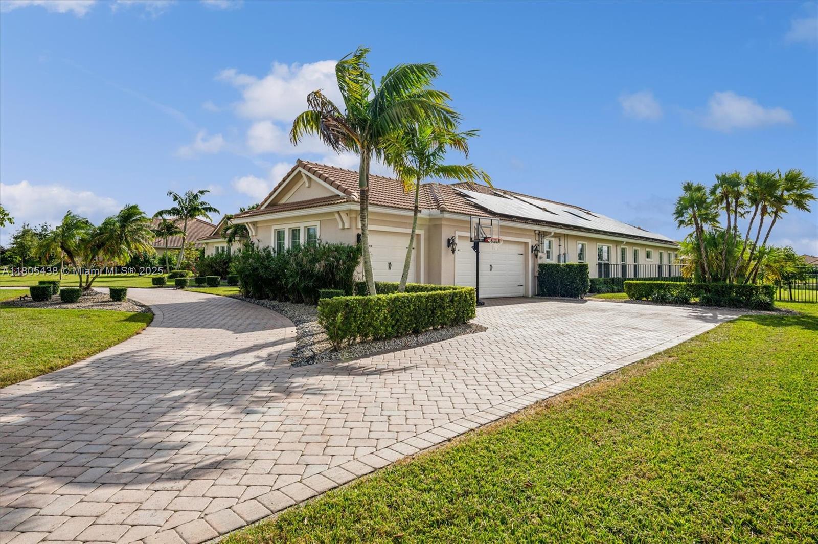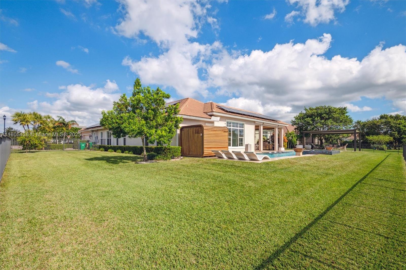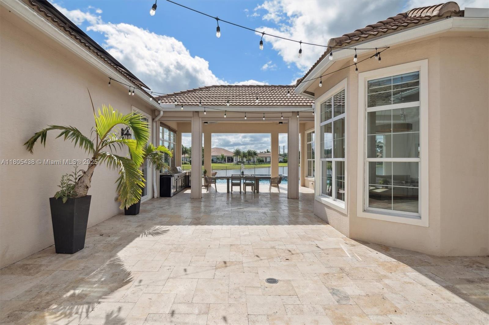 Luxury waterfront living in Sterling Ranch! This upgraded home features custom wood cabinets, porcelain floors, and quartz countertops. Enjoy a 50x16 pool overlooking the lagoon, an outdoor kitchen with electric shutters for privacy and wind protection, a private sauna, and a separate pergola for relaxing or entertaining. Spacious 3-car garage and stunning views of the Hard Rock Guitar Hotel complete this one-of-a-kind property.
