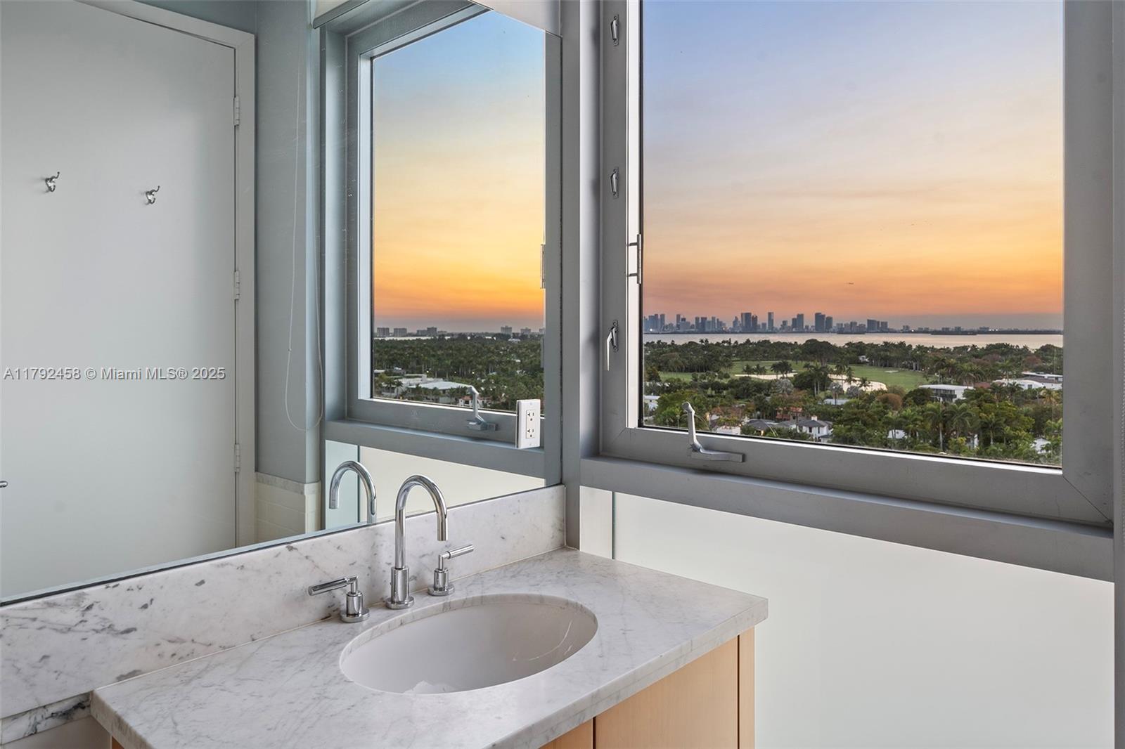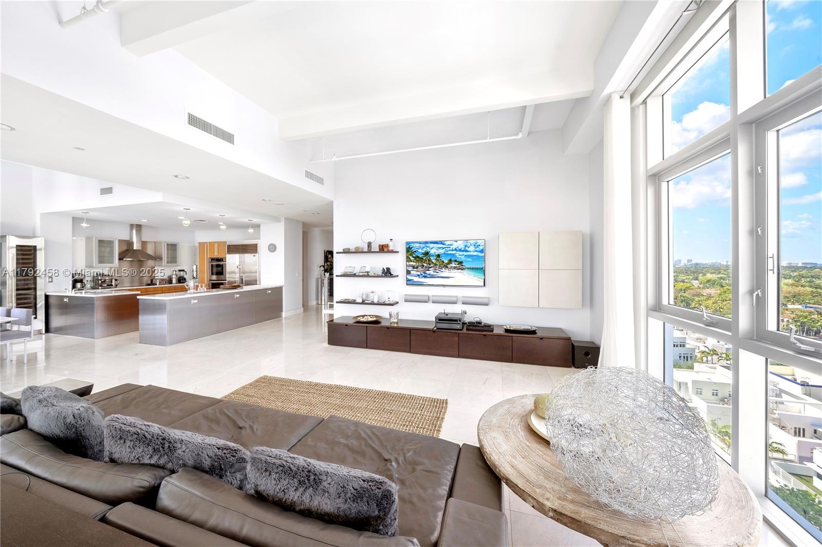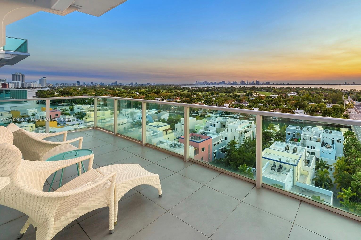 Undeniably the best residence at Aqua, the 1001 is a stunning, sun-lit lower penthouse where modern luxury meets breathtaking views. 3,321 SF of elegant living space plus 420 SF of wrap-around terraces. This 3-bedroom and 3.5-bathroom residence boasts soaring 14-foot ceilings, expansive walls of glass, and an open, airy ambiance that invites natural light to fill every corner. Enjoy sweeping views of the iconic Miami skyline, ocean, and Intracoastal from every room. Featuring bright and extremely spacious living areas, marble floors, and sophisticated furnishings. Three parking spots. Two large dogs are allowed. Aqua Allison Island is an exclusive 8.5-acre private island community with world-class amenities set amidst lush gardens. In the heart of Miami Beach, steps away from the beach.