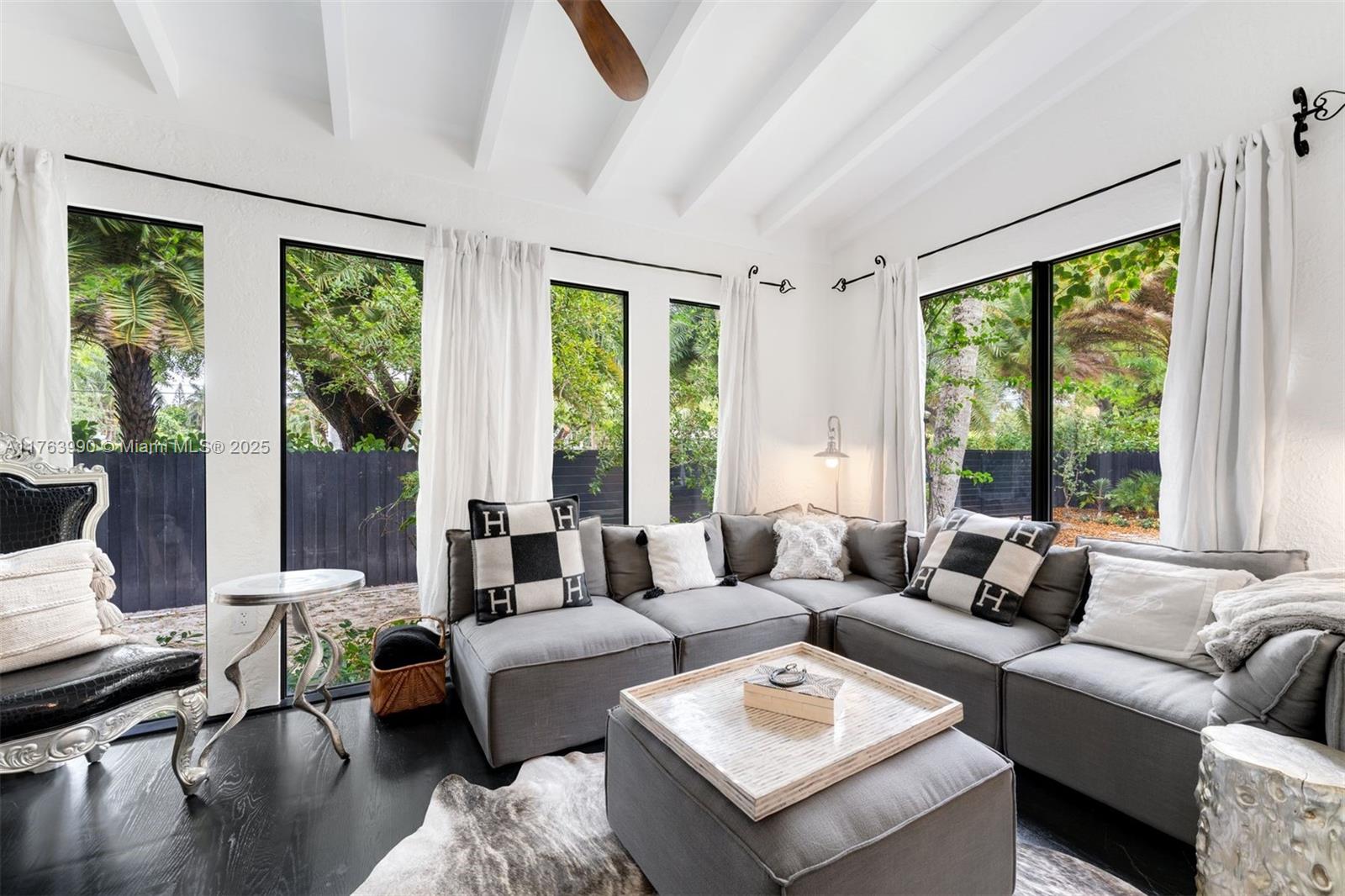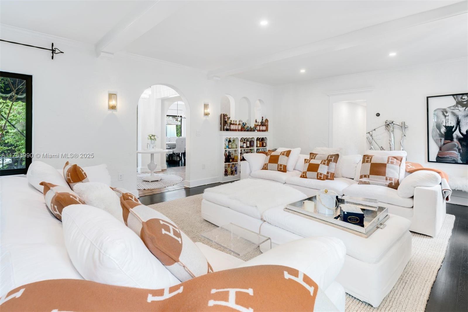 Experience luxury living in this exquisitely remodeled Mediterranean home nestled in the heart of Miami Beach. Boasting 5 beds/5.5 baths, including separate guesthouse w/ full bath, this residence offers unparalleled comfort & sophistication. Indulge your culinary desires in the chef's kitchen, complete w/ LaCornue range & hood combo, double ovens, & SubZero fridge. Enjoy Al Fresco dining or take a dip in the heated saltwater pool w/ spa feature in your backyard oasis. 1st-floor guest room w/ private side entrance ensures privacy for visitors. Unwind in master bath's solid copper soaking tub & dual shower heads. Additional features: dual-zone Nest A/C, alarm system, 2 wood-burning fireplaces, & custom California Closets. This stunning residence captures the essence of old Miami Beach charm