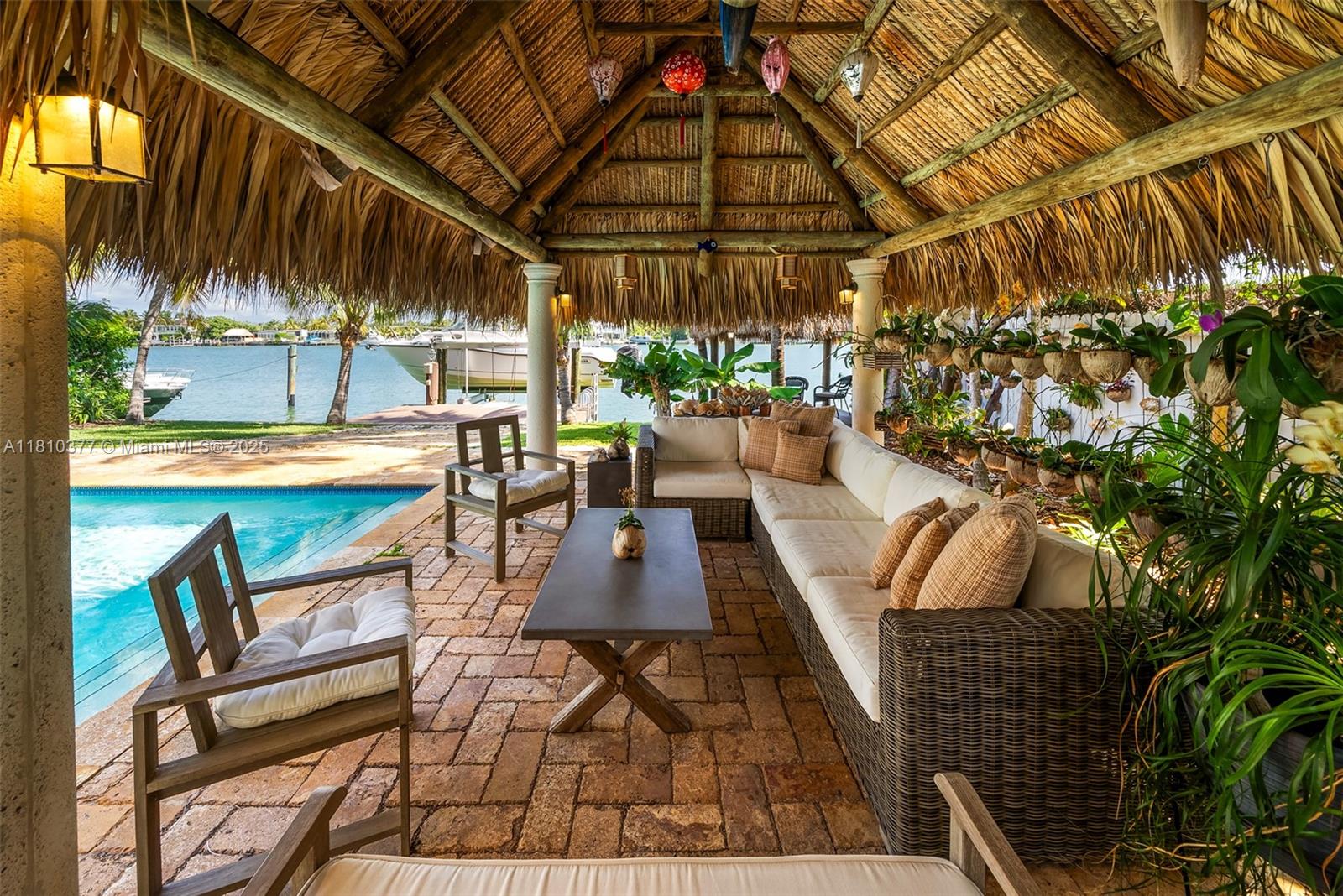 Mediterranean charm meets modern bay front living. Stunning 2-story waterfront home, rebuilt in 2010 and nestled in the exclusive, guard-gated island of Normandy Shores in Miami Beach. The grand entry foyer opens to 4,500 SF of refined living space, on a 11,000 SF lot with 65 FT of serene water frontage & unobstructed views of Biscayne Bay. The home features soaring ceilings, state-of-the-art chef kitchen, marble & Brazilian wood floors, and onyx bathrooms. The spacious, sun-filled primary suite, on the second floor, offers a private veranda and panoramic views. Step outside to your tropical resort-style pool, large dock w/ boat lift, and two tiki huts for extra island vibes. Enjoy community's amenities: 18-hole golf, driving range, clubhouse, tennis, basketball, and children's playground.