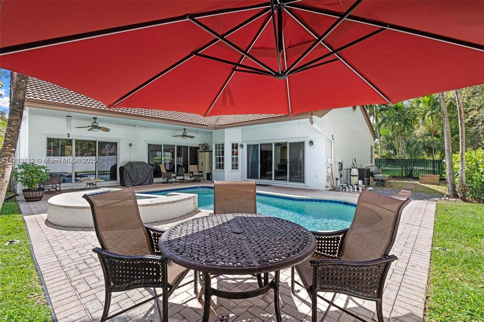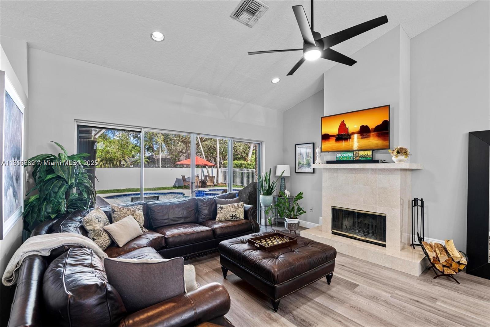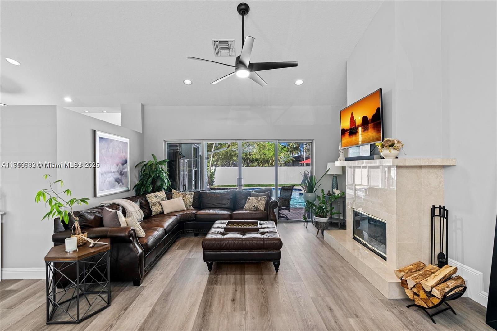 Beautifully updated 4-bed, 2.5-bath pool home tucked away in the gated East Landing section of Rock Creek. Located on a quiet cul-de-sac, this immaculate residence blends elegance and comfort. Featuring volume ceilings, new flooring, marble fireplace and fresh paint throughout. The remodeled kitchen shines with quartz countertops, custom cabinetry, new appliances + washer/dryer. The split floor plan offers a private primary suite with direct access to the backyard oasis--complete with a heated saltwater pool, spa, new pump & lush landscaping. Full hurricane shutter protection and roof in great condition. Enjoy peaceful outdoor living and entertaining year-round. Zoned for top-rated schools, close to shopping, dining, and parks. This centrally located, move-in ready gem is truly a rare find!