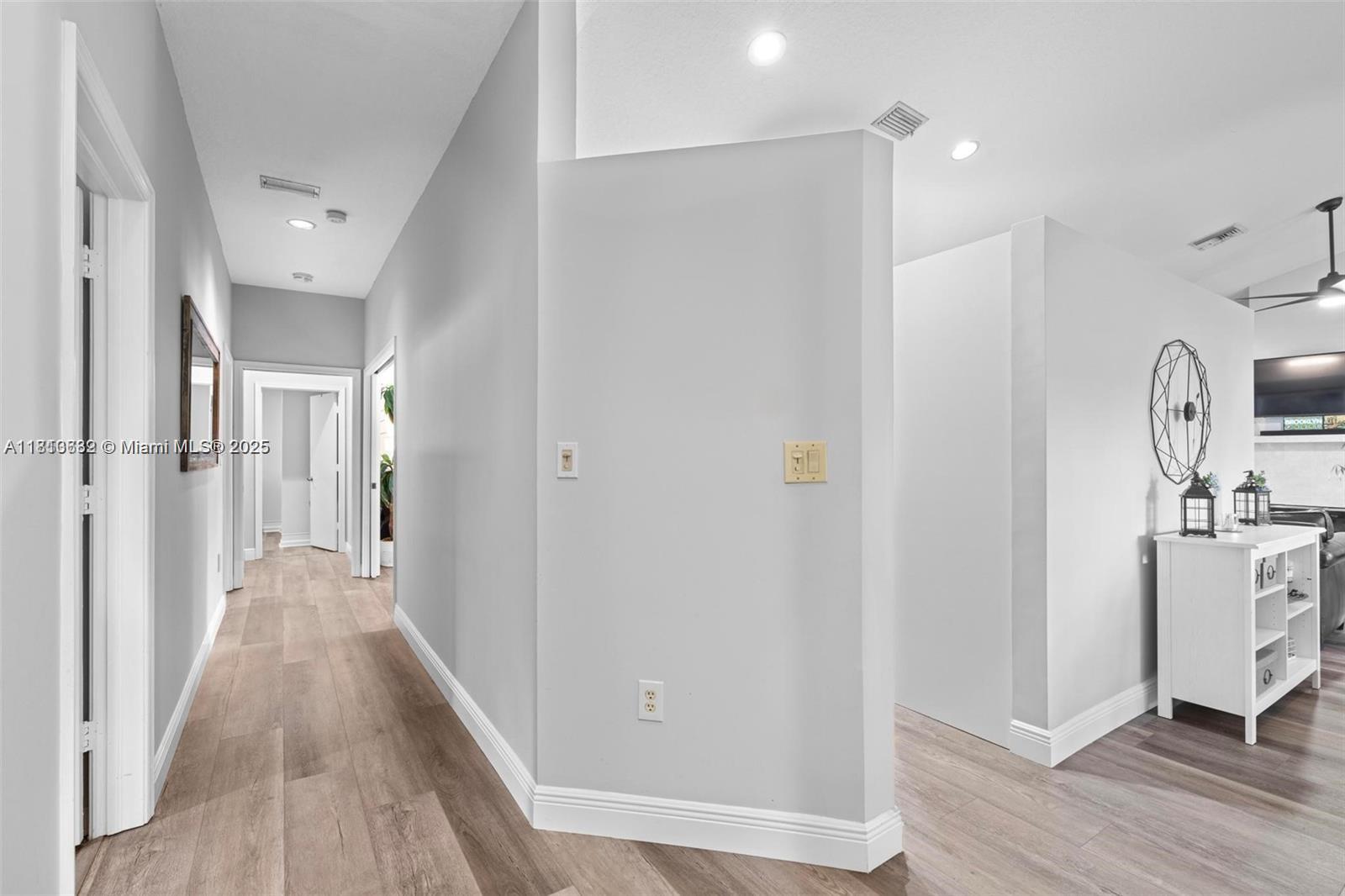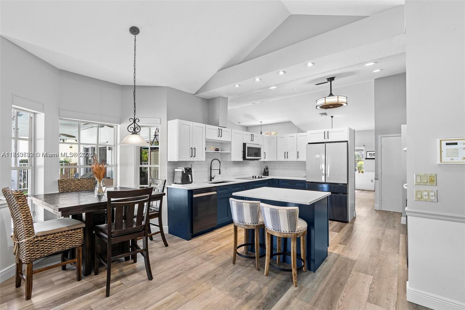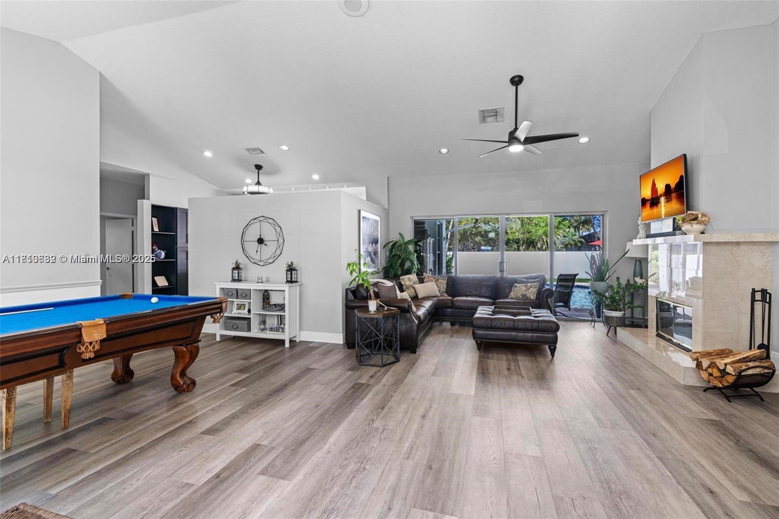 Beautifully updated 4-bed, 2.5-bath pool home tucked away in the gated East Landing section of Rock Creek. Located on a quiet cul-de-sac, this immaculate residence blends elegance and comfort. Featuring volume ceilings, new flooring, marble fireplace and fresh paint throughout. The remodeled kitchen shines with quartz countertops, custom cabinetry, new appliances + washer/dryer. The split floor plan offers a private primary suite with direct access to the backyard oasis--complete with a heated saltwater pool, spa, new pump & lush landscaping. Full hurricane shutter protection and roof in great condition. Enjoy peaceful outdoor living and entertaining year-round. Zoned for top-rated schools, close to shopping, dining, and parks. This centrally located, move-in ready gem is truly a rare find!