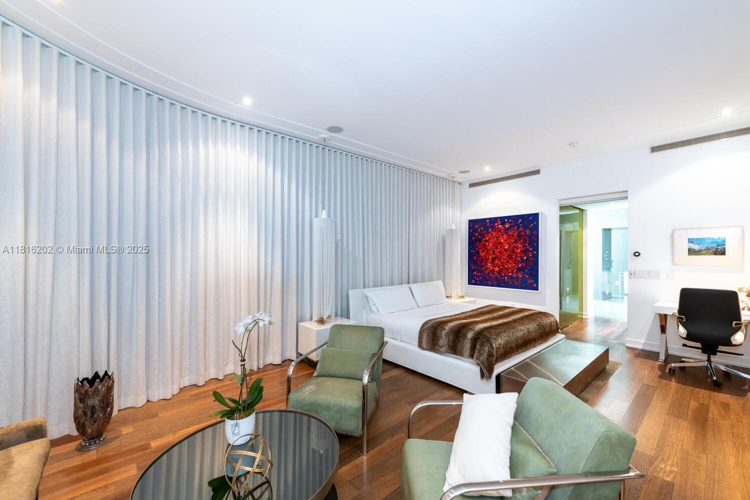 Unique opportunity to rent Iconic Art Deco "Casa Sinatra", history packed home originally built by Robert E. Collins. This used to be the house Frank Sinatra, Elvis Presley and many more came to unwind after their concerts at the Fontainebleau Hotel. 14 ft hedges and 7 foot gates approved by the city offer ultimate privacy, deed access to Collins Canal (fixed bridges). Home consists of 4 bedrooms 4.5 bathrooms amazing coral pool, extra-large Master Bedroom with exit to the pool and opulent bathroom, 2 bedrooms on the opposite wing with a rooftop balcony overlooking Miami Beach, 4th bedroom has a separate entrance (perfect for older children or in-laws), office area overlooking pool.