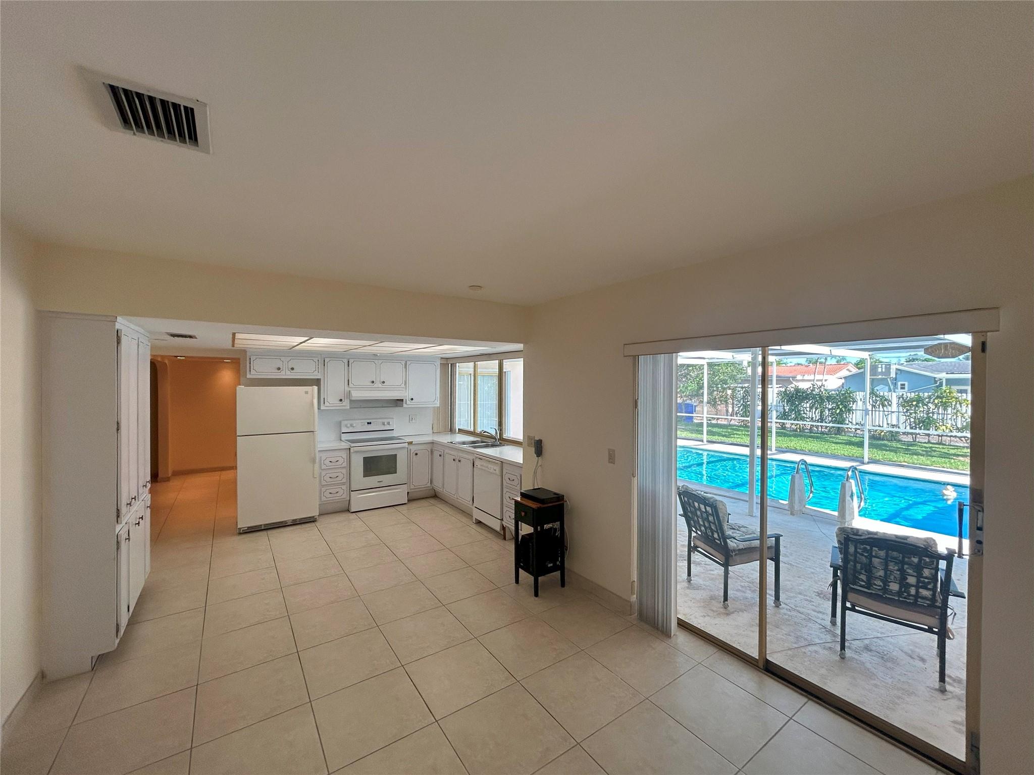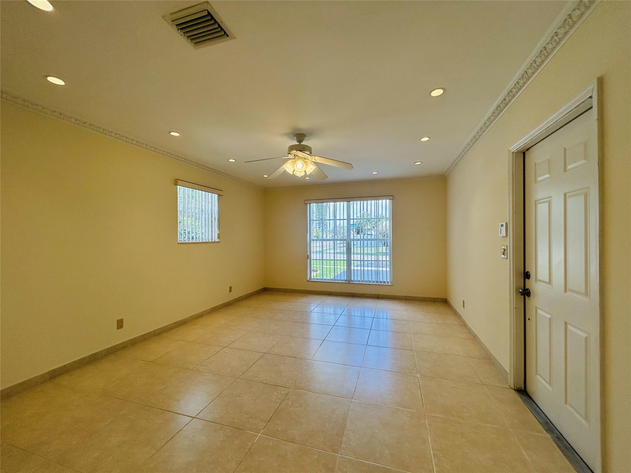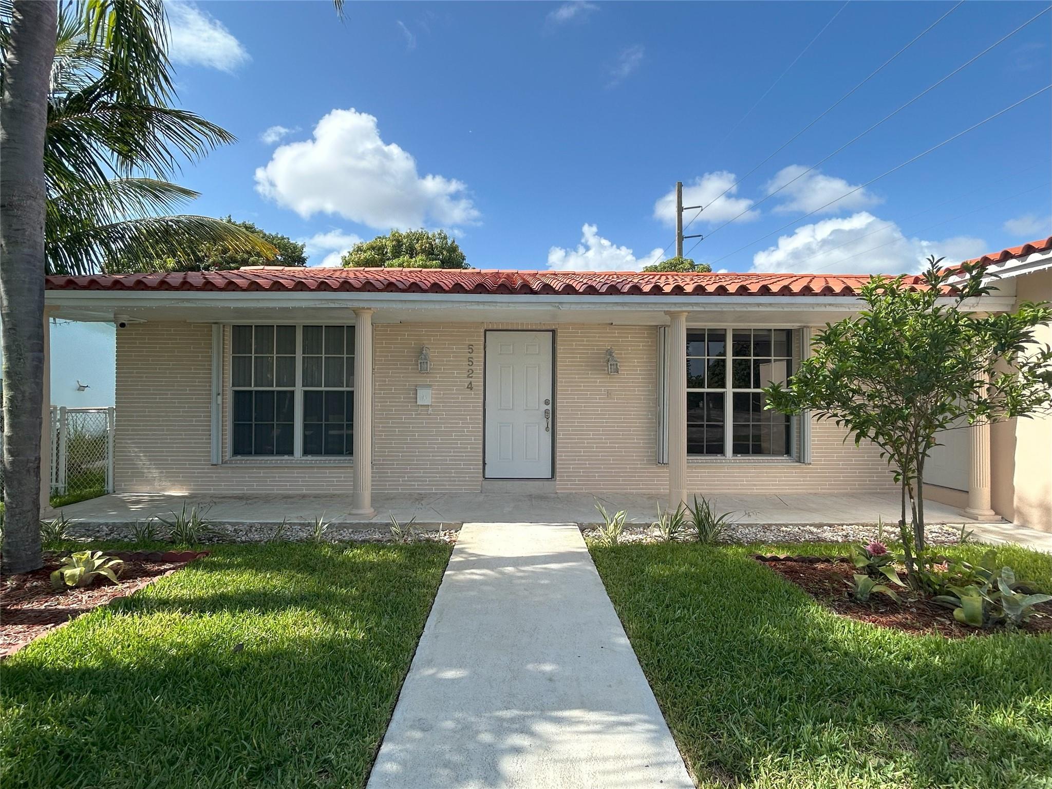 Elegant Mediterranean-Style home in Hollywood Hills!This gorgeous 4-bedroom home features a spacious 4th large room with its own private street entrance--perfect for a home office, gym, or guest suite. Enjoy 2 elegantly fully remodeled bathrooms with timeless finishes, a cozy living room, formal dining, and a bright family room adjacent to the kitchen with views of your sparkling pool and lush backyard. Large pantry next to laundry room! Back alley, newly painted inside and outside, all tile floors, full hurricane protection with accordion shutters, resurfaced pool, new sprinkler system, new sod, white metal fence, tropical landscaping with palm trees and two mango trees, plus a storage shed. Equipped with video surveillance & security alarms. Great location!