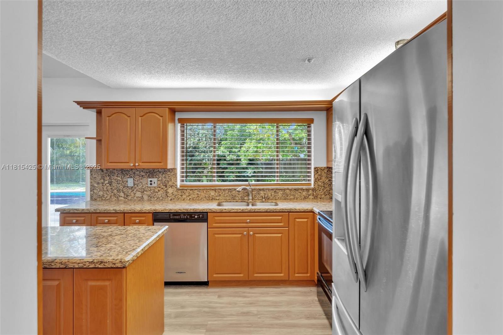PRIME LOCATION! This beautiful 3-bedroom, 2.5-bath pool home is located in the highly desirable Timberlake community in Cooper City. Situated on a quiet street with no traffic--perfect for families! Features include an upgraded kitchen with granite countertops, brand new flooring, fresh paint, a cozy fireplace, spacious yard, 2-car garage, and a large shed for storage. Enjoy a backyard paradise with a pool enhanced by river rock accents. The extra-large primary bedroom is upstairs. Located in an A+ school district.