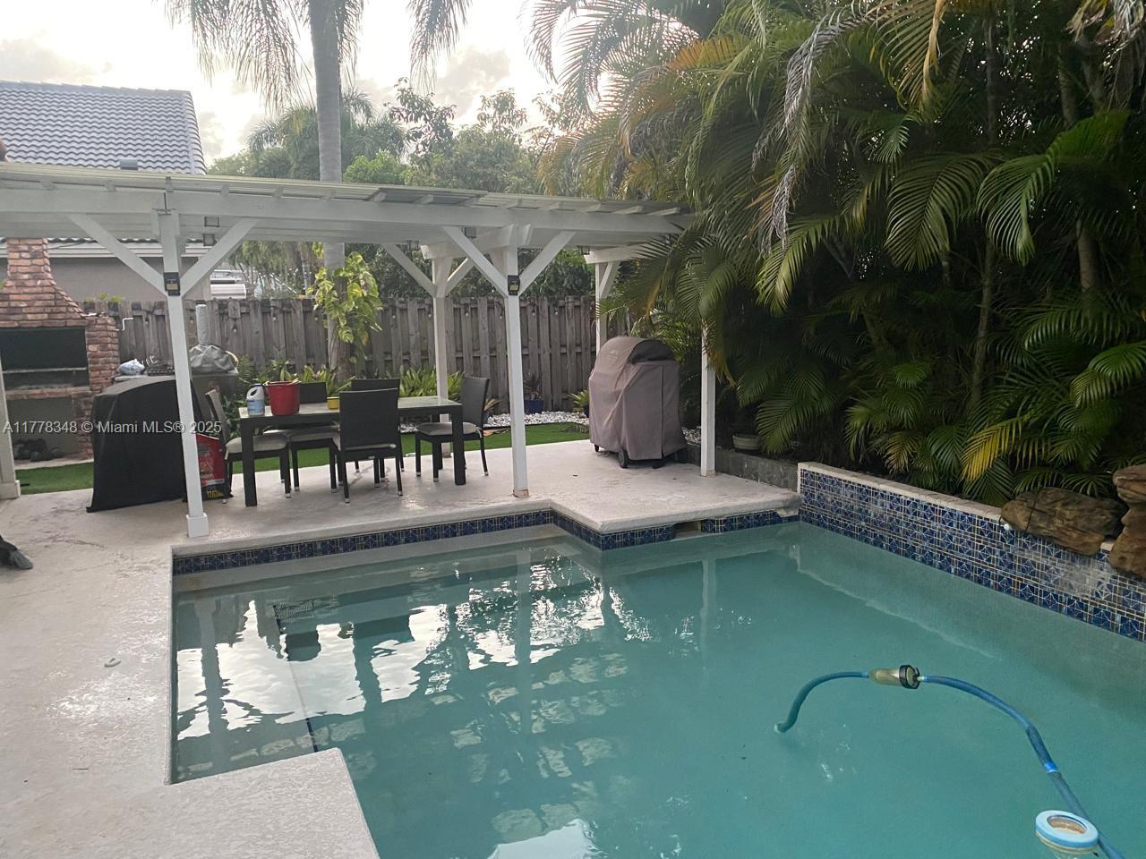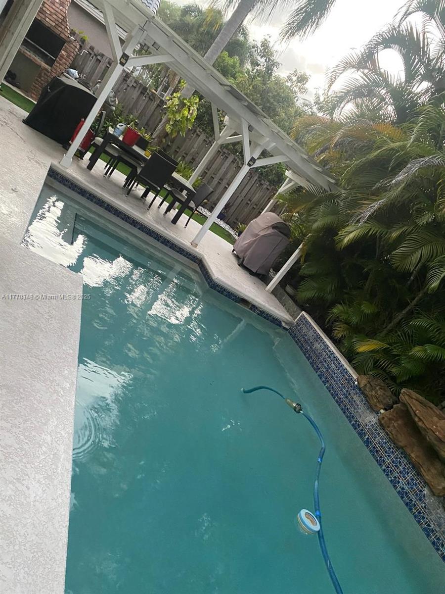 Beautiful 4 bedroom Consul model in Embassy Place. You'll flip over the magnificent pool-patio area with wood pergola, stone waterfall and lush tropical landscaping. The island kitchen features wood cabinets, granite counter tops w/ tumbled marble backsp lash, under cabinet lighting and all stainless steel appliances. The house is protected from storms with accordion type hurricane shutters.