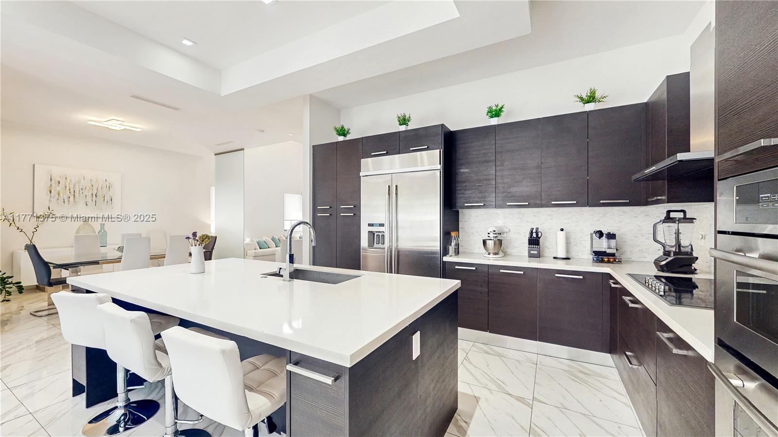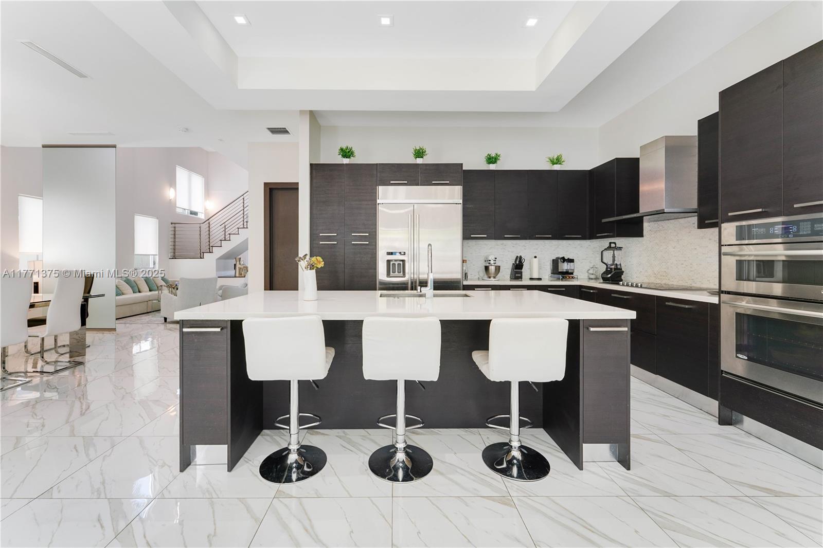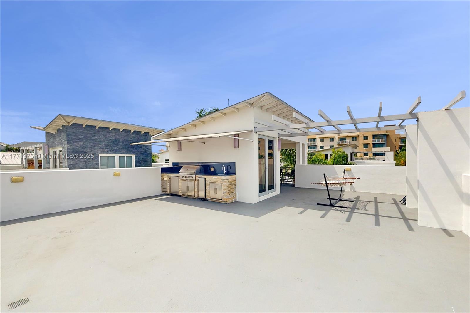 Step into sophistication with this stunning 4-bed, 4.5-bath estate in OASIS. Designed for modern family life, boasting double-height ceilings, a vast Living, family, and formal dining area plus a versatile EXTRA ROOM for a 5th BR, home office, gym, or playroom. Decompress in your primary suite with private terrace, soaking tub and grand w/in closet. Each bedroom features a private ensuite and plenty closet space. The gourmet kitchen flows into open living spaces, incorporating the pool and patio seamlessly for entertaining. Enjoy a rooftop OASIS with a jacuzzi, sun deck, summer kitchen, and covered patio. The laundry room is on BR level. Parks 5 cars. This gated comm. offers 24/7 security, a pool, and guest parking. This home is the ultimate blend of comfort, elegance, and convenience!
