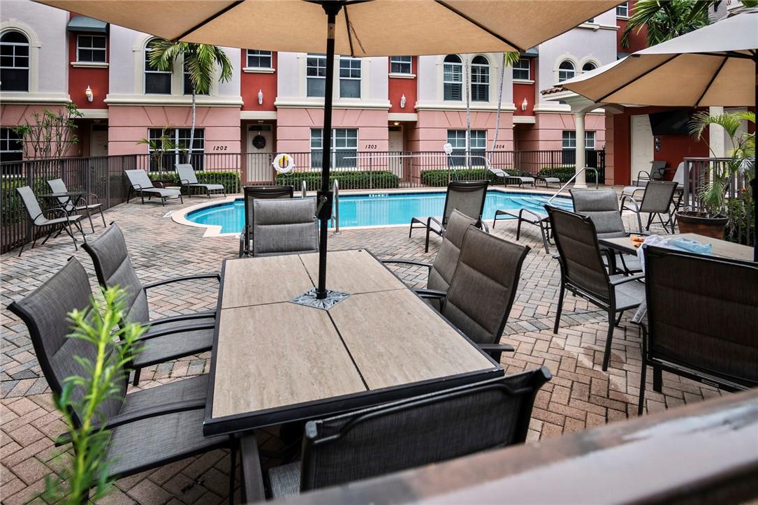 LARGEST UNIT IN THE COMPLEX and THE BEST LOCATION with DIRECT POOL and COURTYARD/GARDEN VIEWS! Spacious 3 bed, 3 1/2 bath four level Mediterranean Style townhouse w/ 2 car garage! This unit is light, bright, open and spacious w/ high ceilings, unique architectural designs, tile flooring in main living areas, huge amounts of closet space, storage space, interior laundry and lower level office/den/third bedroom with full bath. Entire third floor is primary suite! Kitchen features wood cabinets, ss appliances, granite counters, recessed lighting and bar seating. Amazing entertaining & BBQ space on the huge rooftop terrace plus terraces off the primary bedroom suite. Pet friendly gated complex w/ pool & bbq area. Close to everything. SELLER FINANCING AVAILABLE. No assessments & 2023 New Roof.