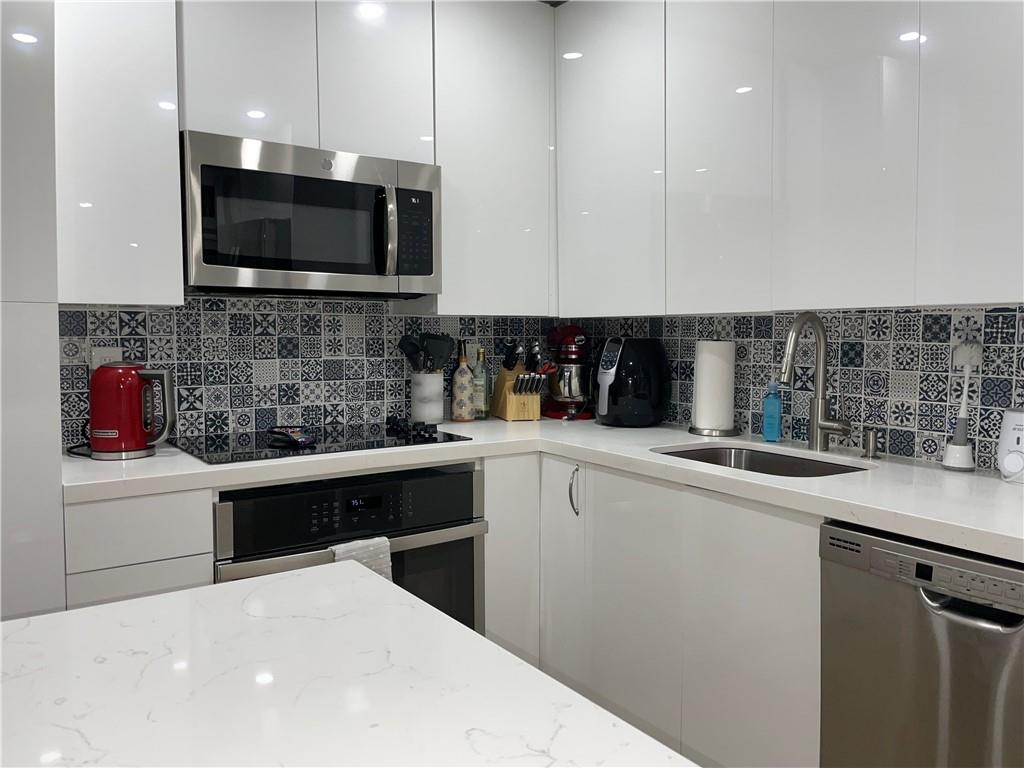 BAY COLONY CLUB GEM!!! This stunning fully REMODELED condo offers 1200 sq ft of living space with 2 bedrooms and 2 bathrooms. This inviting open concept design, gives you ample space and comfort. Plenty of natural light all around. Stunning kitchen /dinning area to entertain and or enjoy everday. Beautiful enclosed terrace with impact windows floor to ceiling adds character and extra room. Spacious storage and washer and dryer in unit. This gated community, right on the intercoastal is a BOATERS DREAM with docking available and direct ocean access. Blocks away from the beach and great shopping and dinning. Resort style amenities include four pools, fitness centers, pickleball courts, tennis courts and grilling areas.