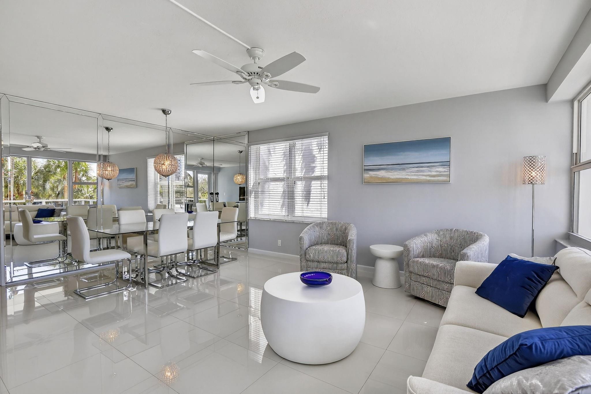 JUST REDUCED. A MUST SEE, THIS SPECIAL LARGE END, S E CORNER UNIT, TRULY IN MINT CONDITION. THIS APARTMENT, OFFERS AN EXTRA WINDOW IN DINING AREA, WHICH OPENS INTO SPACIOUS, BRIGHT LIVING ROOM, OVERLOOKING WELL MAINTAINED GARDEN GROUNDS. NEW OPEN GLASS BALCONYS HAVE BEEN ESTALLED. UNIT OFFERS CUSTOM ATTRACTIVE TILE FLOORING, MODERN EAT IN KITCHEN, TWO SPACIOUS BEDROOMS. HUGE WALK-IN CLOSET, WITH PLENTY OF STORAGE. NOTE: BOTH BATHS, HAVE INSATLLED WALK IN SHOWERS, NOT USUALLY AVAILABLE. THIS APARTMENT IS IN TOP CONDITION AND IS MOVE IN READY. THIS BUILDING HAS INSTALLED, AS AN ADDED FEATURE, AIR-CONDITIONED HALLWAYS, TRULY AN OWNER'S COMFORT FEATURE. BLDG'S BEACH AREA LOCATION OFFERS: WALK TO BEACH, BANKS, POST OFFICE, SHOPS, RESTAURANTS AND MEDICAL OFFICES. TRULY AN EXECELLENT VALUE.