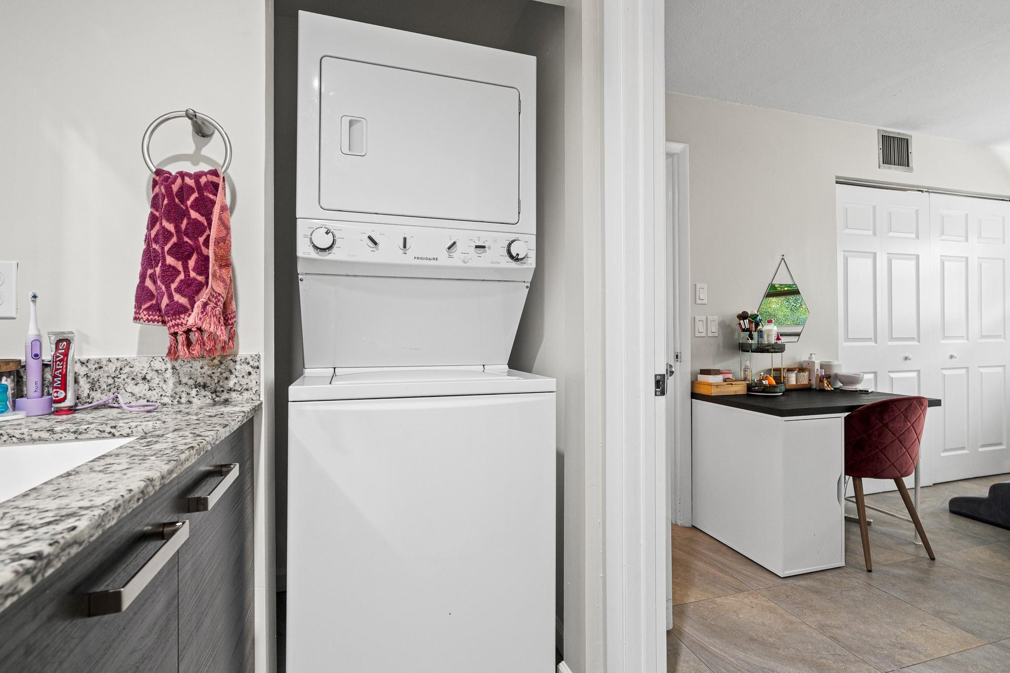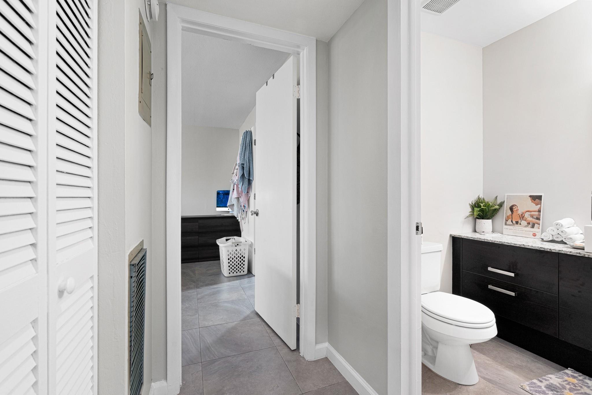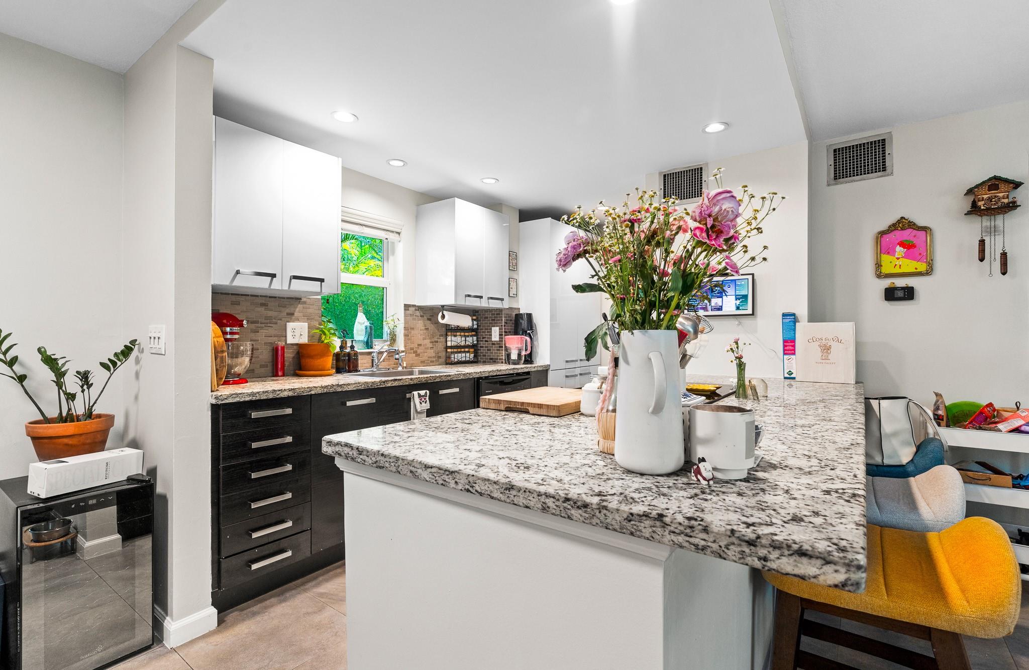 Take a look at this renovated, waterfront, 1 bed/1.5 bath condo which overlooks the community pool. This 2nd floor unit features newer stainless steel appliances, cabinetry and light fixtures, ample storage, granite countertops, kitchen island, washer/dryer, impact windows and door, 1 parking space and guest spots. AC 2023. This 'pet friendly' complex has a barbecuing area and sitting area for relaxation. Bring your paddle board, canoe or kayak and cruise the canals. This is a peaceful complex blocks away from 5 Points, so close to Publix, restaurants and entertainment and nightlife on Wilton Drive. Also, easy access to I95 and beaches. Ideal investment opportunity as it has a tenant (until Feb 2026). Can rent first year owned. Owner financing available. 40 Year Certification passed.