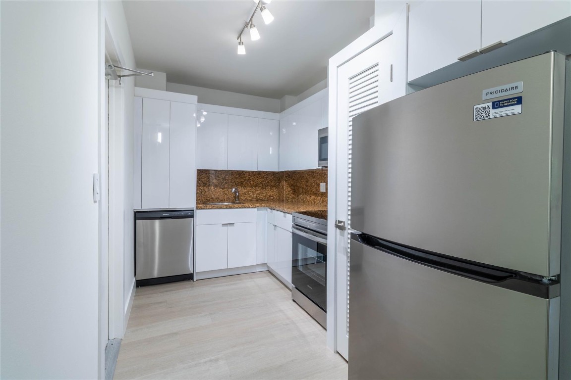 Stunning one-bedroom, one-bathroom condo, recently remodeled with impact windows and modern finishes. Located about a half mile from the beach in Harbour Inlet. Enjoy an open-concept living area with sleek vinyl hardwood style floors, a gourmet kitchen featuring NEW stainless steel appliances and granite countertops, and a spa-inspired bathroom with a walk-in shower. The spacious bedroom offers ample natural light and generous closet space. Relax at your newly renovated community pool or take a short stroll to sandy shores and vibrant coastal amenities. This condo is perfect for beachside living or a luxurious getaway!
