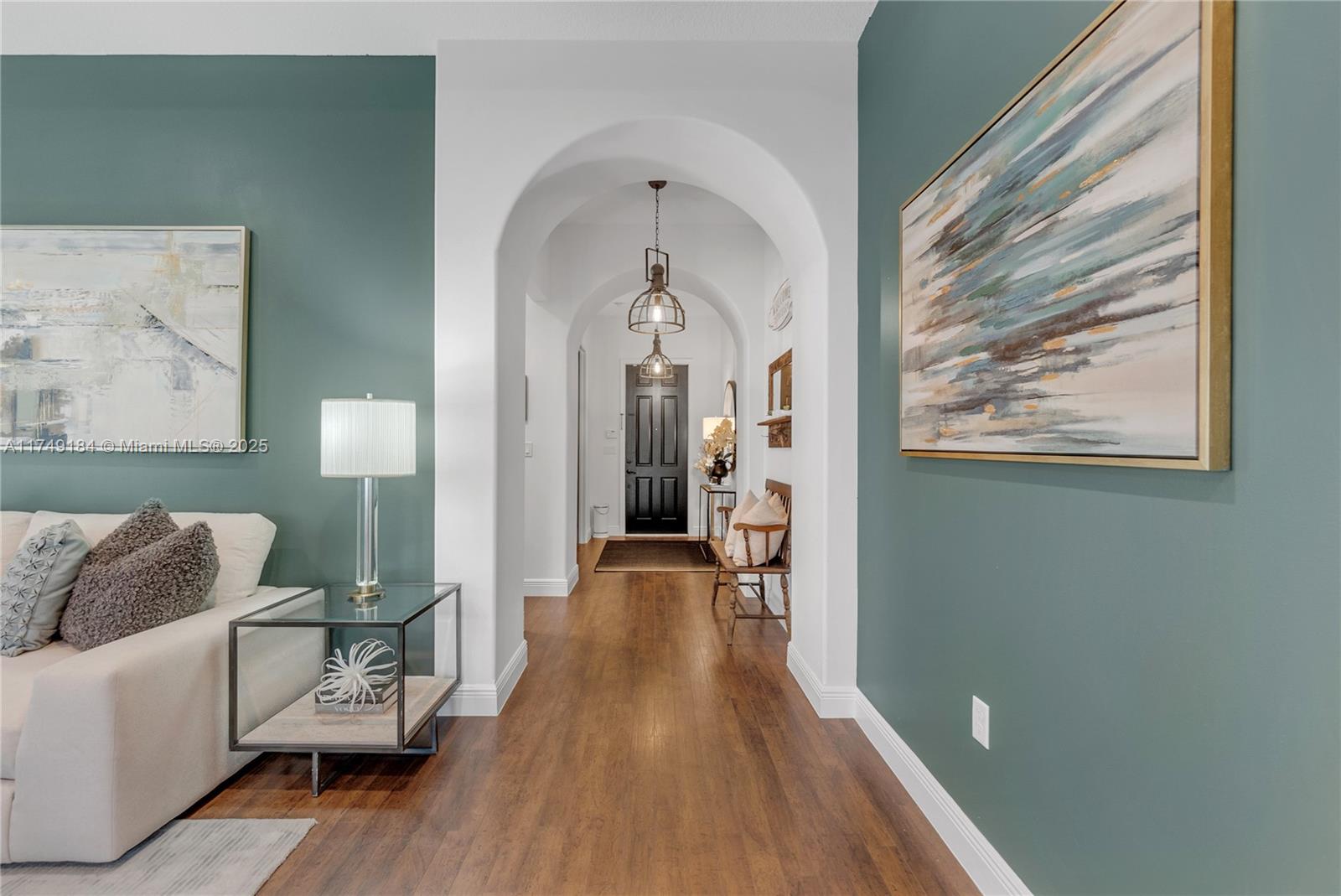 Welcome to Monterra at Cooper City, a prestigious 24-hour guard-gated community. This elegant home spans nearly 3000 sq ft and features high-impact windows throughout. The gourmet kitchen is a chef's dream. A-rated schools serve the area, including elementary, middle, and high schools. The downstairs bedroom/den offers flexibility, while the laundry room and mini loft are conveniently located upstairs. Enjoy sports courts, dog parks, 3 playgrounds, a trail connecting amenities, a gigantic pool with a big kiddie splash pad, and a serene backyard with a lagoon-like canal. Experience luxury, safety, and top-tier education in one stunning location.