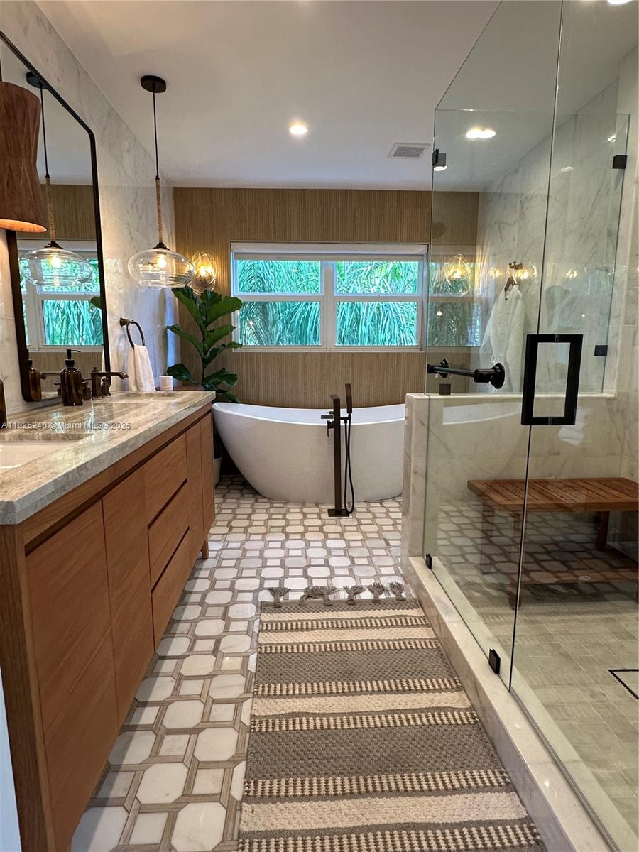 Walk into your private, secluded compound on a lush, tropical double-lot in Historic Buena Vista East, just steps away from the Miami Design District. This 1926 Mediterranean beauty was professionally restored with permits. Featuring 3 spacious bedrooms and 2-1/2 baths in the main house and a 442sf detached studio with a full bath and kitchenette. A chef’s dream kitchen with a 4’ Subzero fridge, 4’ Wolf range, 2 Cove dishwashers, wine fridge, 2 pantries, California Closets systems, and so much more. There are as many unseen upgrades, including all new plumbing, electrical and HVAC systems, spray foam insulation in the 1st and 2nd floor ceilings and batts insulation in all interior walls for sound control. New impact windows and doors. Plenty of space for a pool and outdoor fun! Owner/Agent
